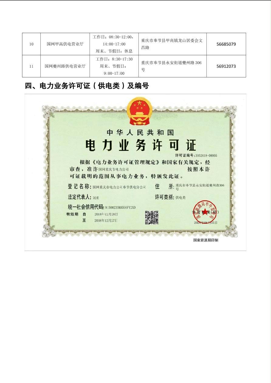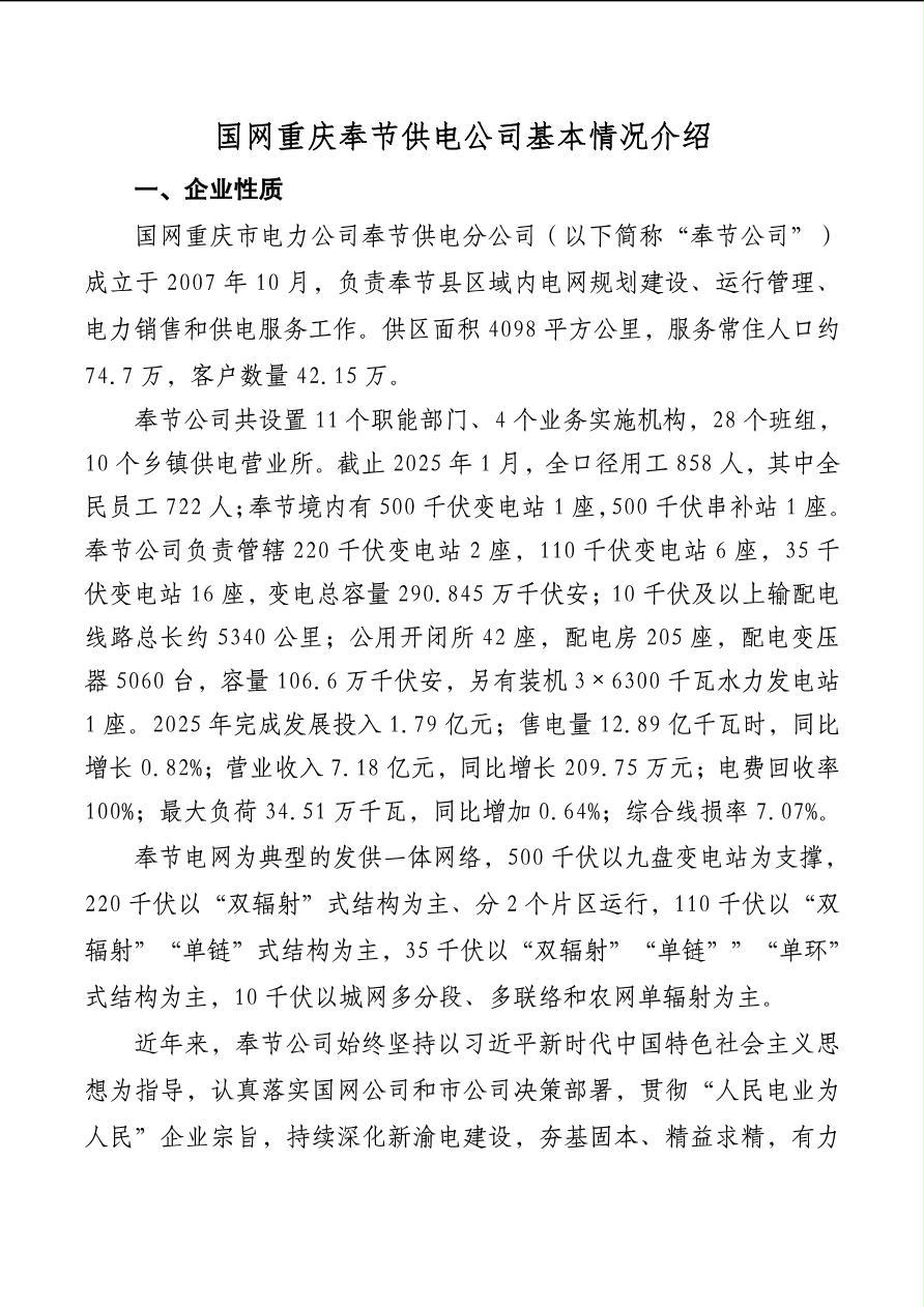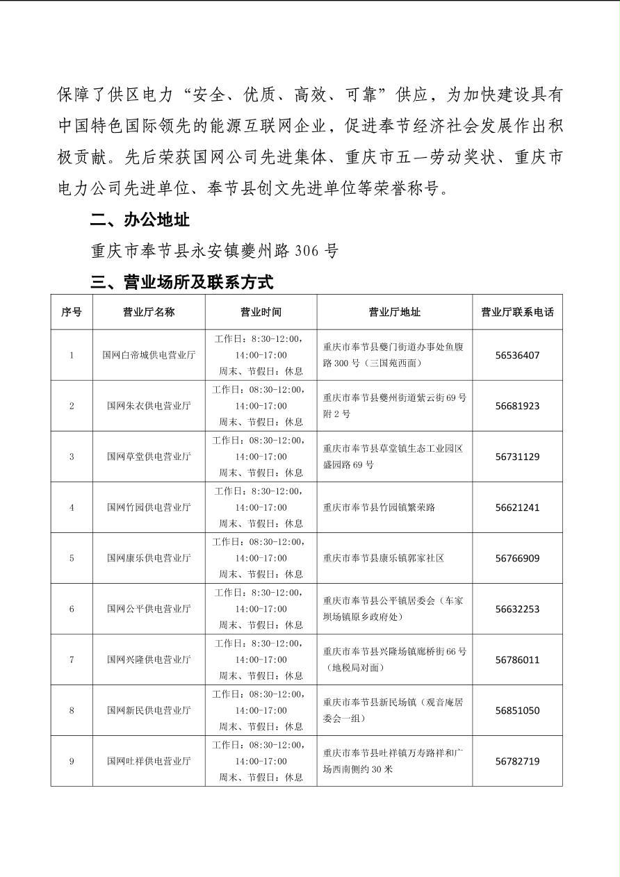 国网重庆市电力公司奉节供电分公司基本情况介绍