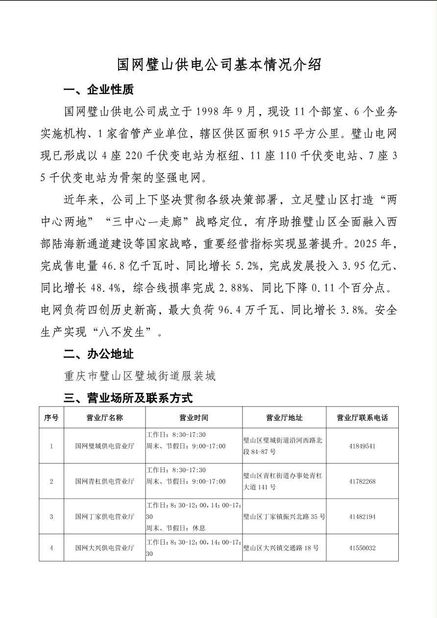 国网重庆市电力公司璧山供电分公司基本情况介绍