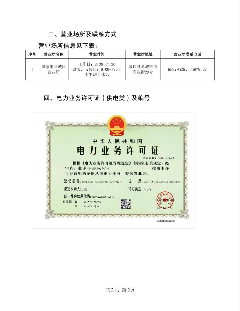 办理用电业务有关信息