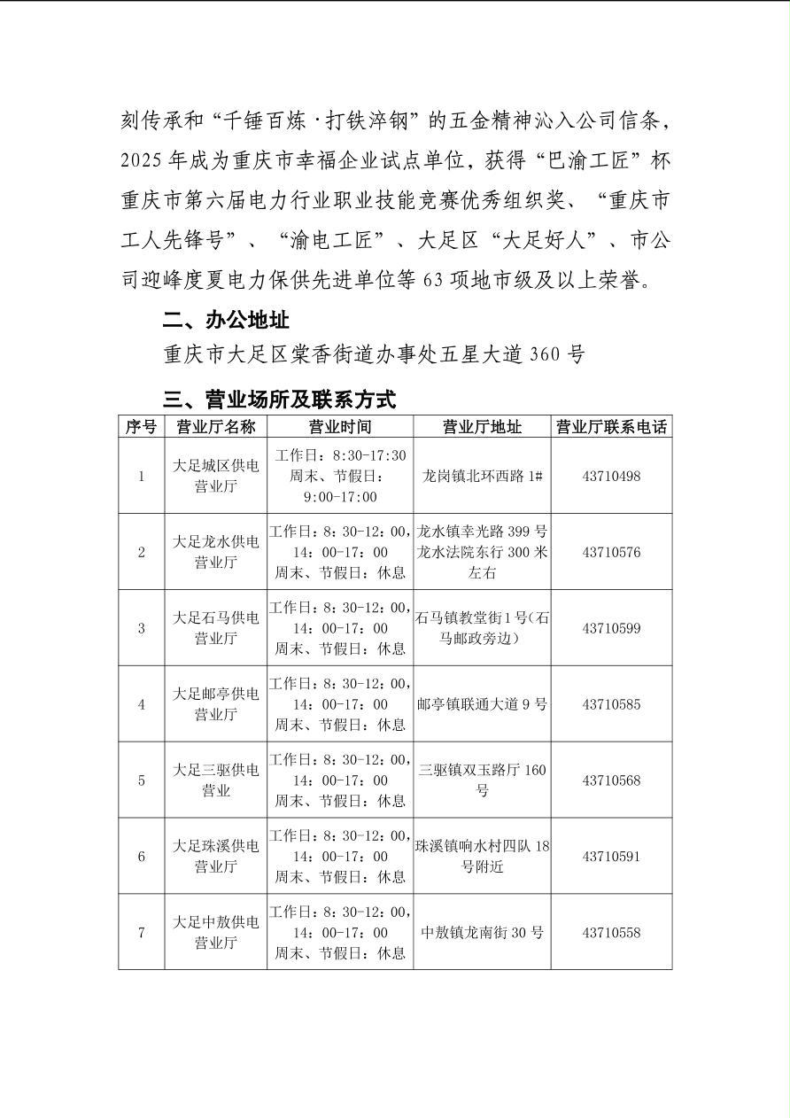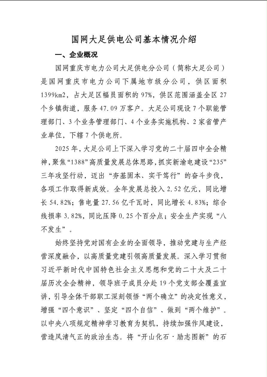 国网重庆市电力公司大足供电分公司基本情况介绍