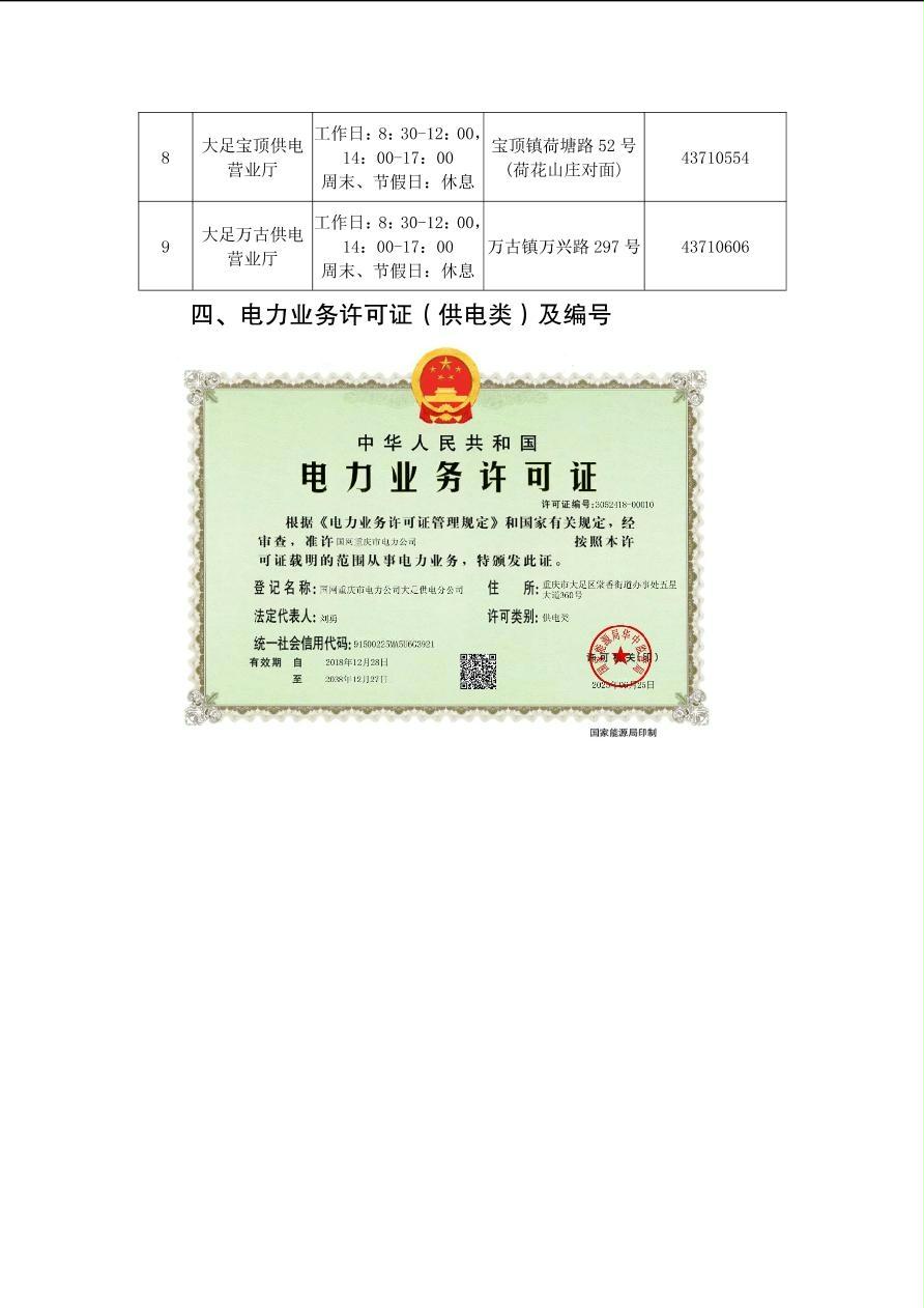 供电服务承诺及供电服务热线、12398能源监督热线等投诉渠道