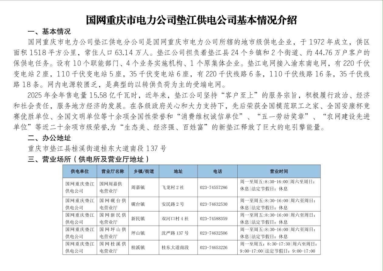 国网重庆市电力公司垫江供电分公司基本情况介绍