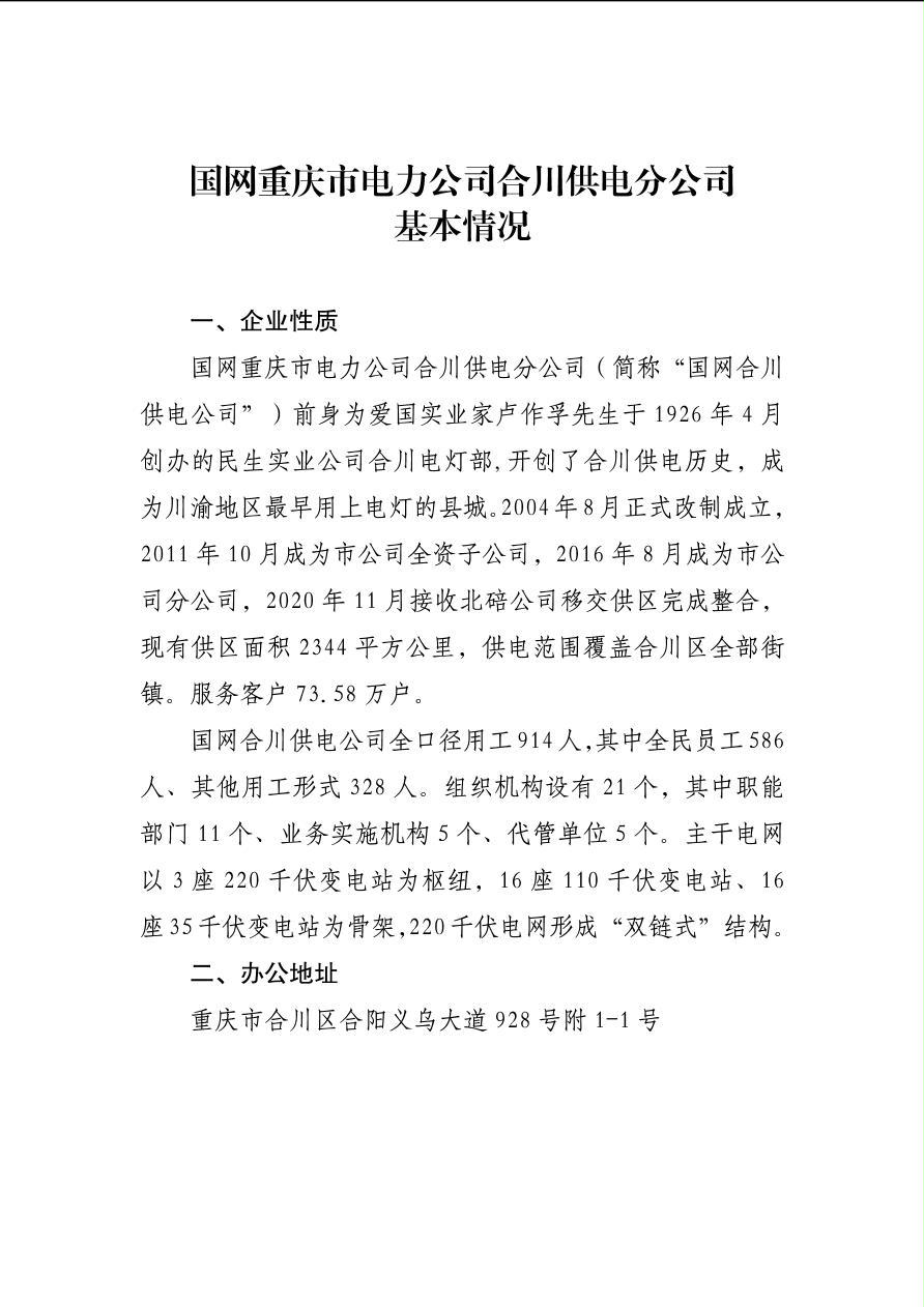 国网重庆市电力公司合川供电分公司基本情况介绍