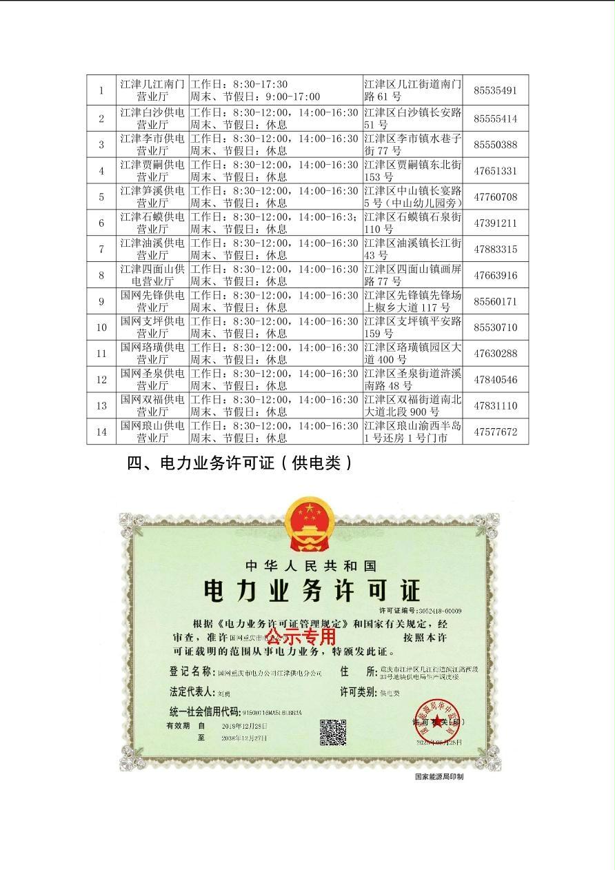 供电服务承诺及供电服务热线、12398能源监督热线等投诉渠道