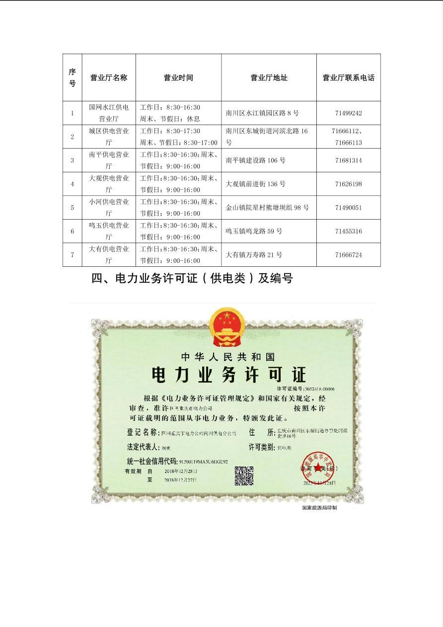 供电服务承诺及供电服务热线、12398能源监督热线等投诉渠道