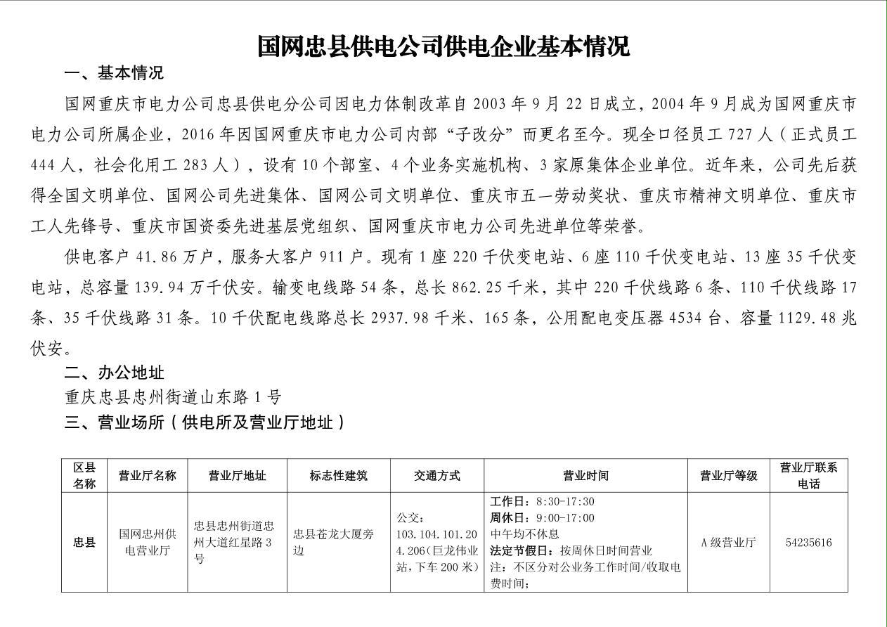 国网重庆市电力公司忠县供电分公司基本情况介绍