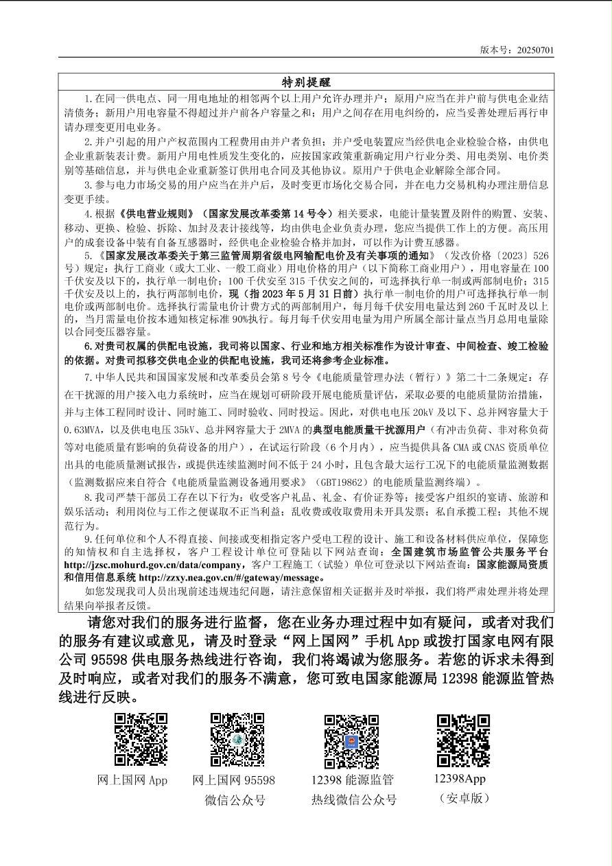 供电服务承诺及供电服务热线、12398能源监督热线等投诉渠道