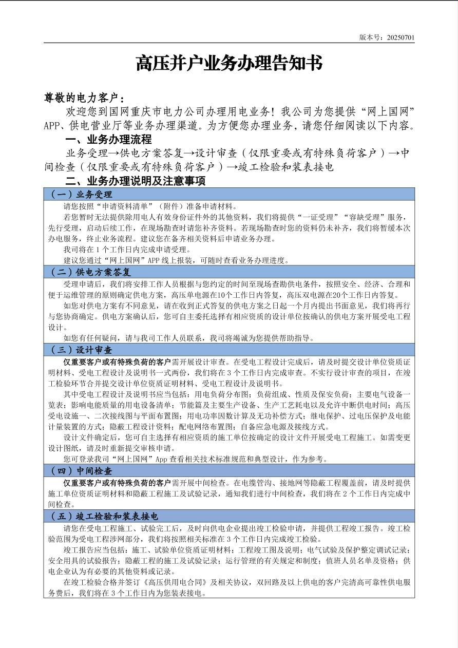 高压并户业务办理告知书