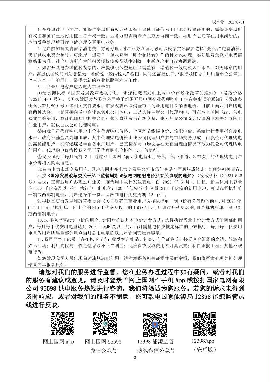 办理用电业务有关信息