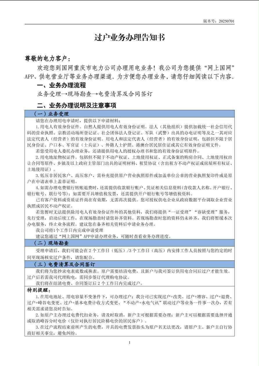 过户业务办理告知书