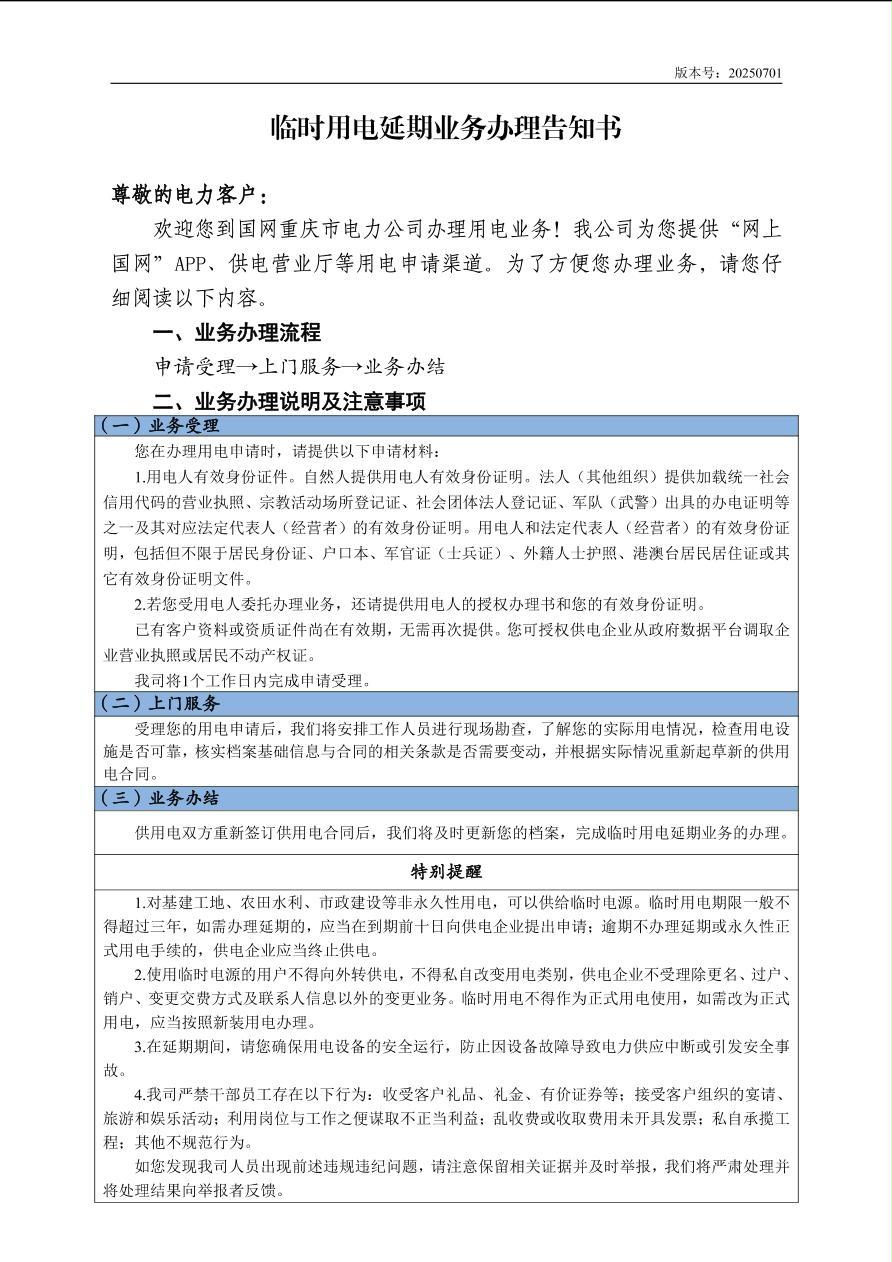 临时用电延期业务办理告知书