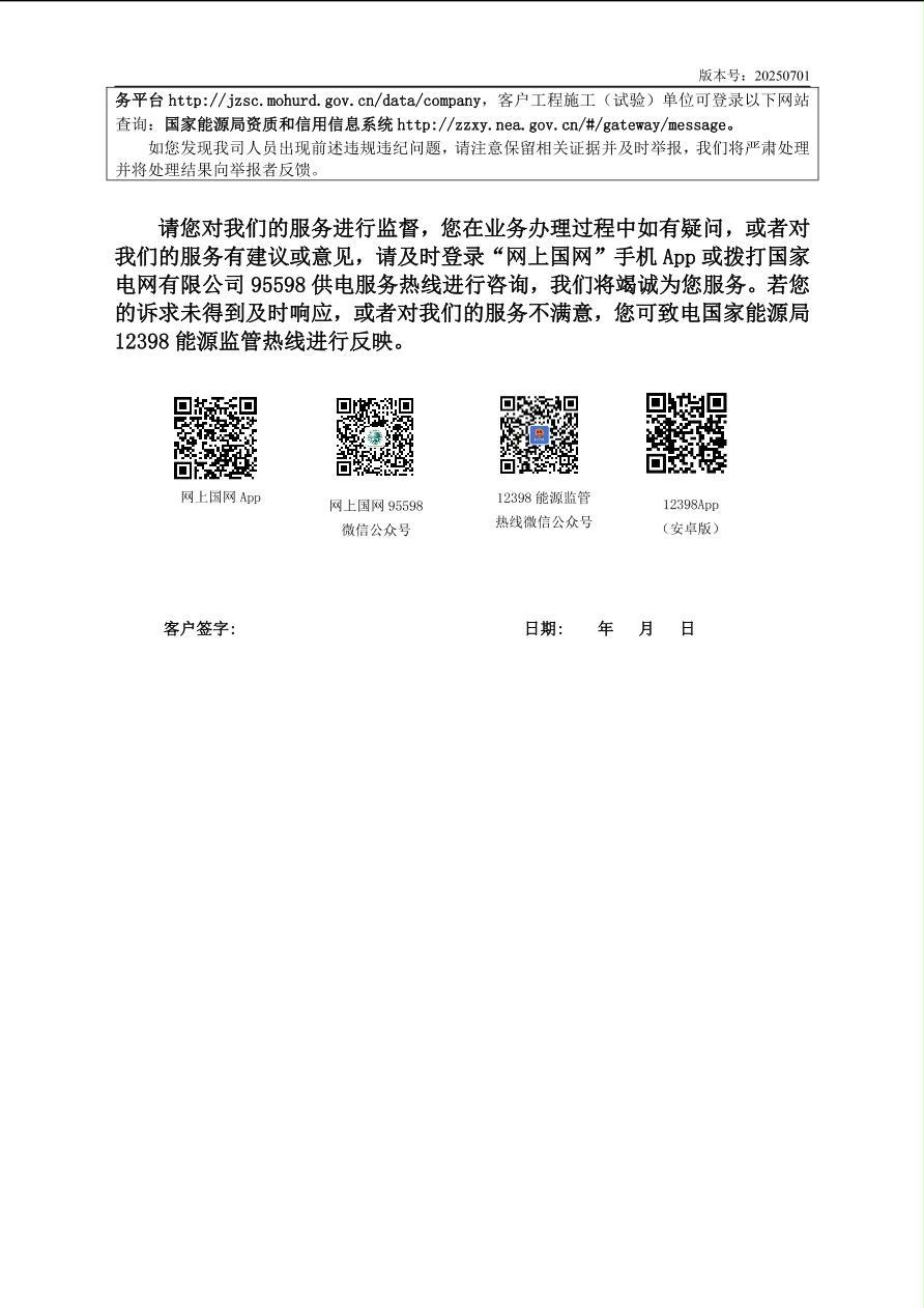 供电服务承诺及供电服务热线、12398能源监督热线等投诉渠道