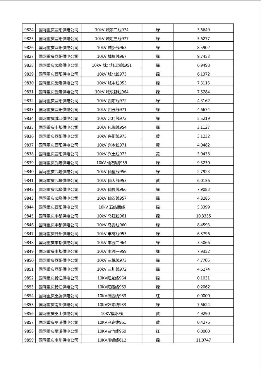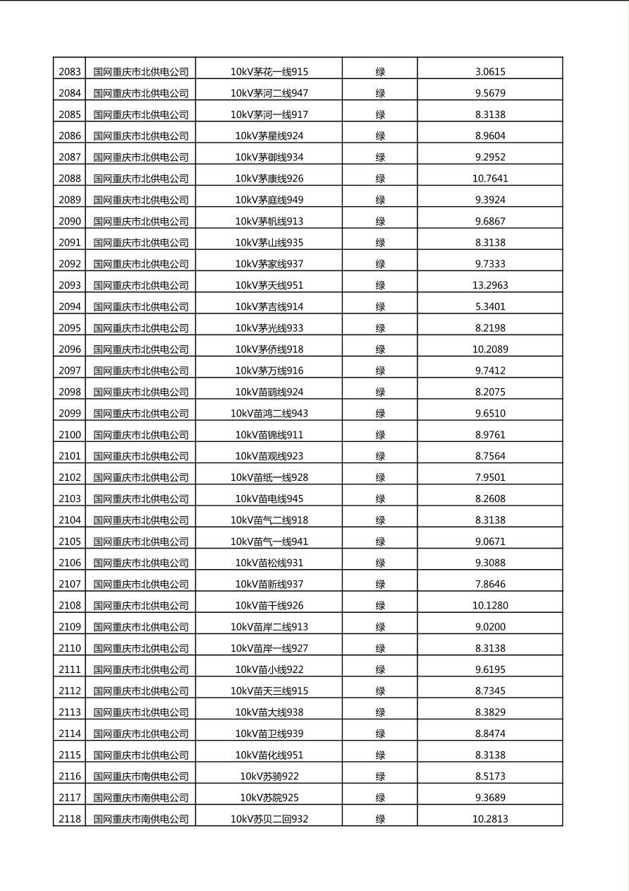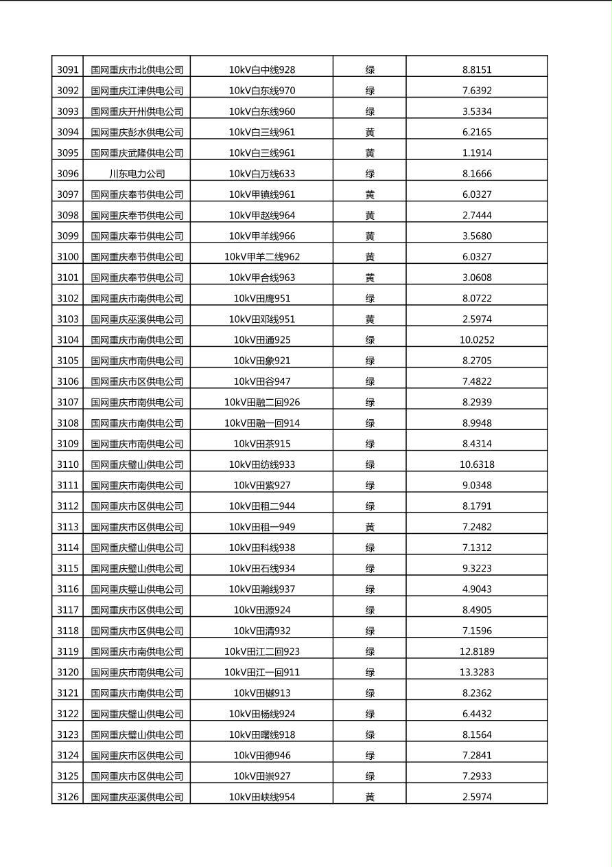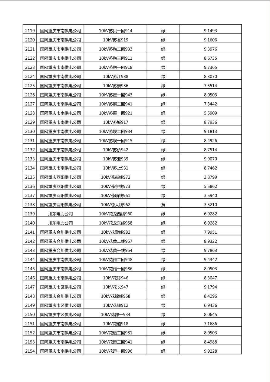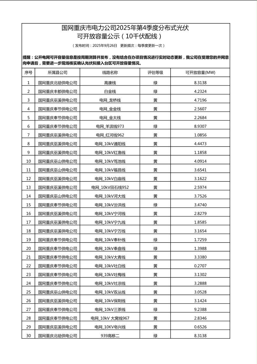 国网重庆市电力公司2025年第4季度分布式光伏可开放容量公示(10千伏配线)