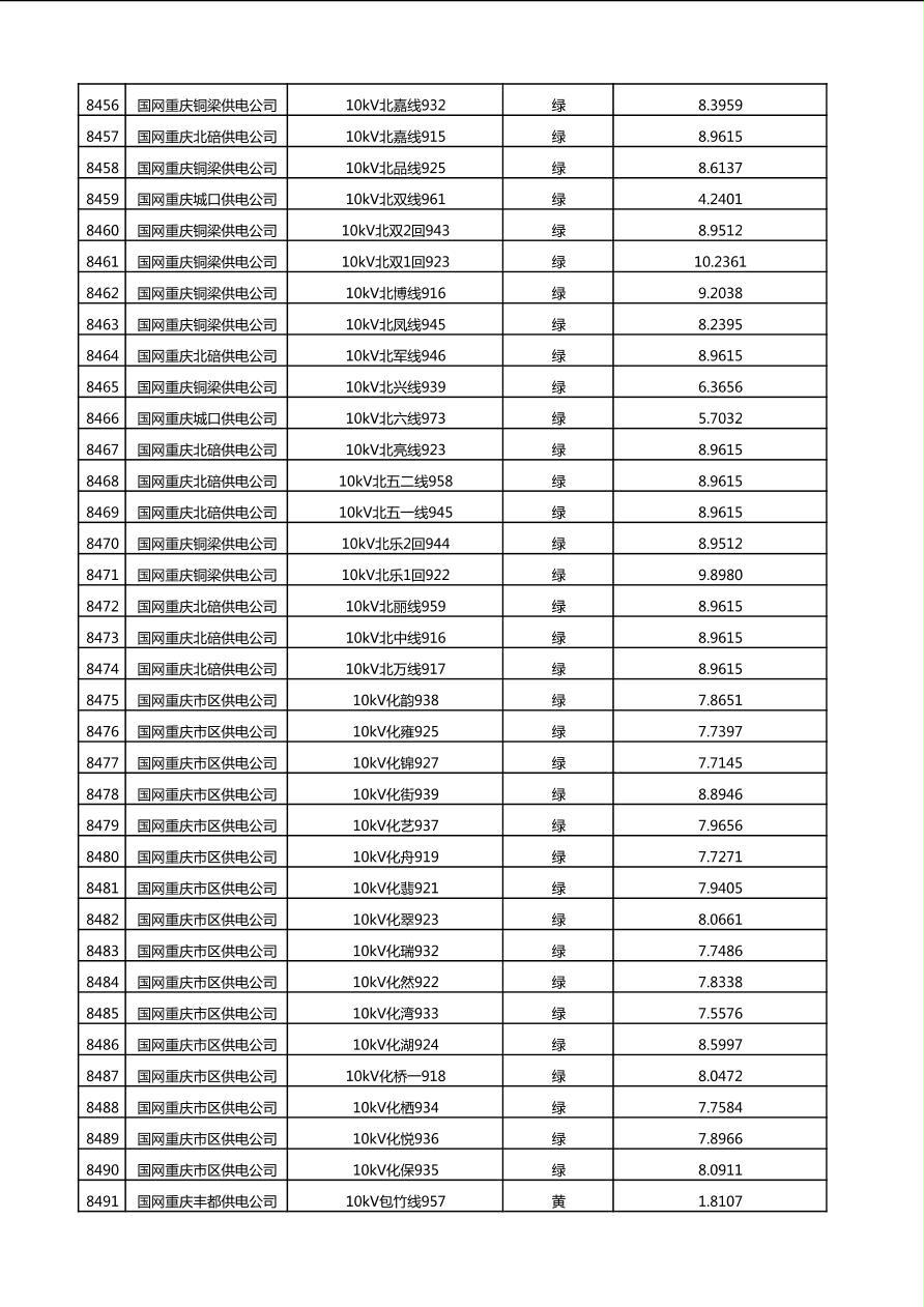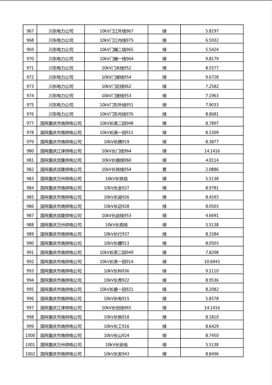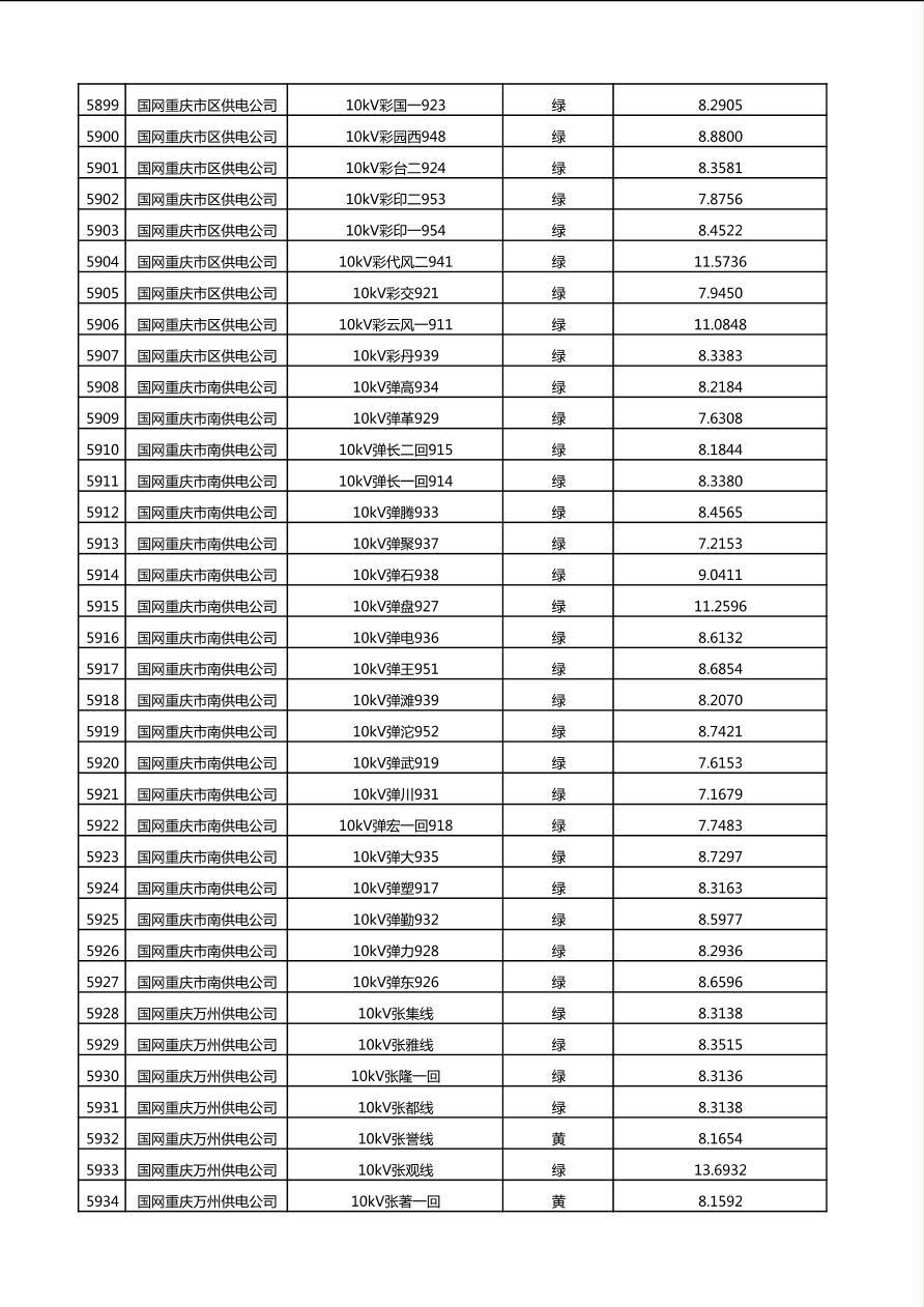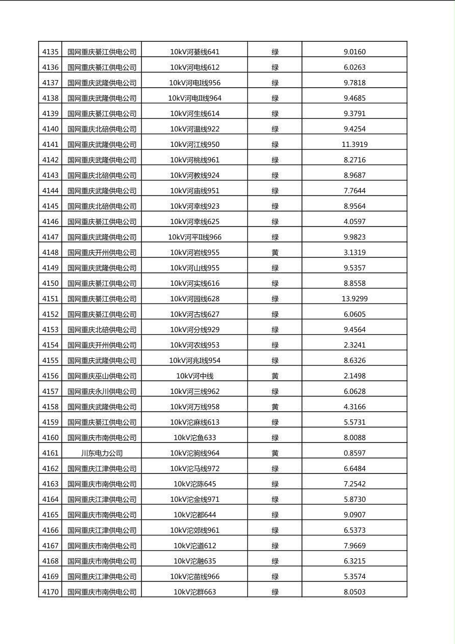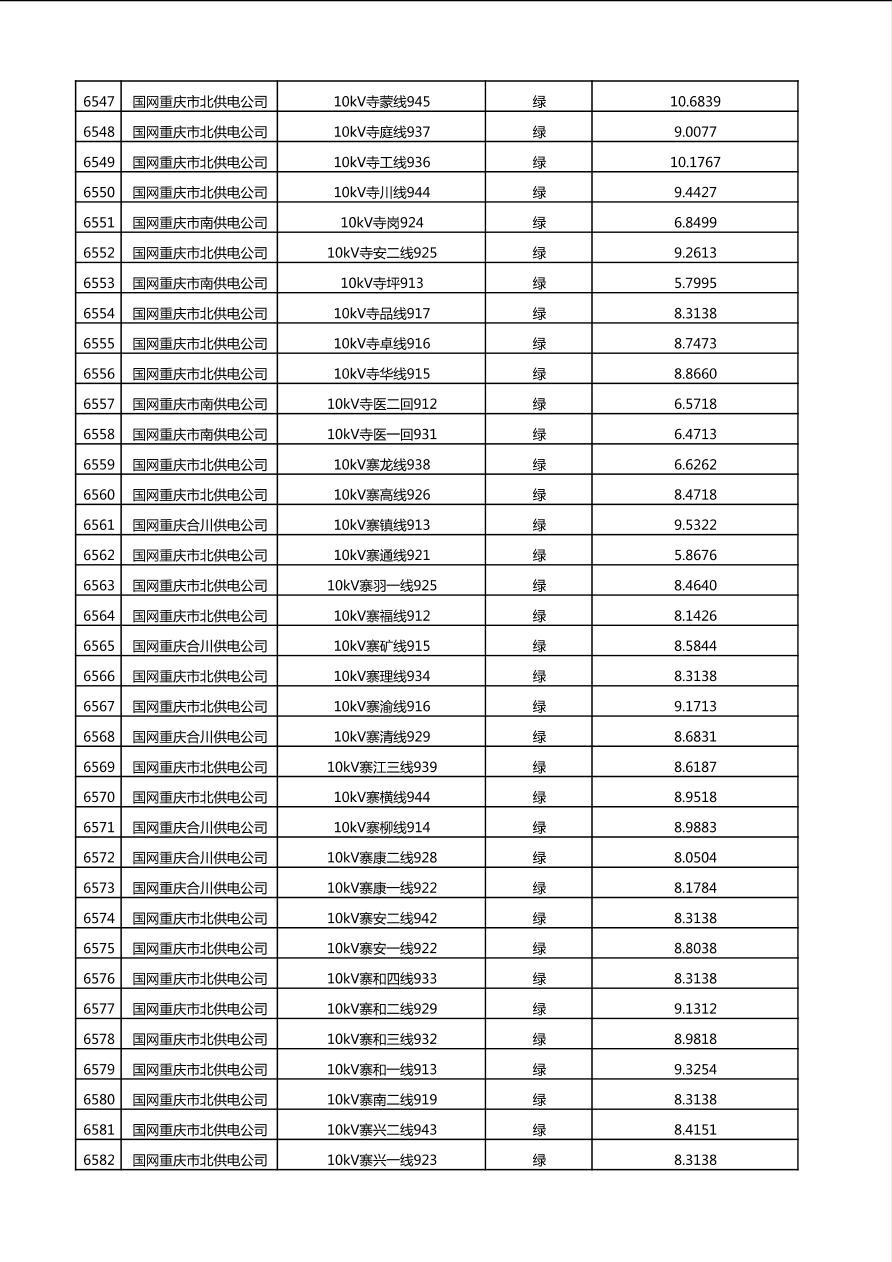 国网重庆市电力公司2025年第4季度分布式光伏可开放容量公示(10千伏配线)