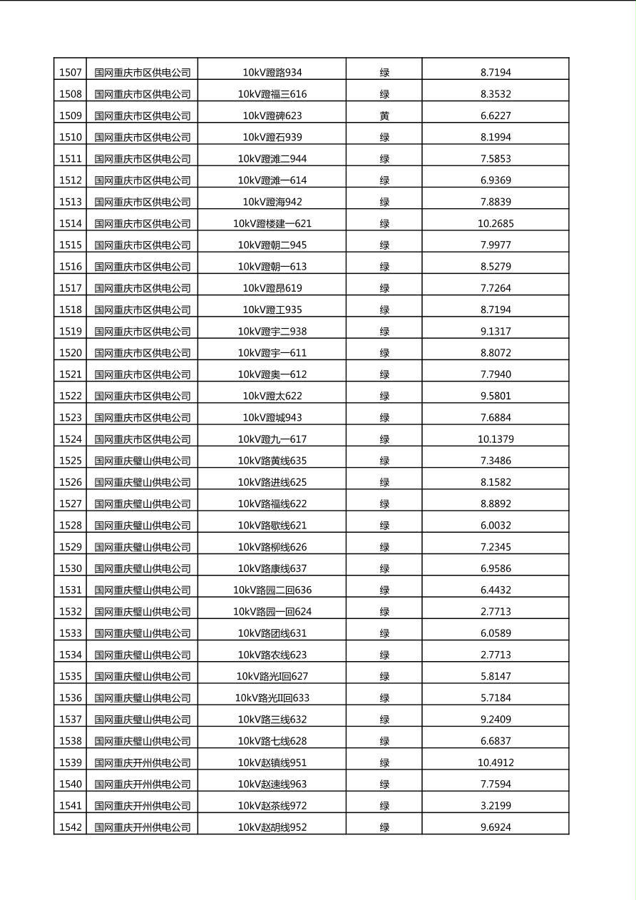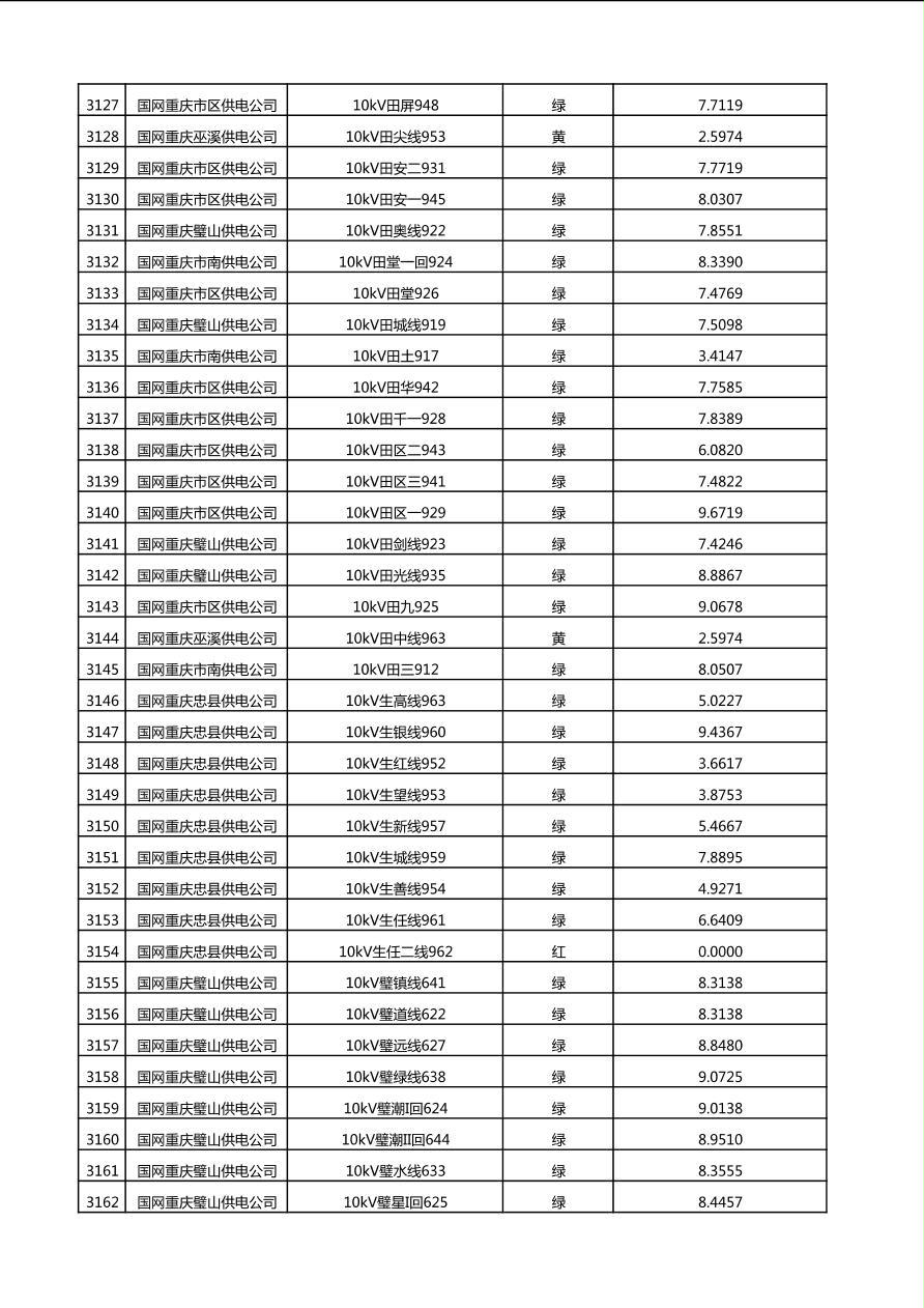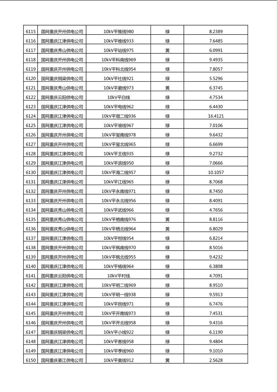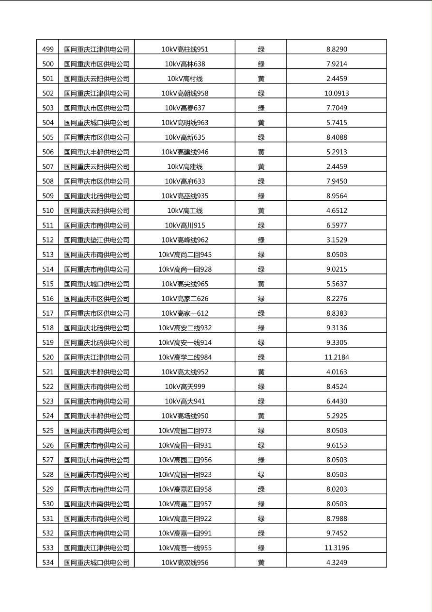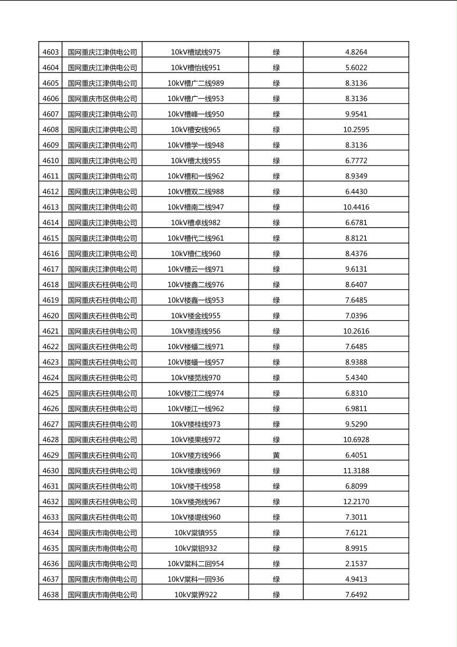 国网重庆市电力公司2025年第4季度分布式光伏可开放容量公示(10千伏配线)