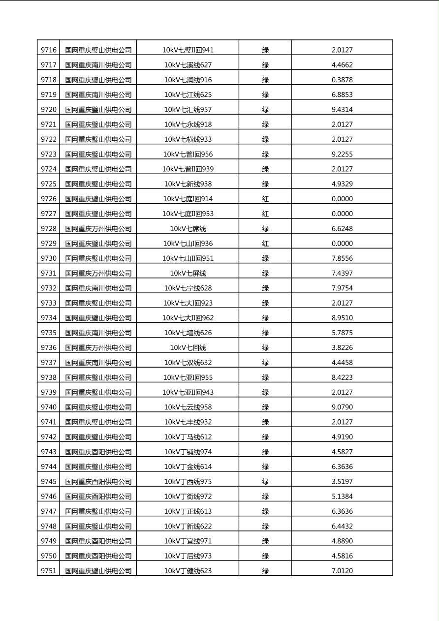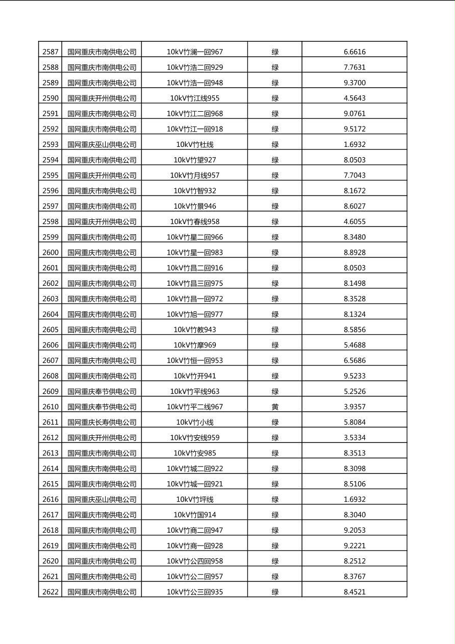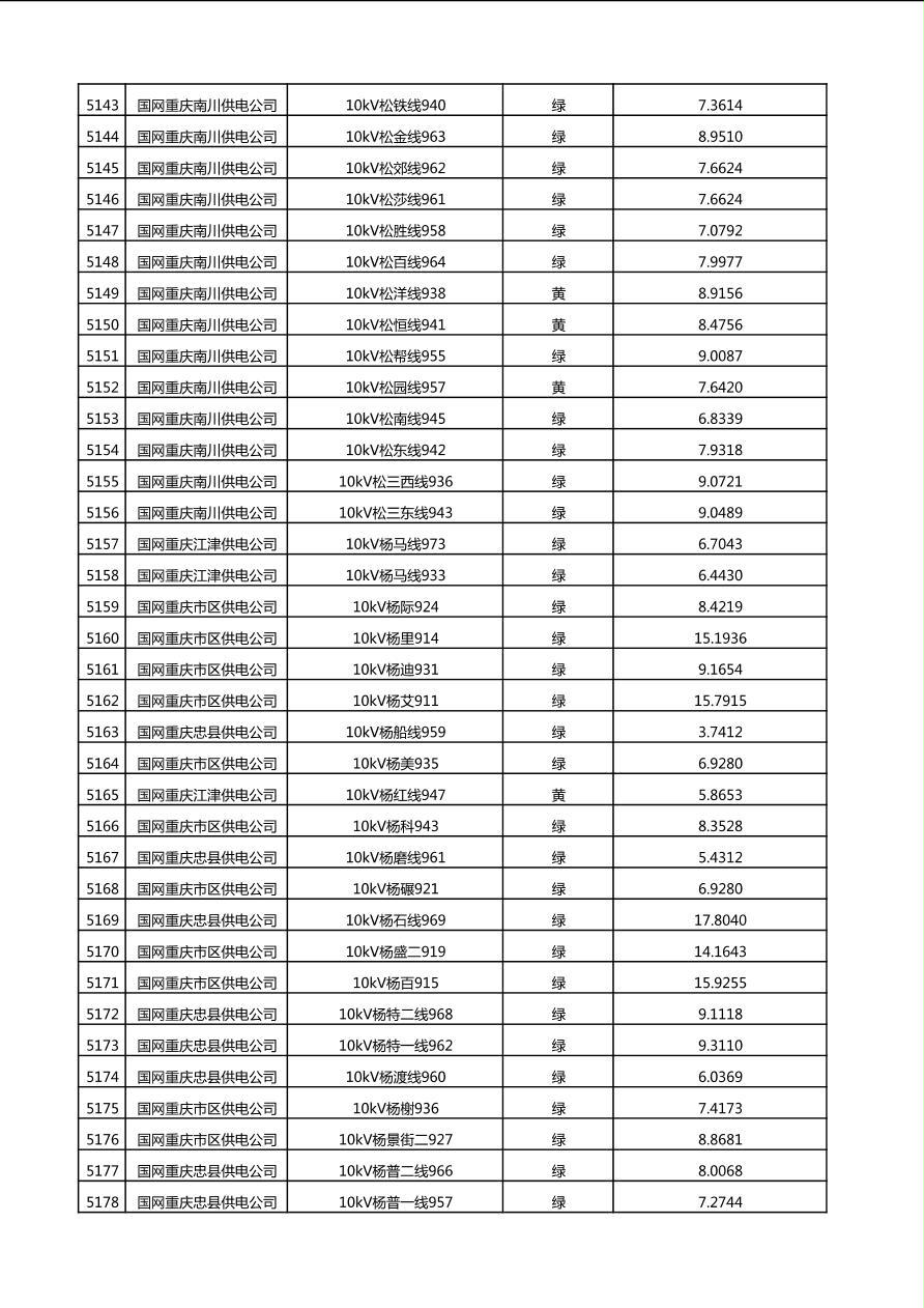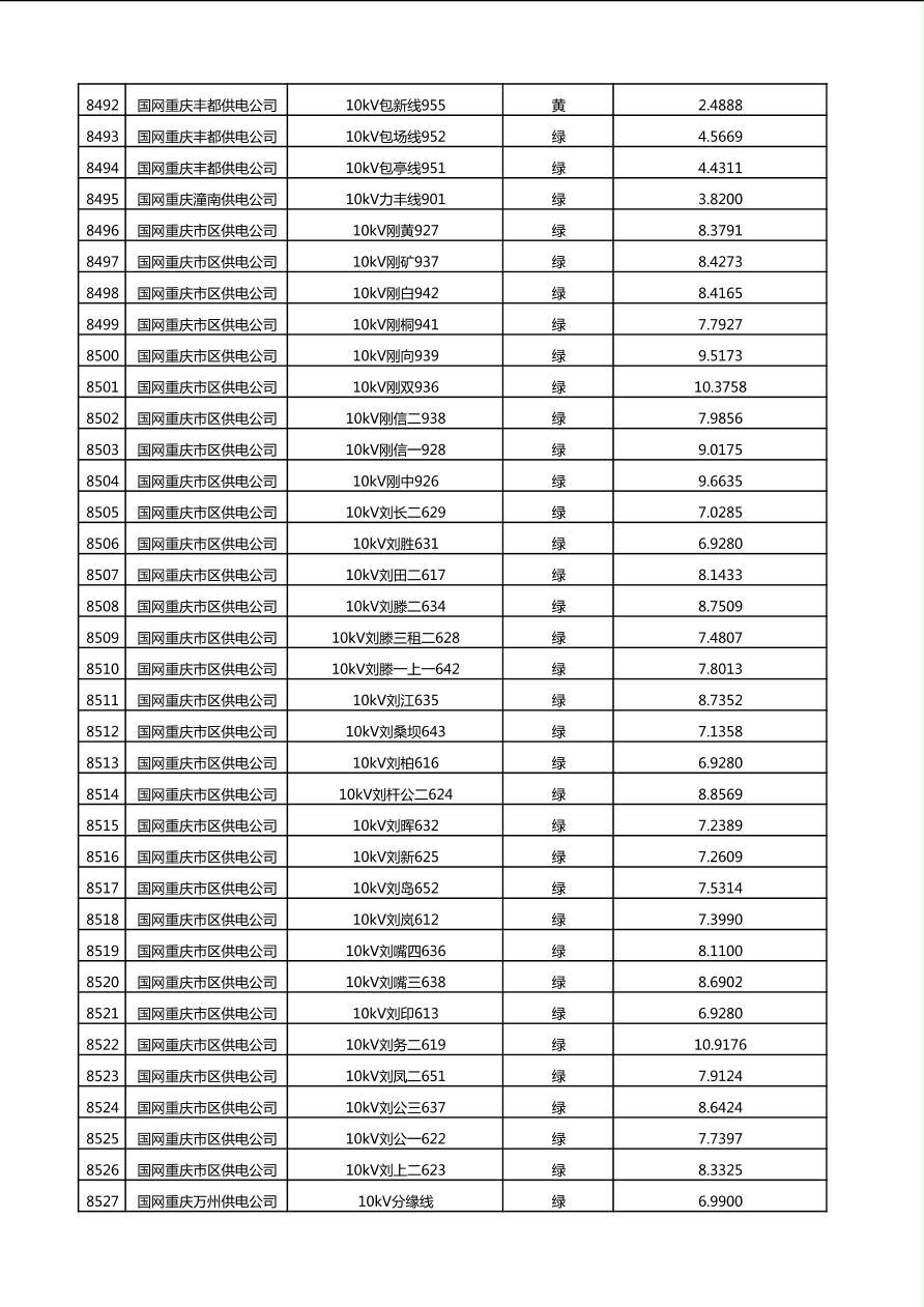 国网重庆市电力公司2025年第4季度分布式光伏可开放容量公示(10千伏配线)