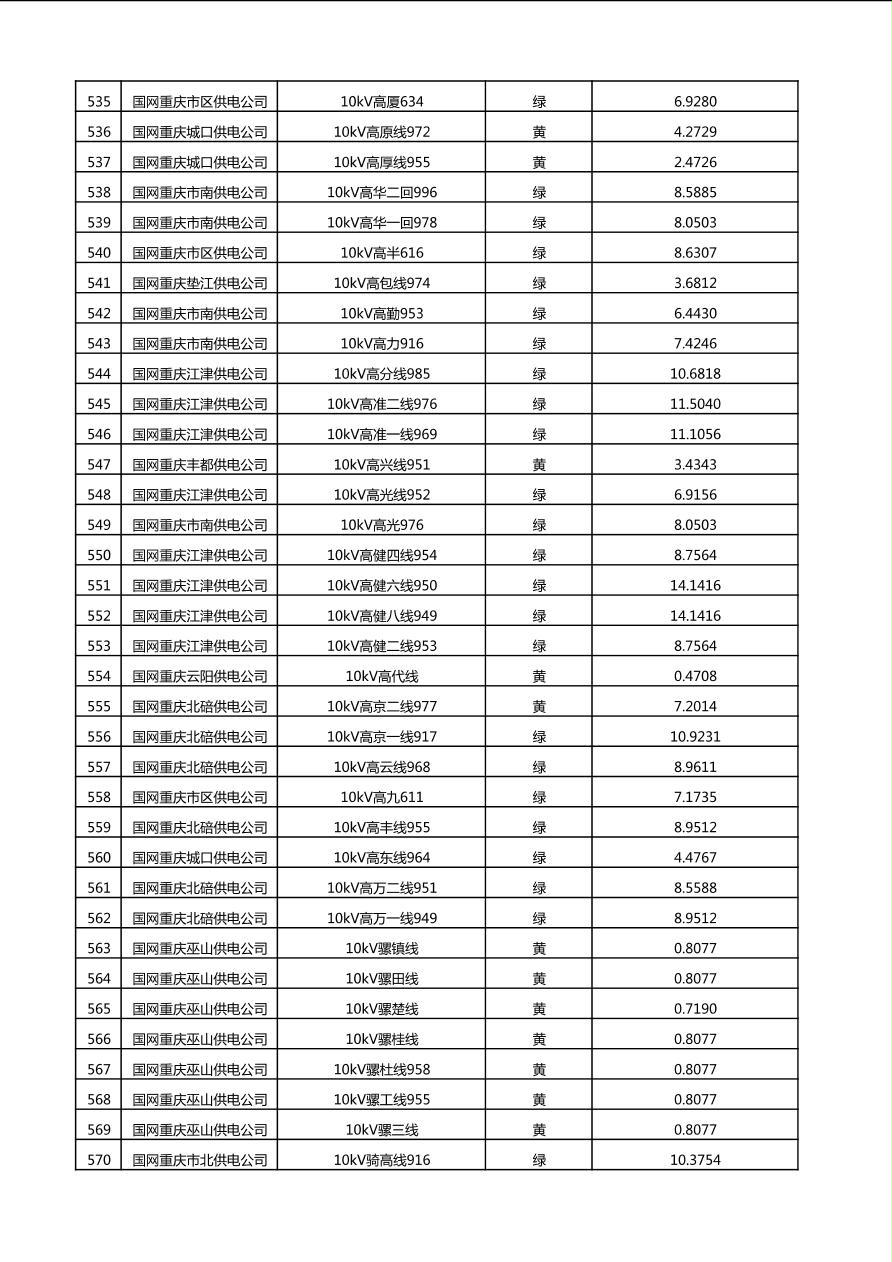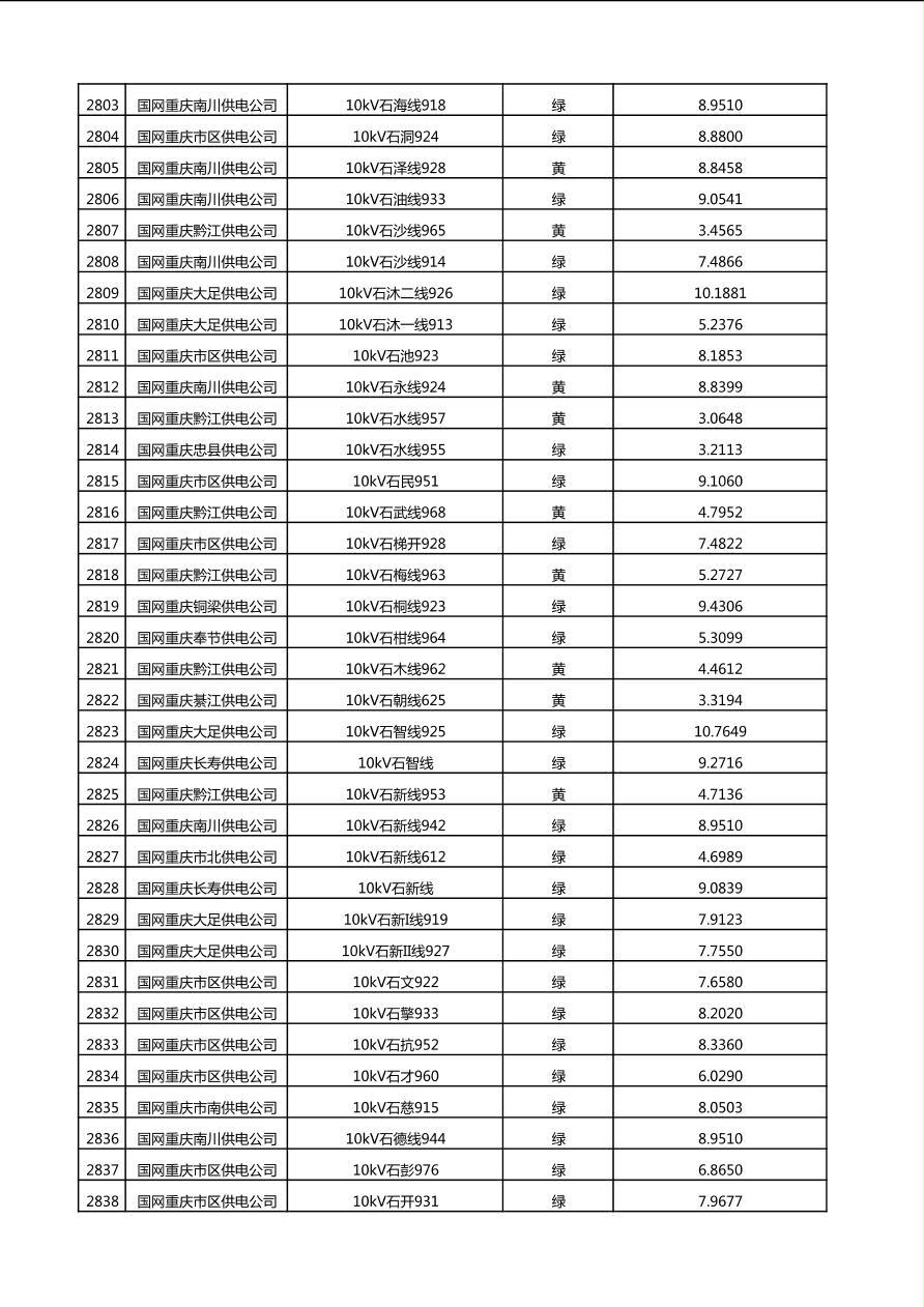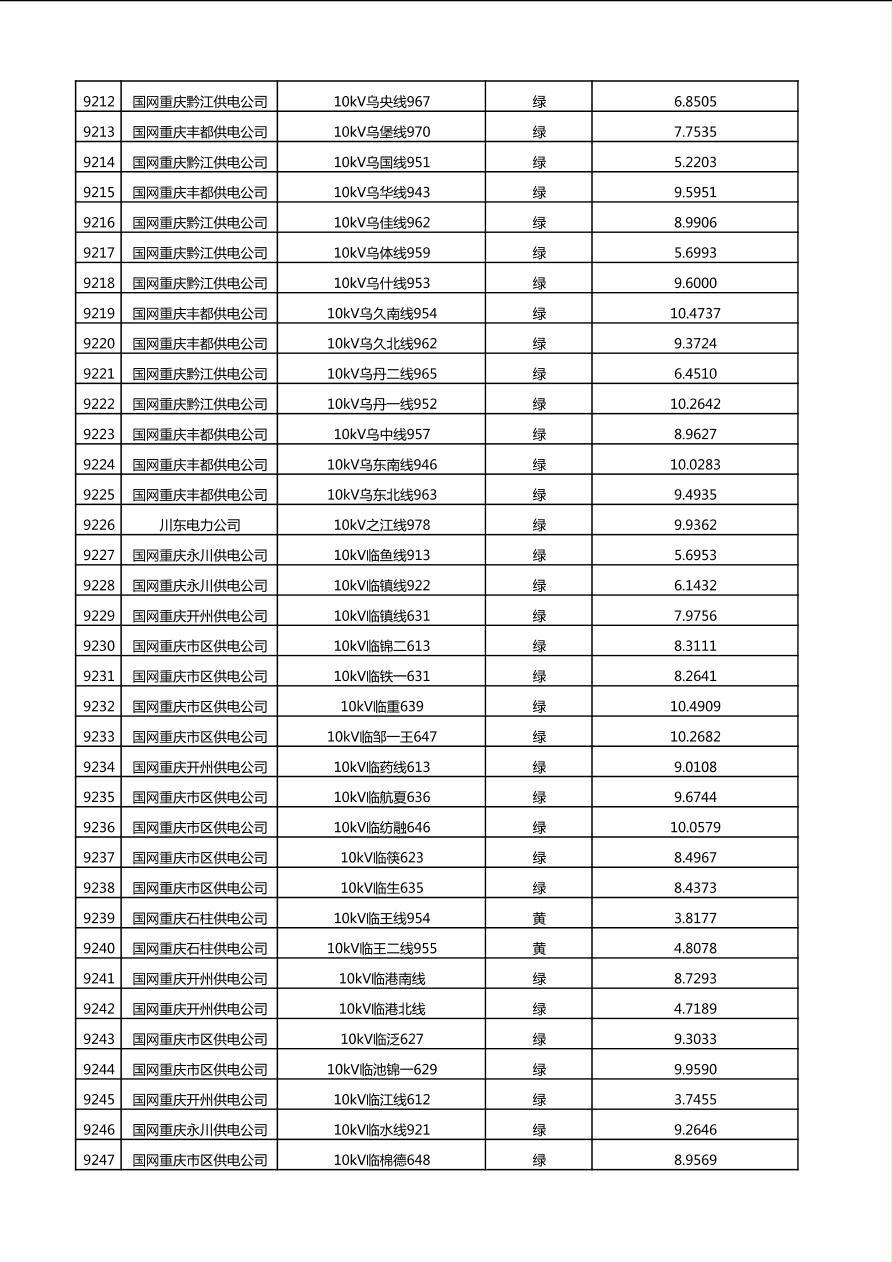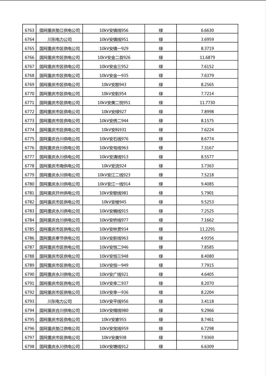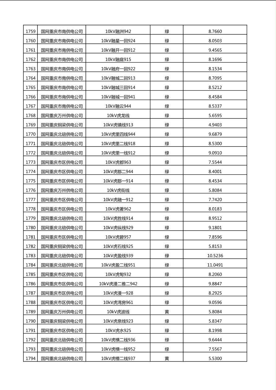 国网重庆市电力公司2025年第4季度分布式光伏可开放容量公示(10千伏配线)