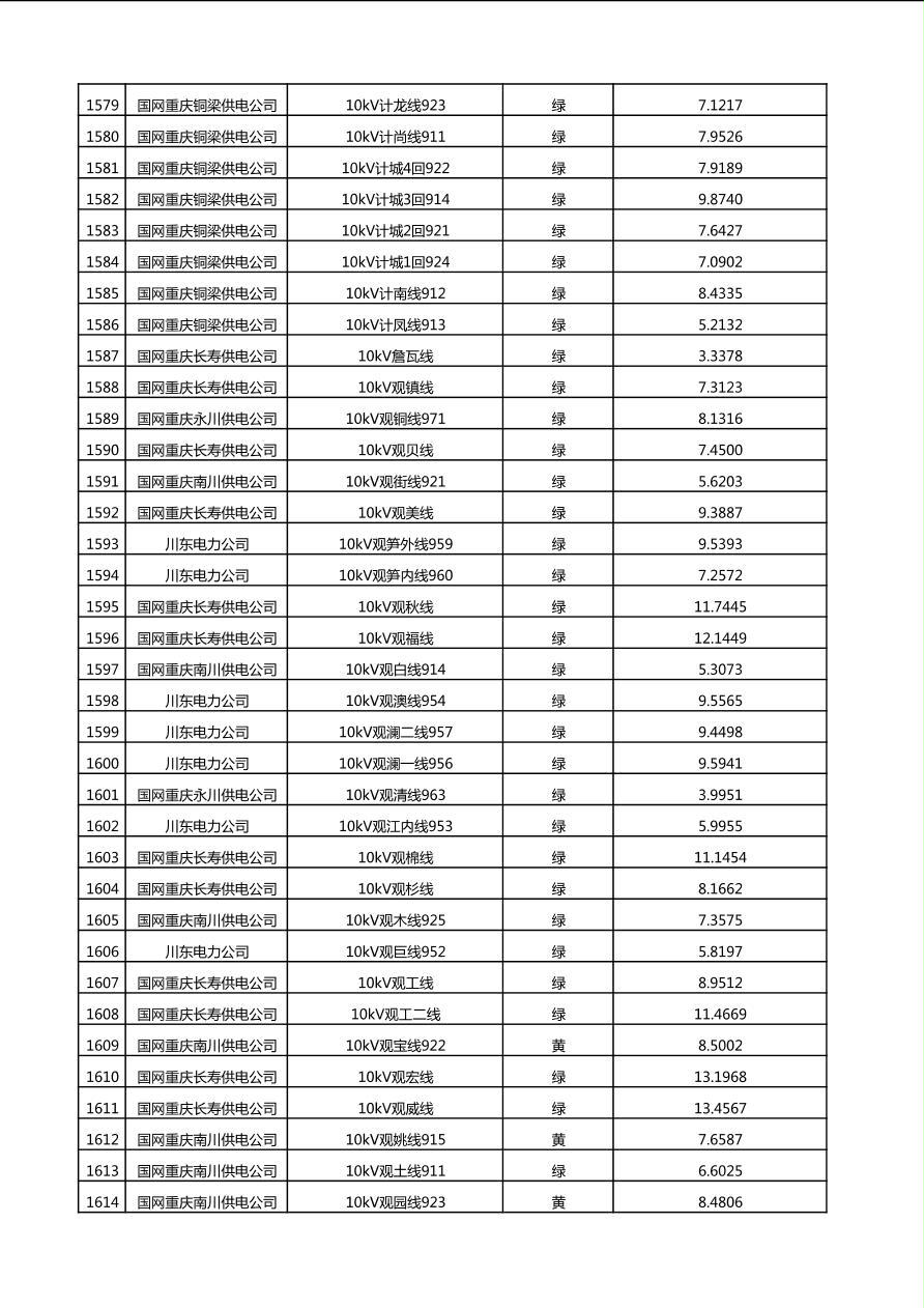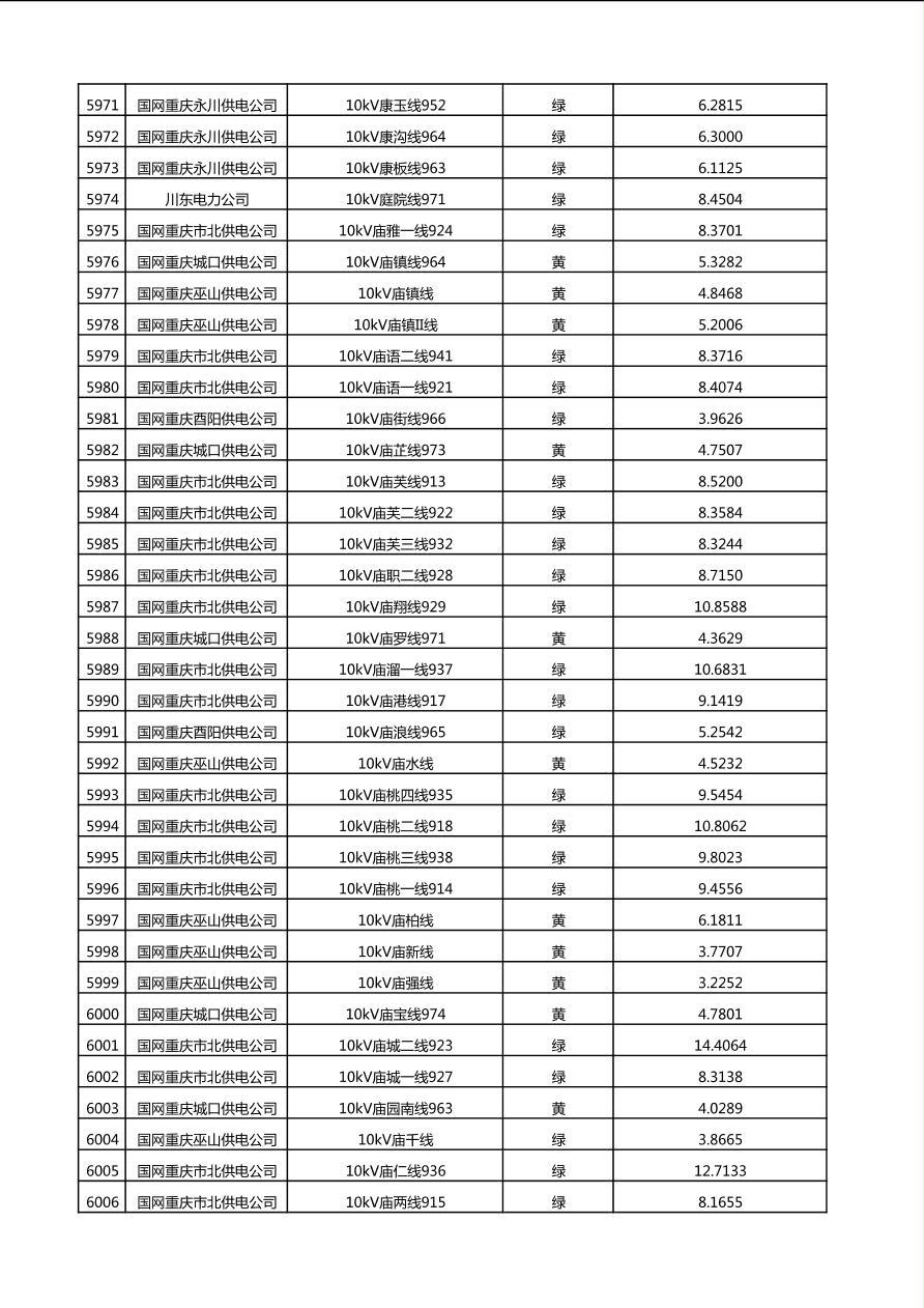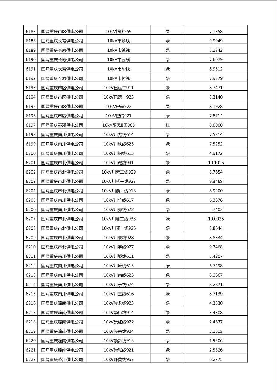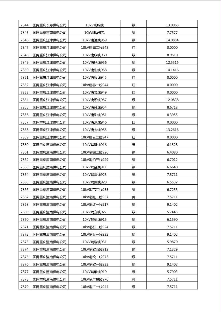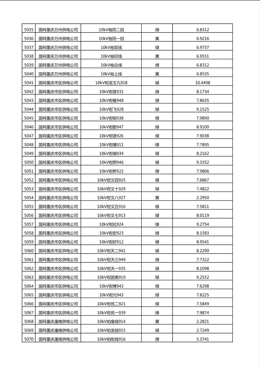 国网重庆市电力公司2025年第4季度分布式光伏可开放容量公示(10千伏配线)