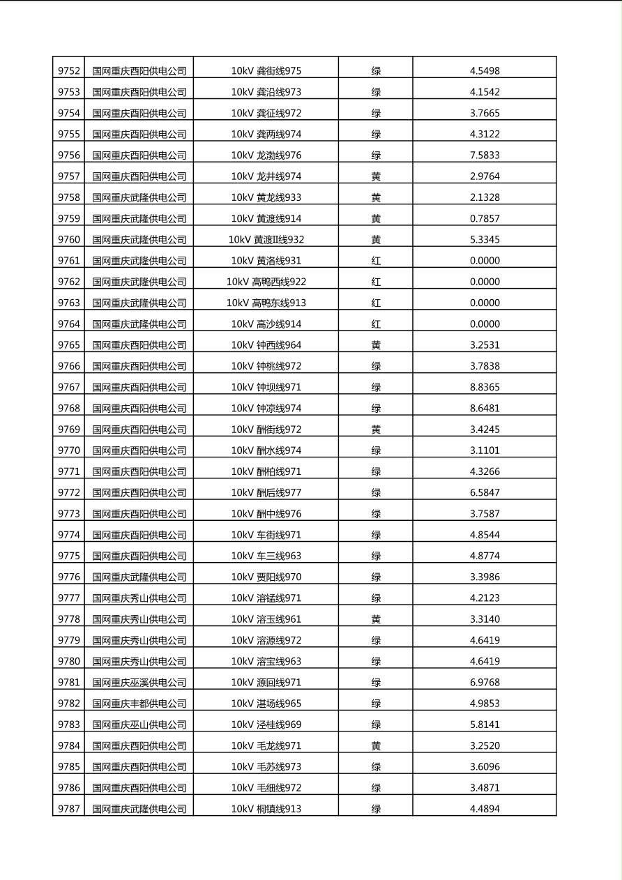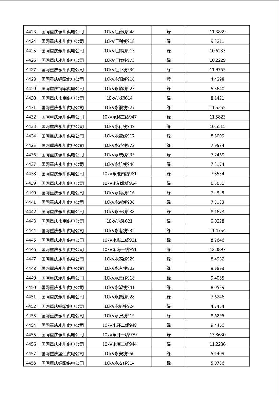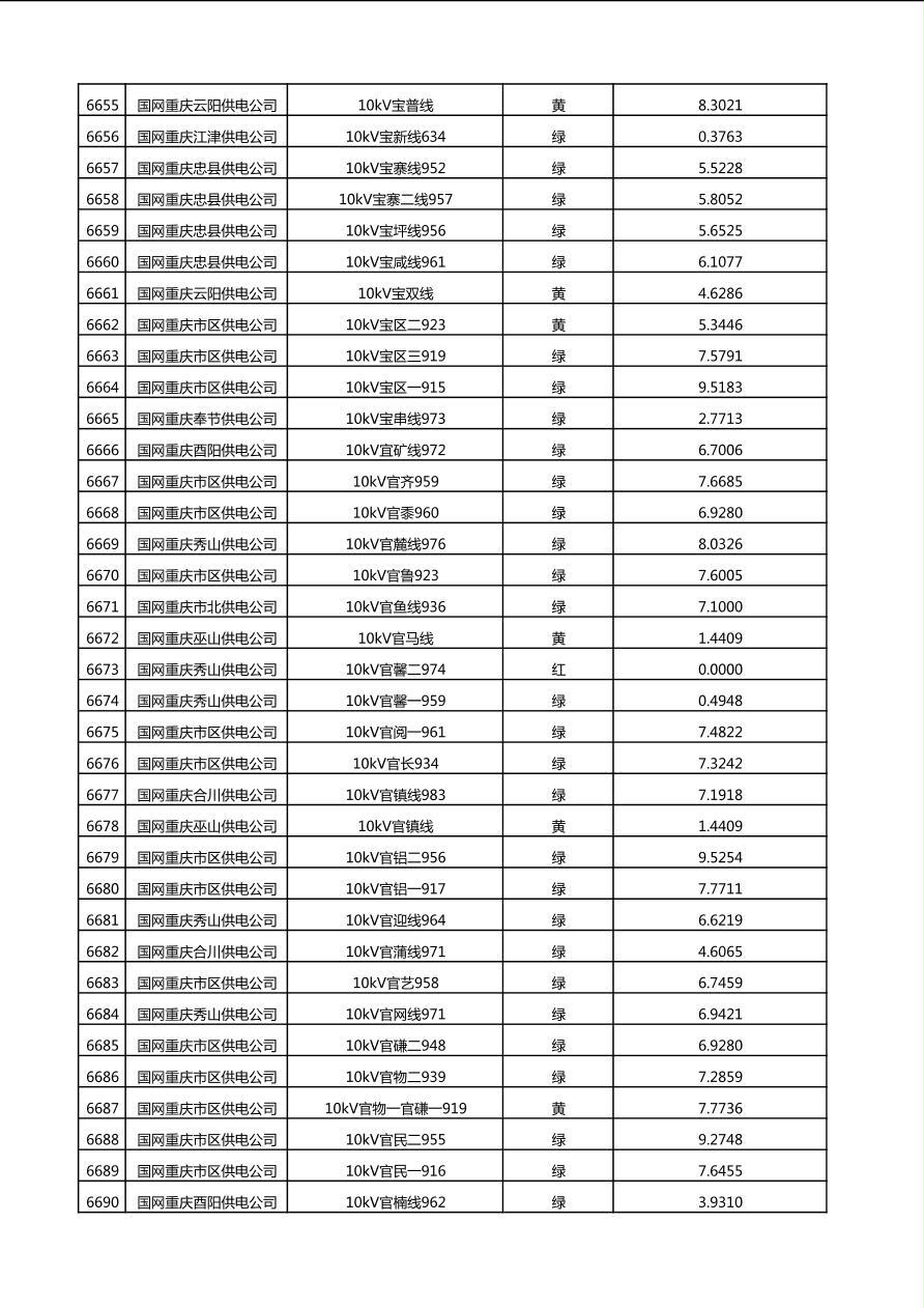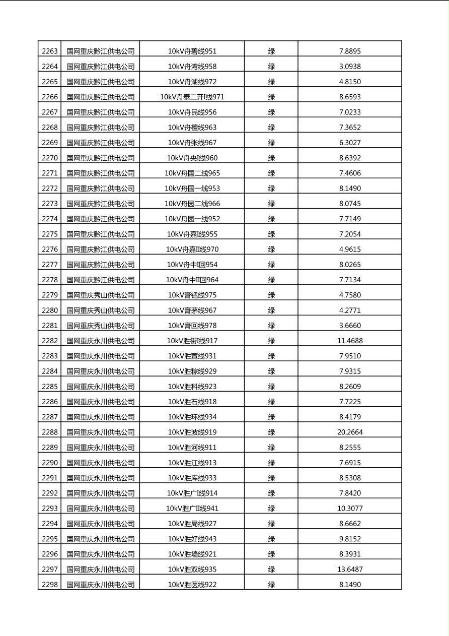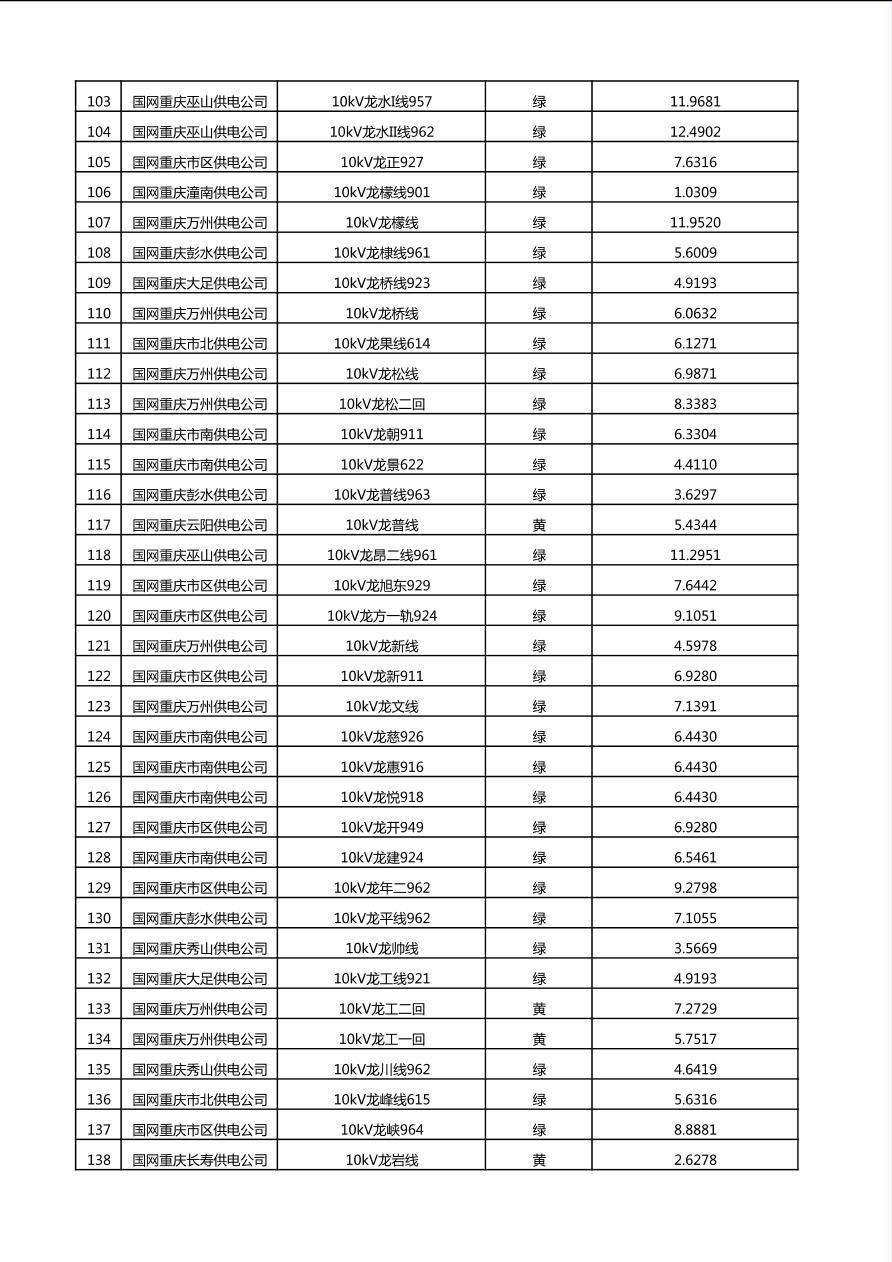 国网重庆市电力公司2025年第4季度分布式光伏可开放容量公示(10千伏配线)