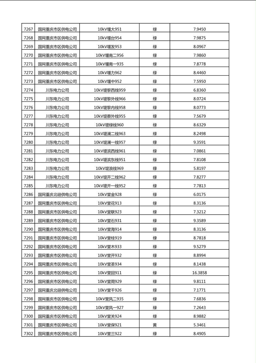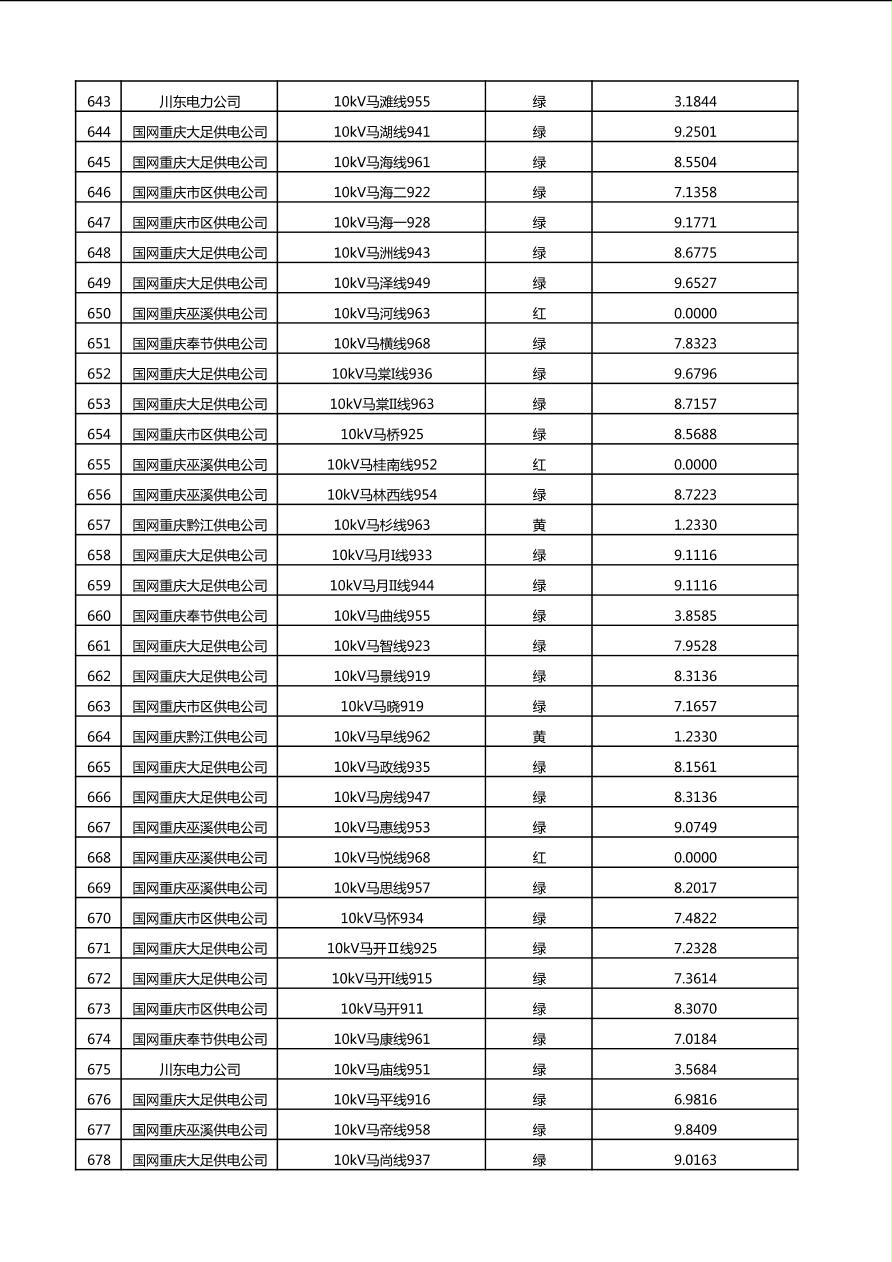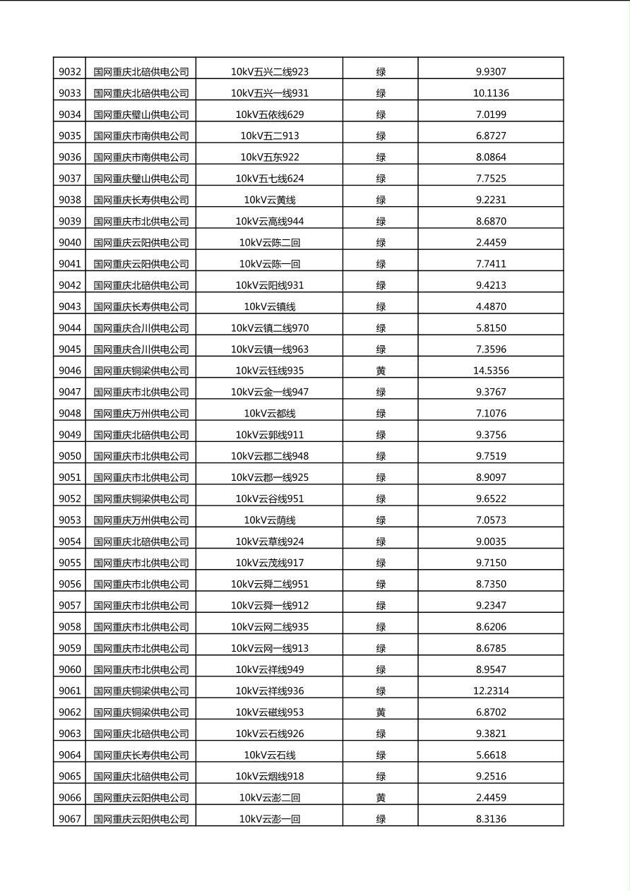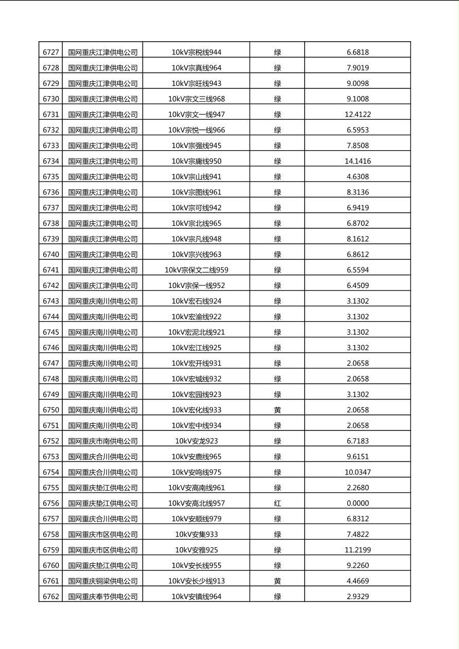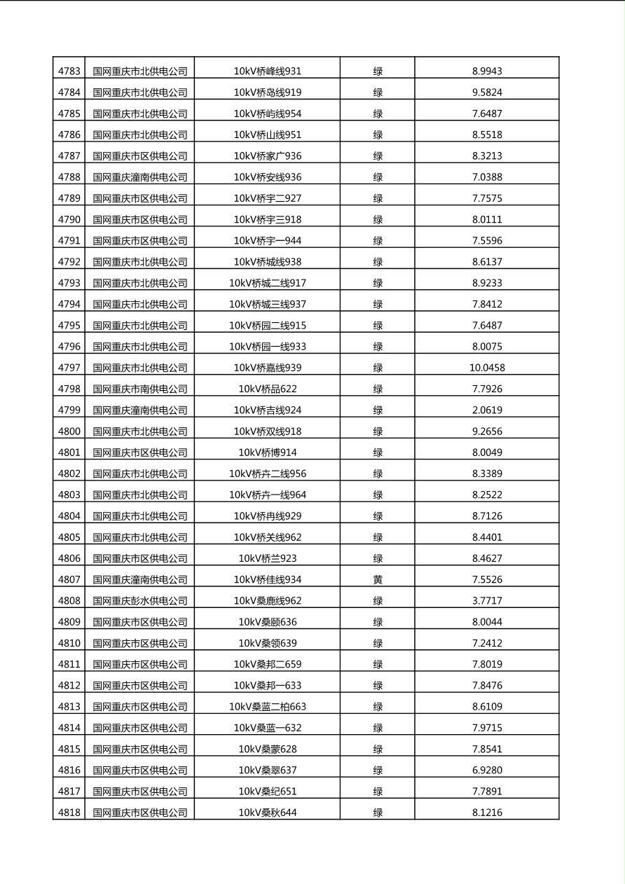 国网重庆市电力公司2025年第4季度分布式光伏可开放容量公示(10千伏配线)
