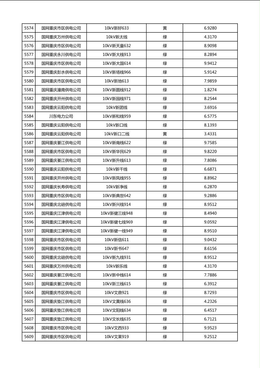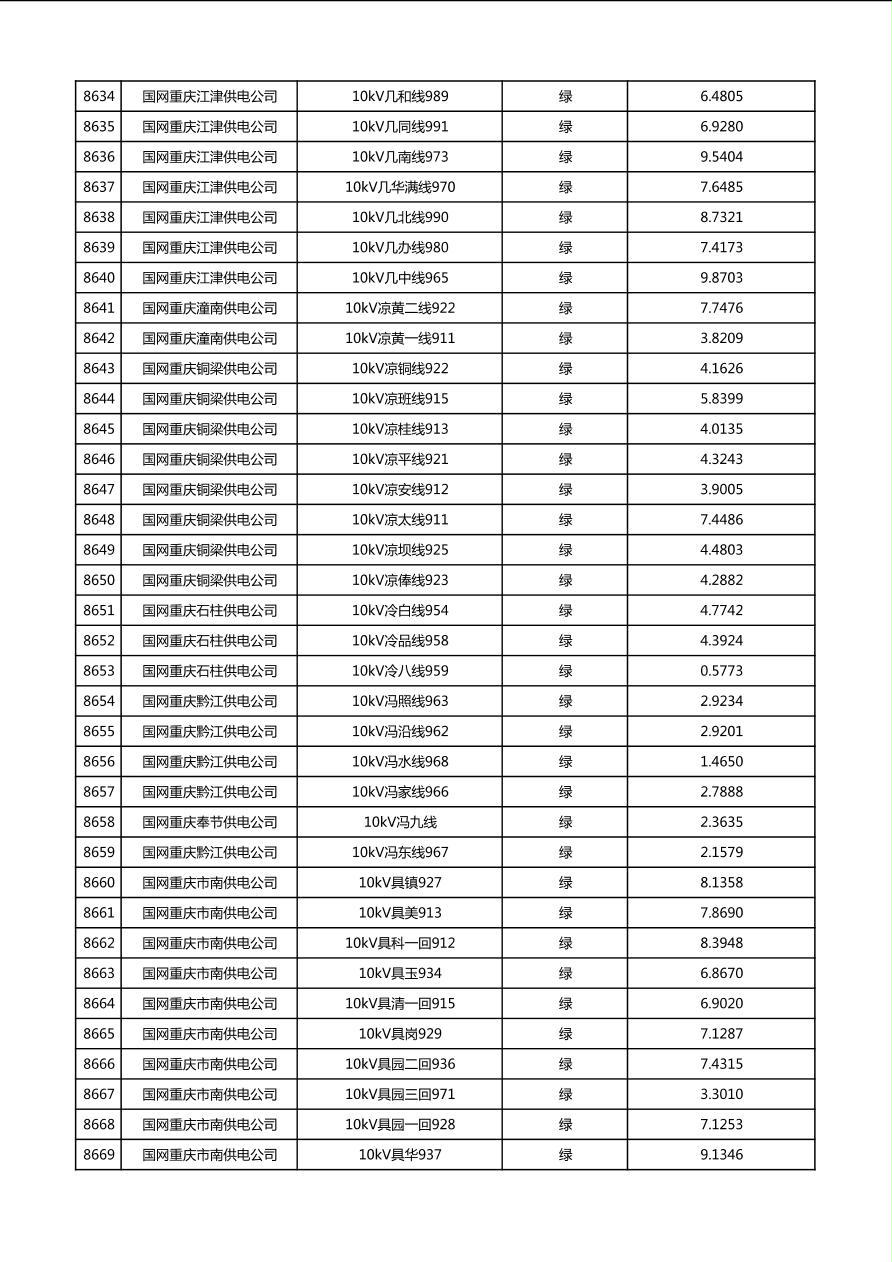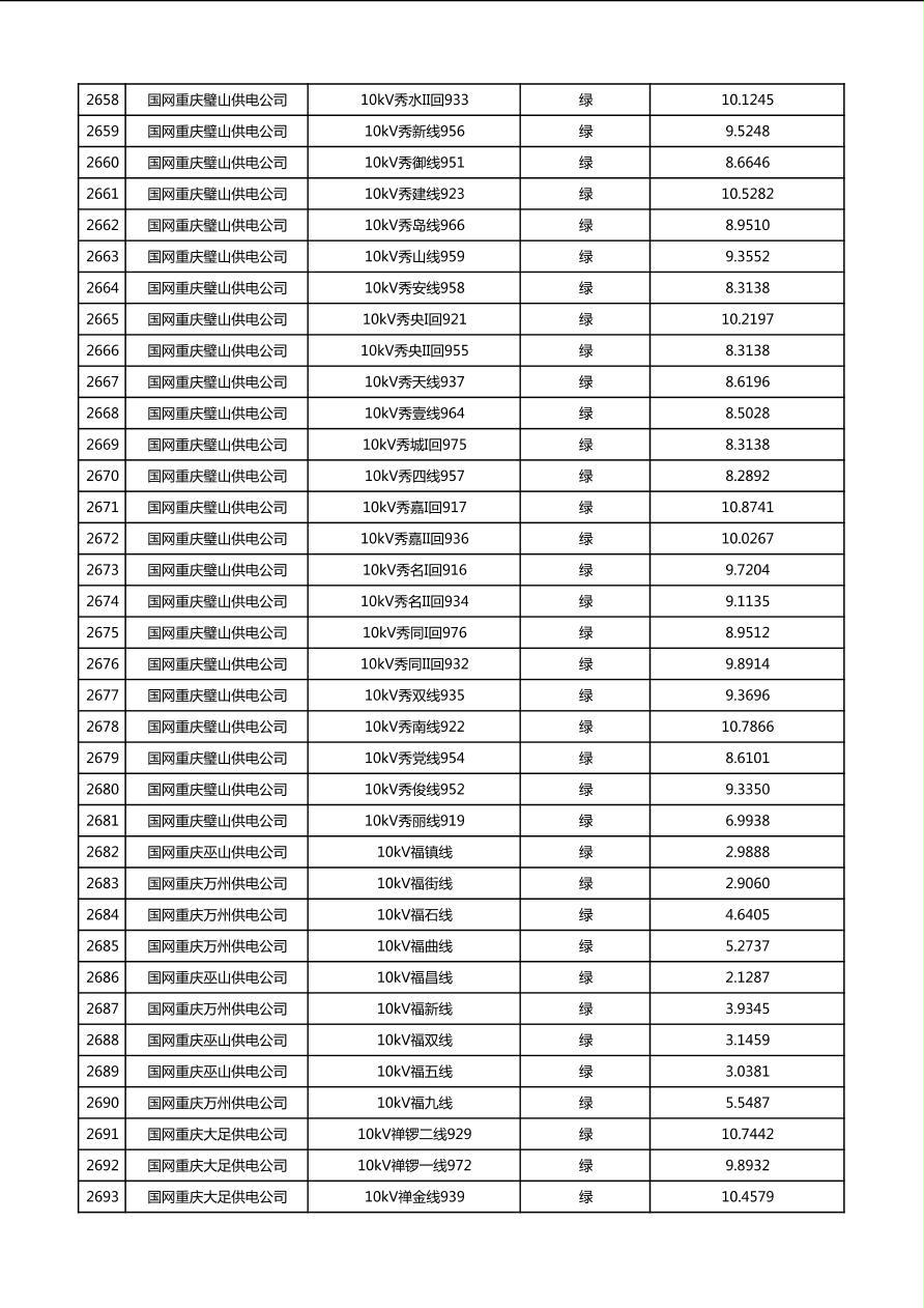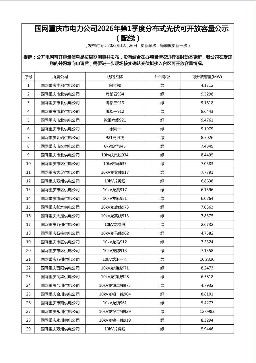 国网重庆市电力公司2026年第1季度分布式光伏可开放容量公示(配线)