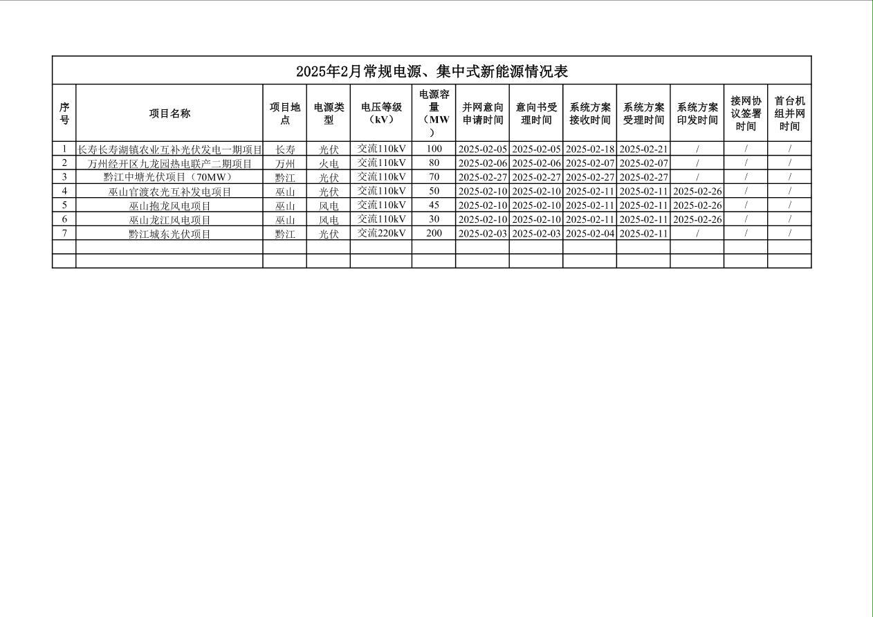 2025年2月常规电源、集中式新能源情况表