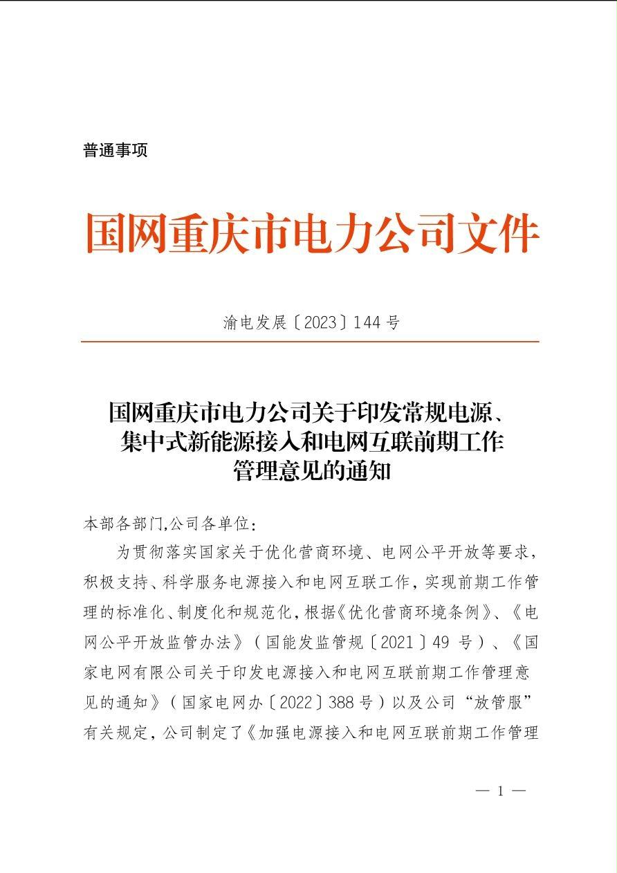 制度公开-常规电源、集中式新能源接入和电网互联前期工作管理意见