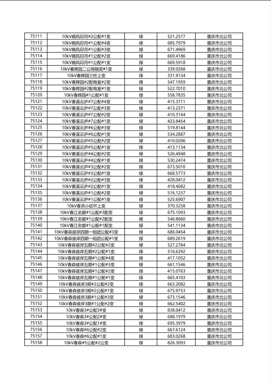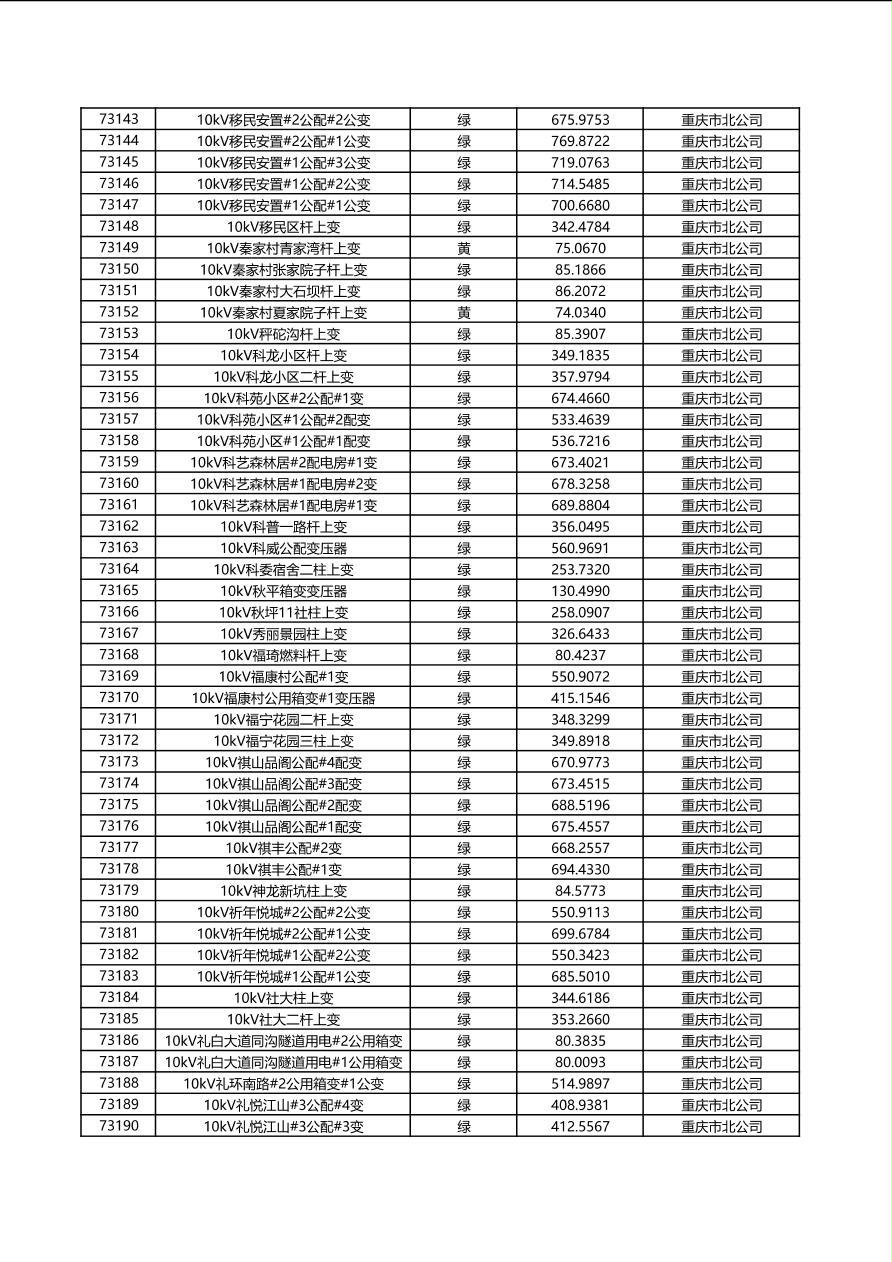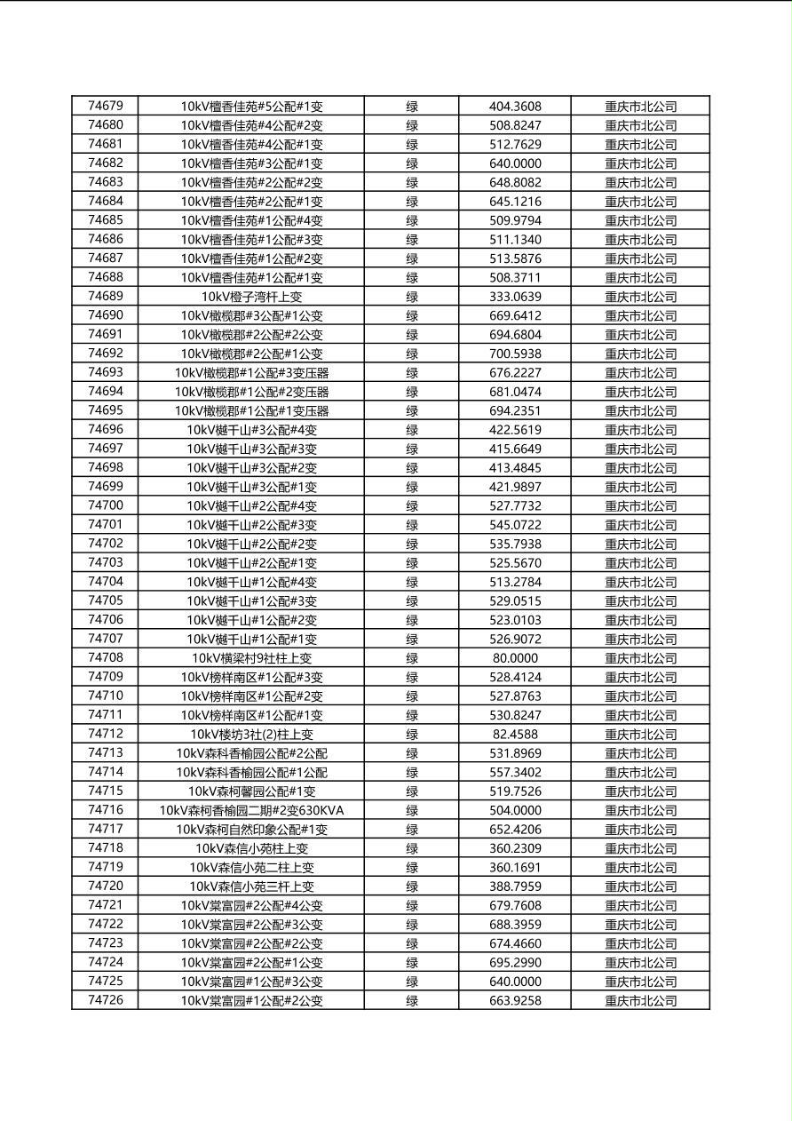 国网重庆市电力公司2026年第2季度分布式光伏可开放容量(10千伏配变)(2-5)