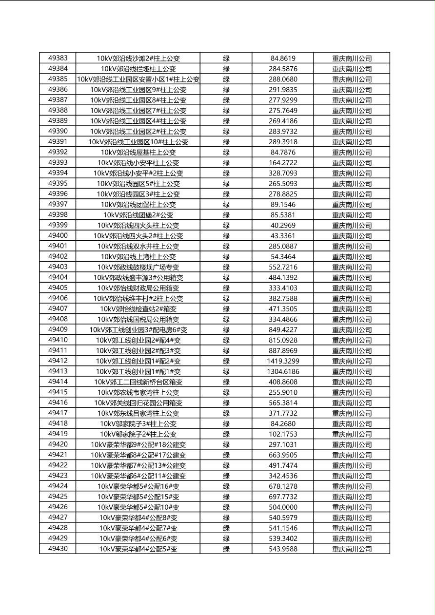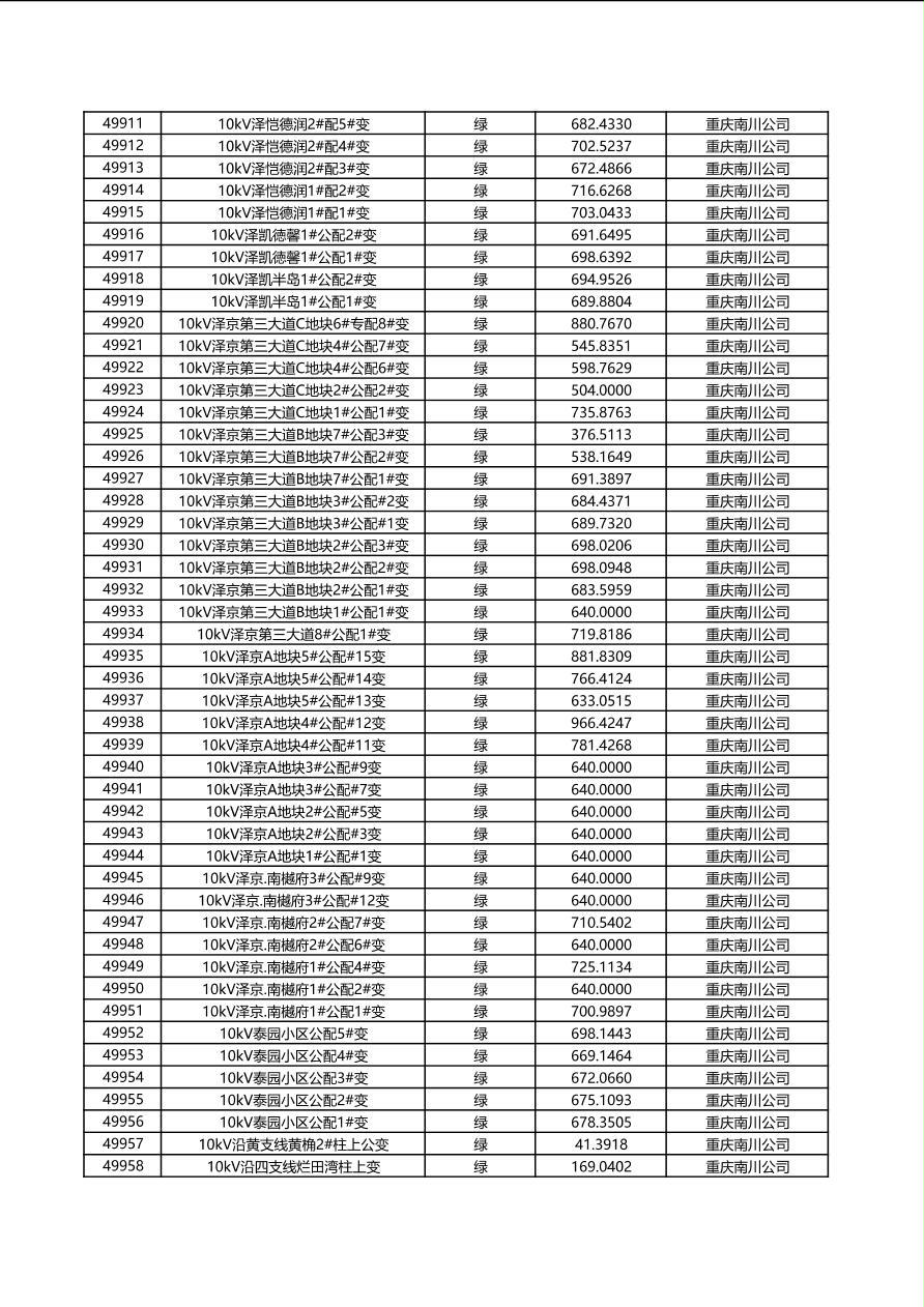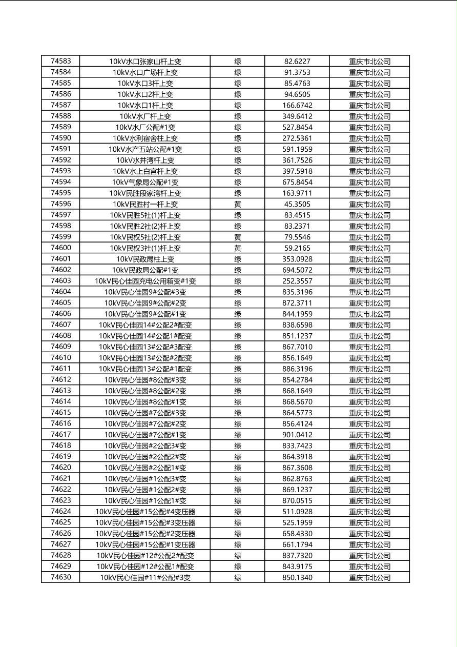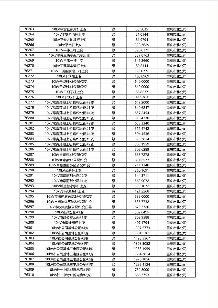国网重庆市电力公司2026年第2季度分布式光伏可开放容量(10千伏配变)(2-5)