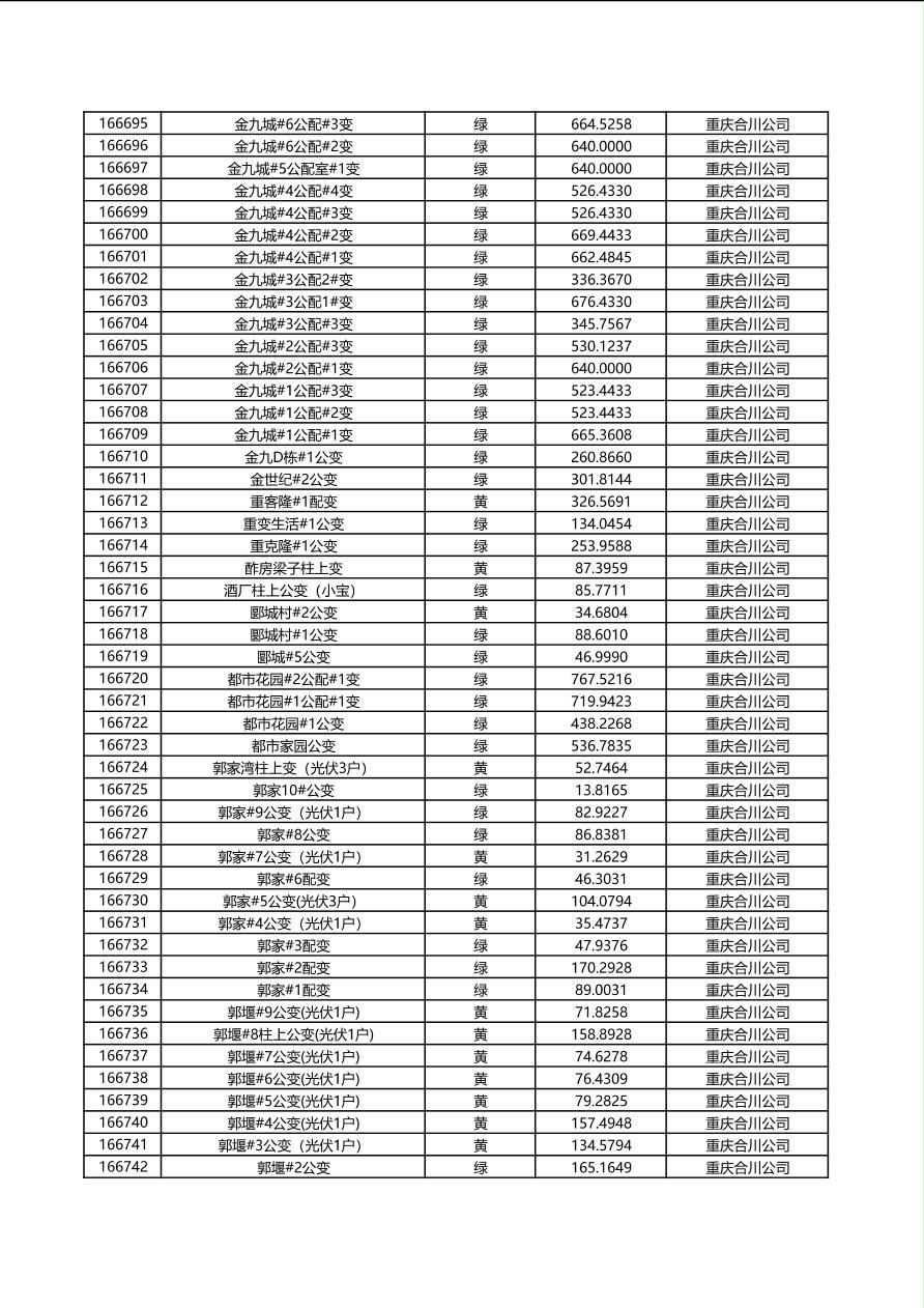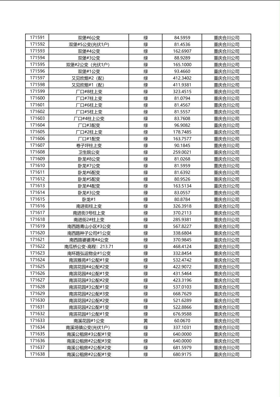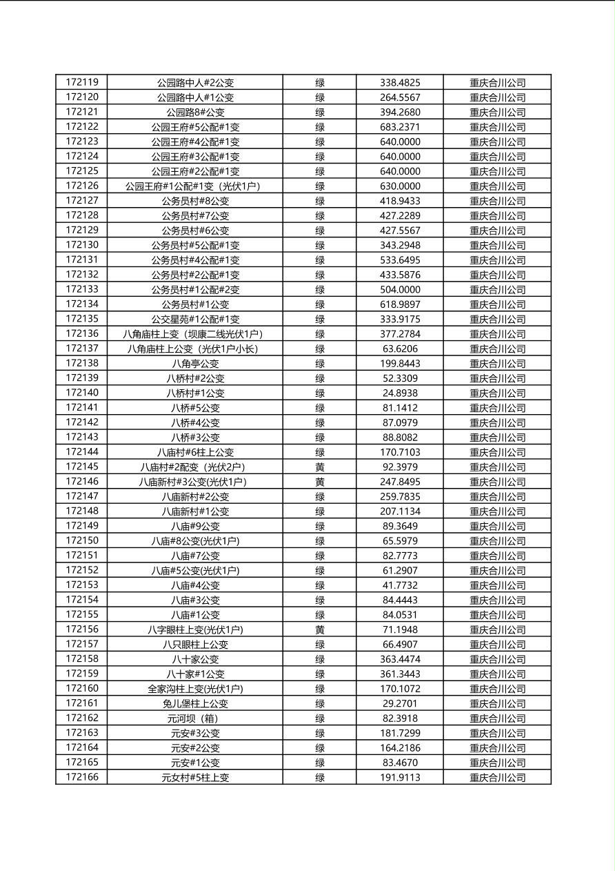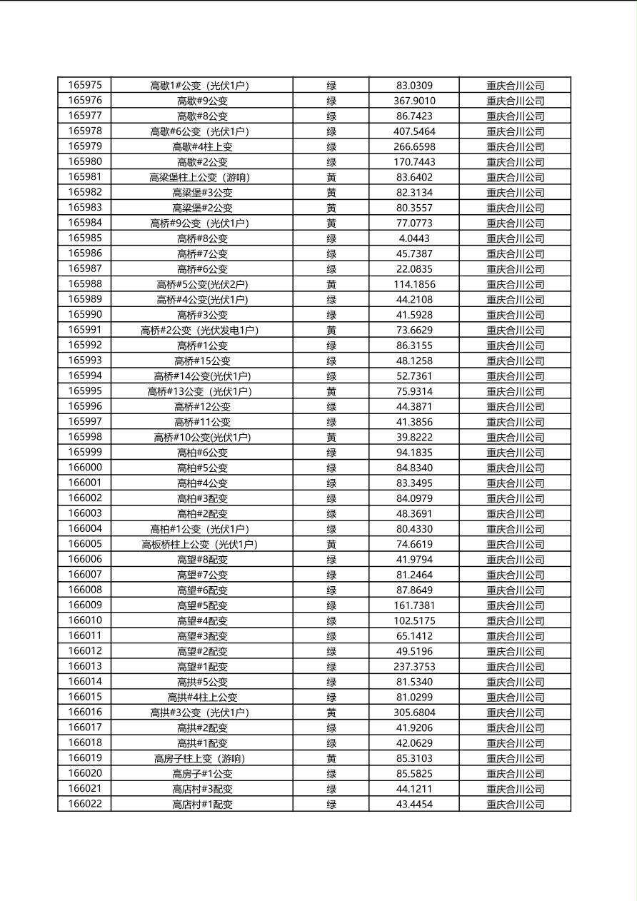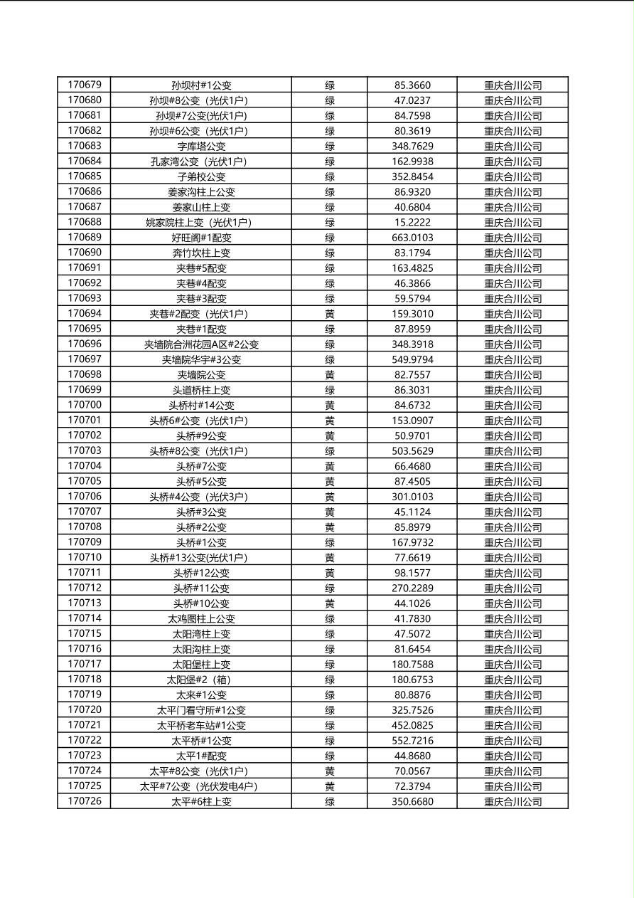 国网重庆市电力公司2026年第2季度分布式光伏可开放容量(10千伏配变)(5-5)