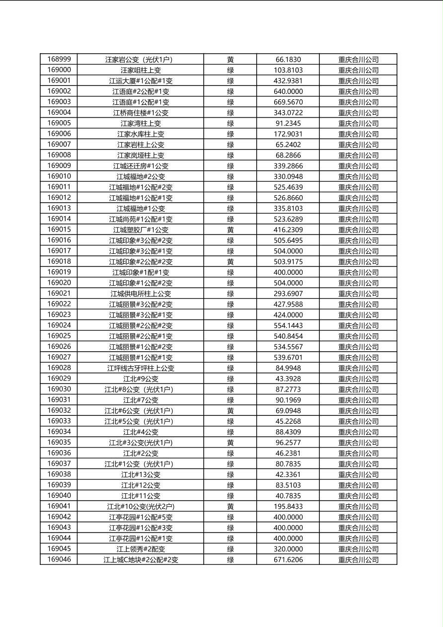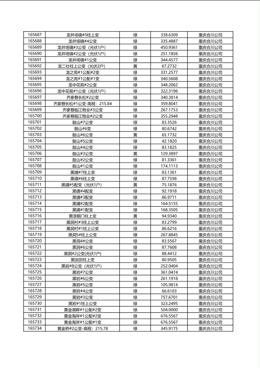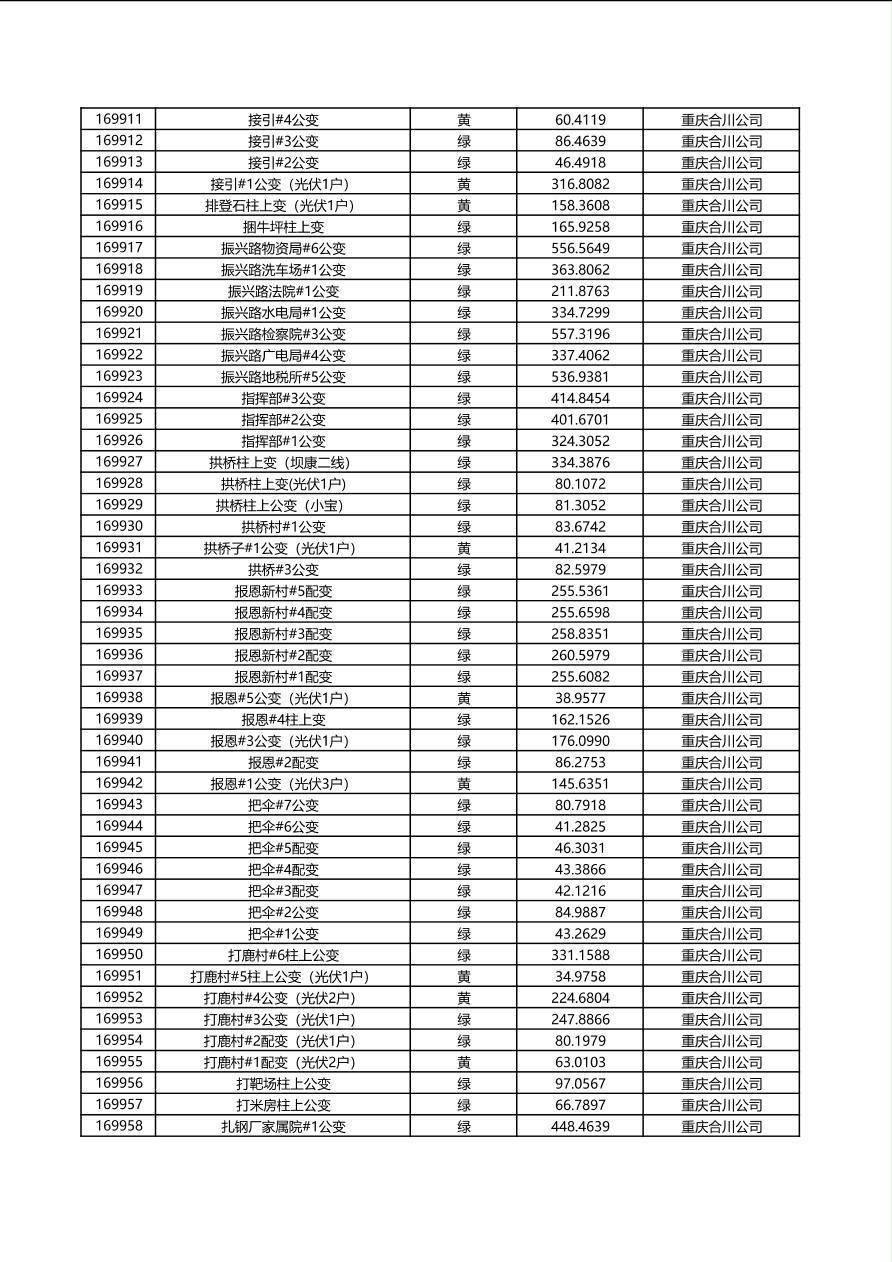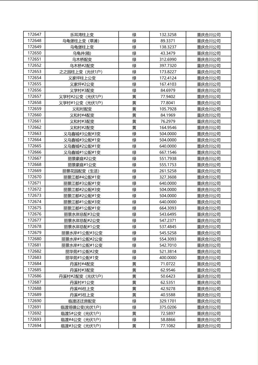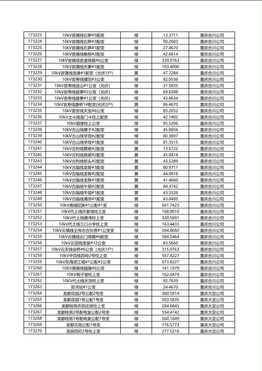 国网重庆市电力公司2026年第2季度分布式光伏可开放容量(10千伏配变)(5-5)