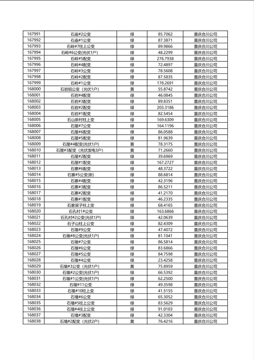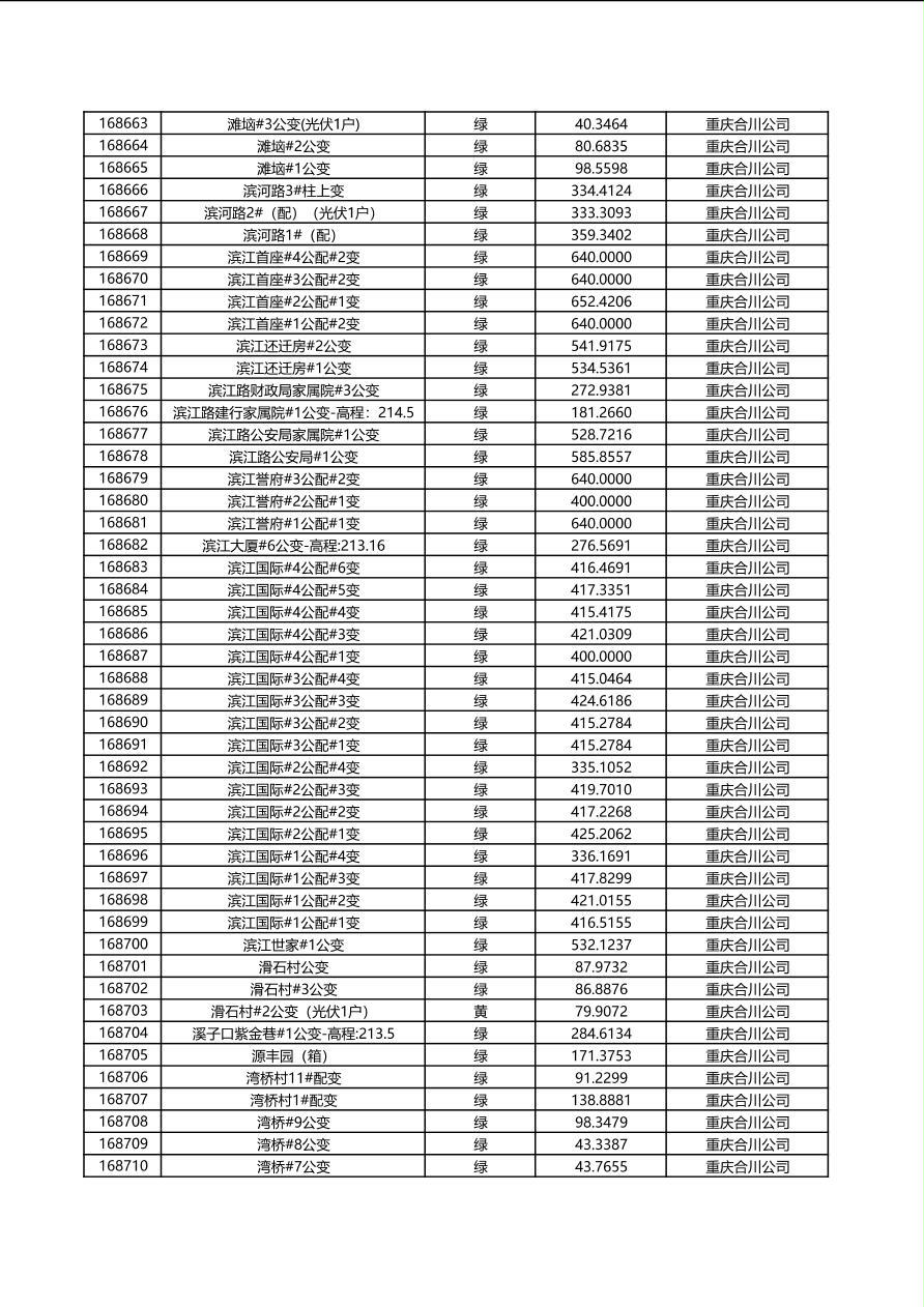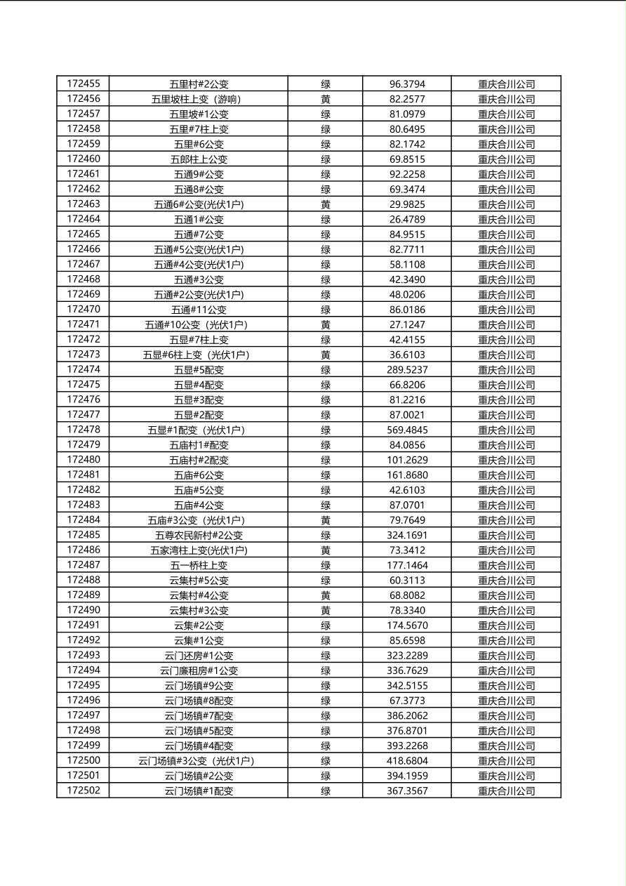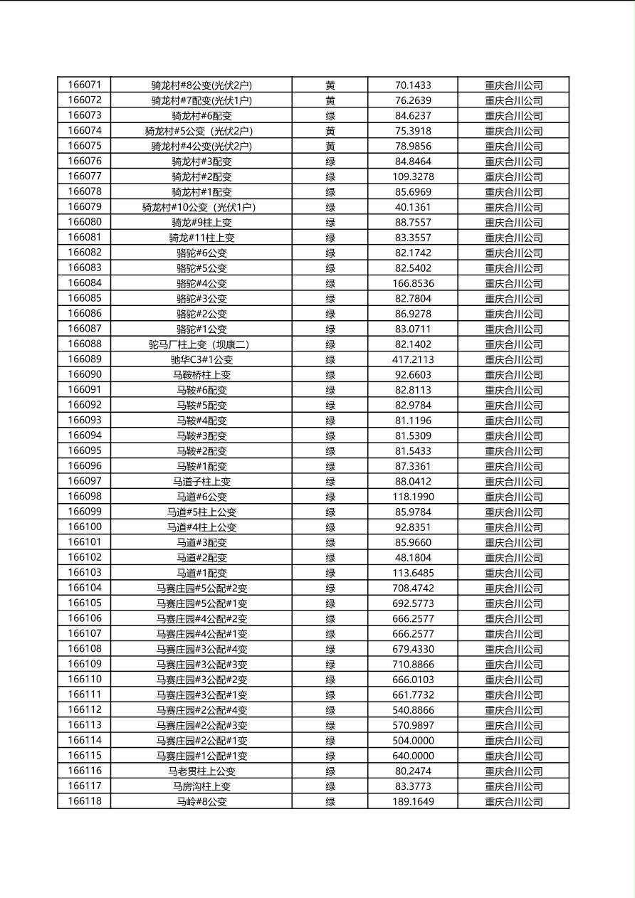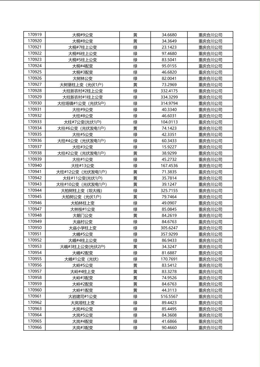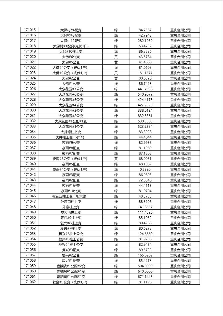 国网重庆市电力公司2026年第2季度分布式光伏可开放容量(10千伏配变)(5-5)