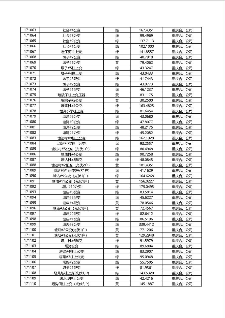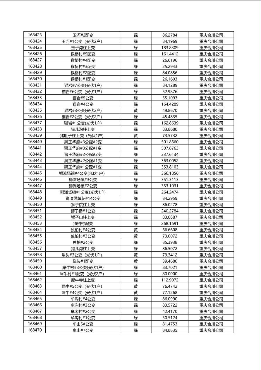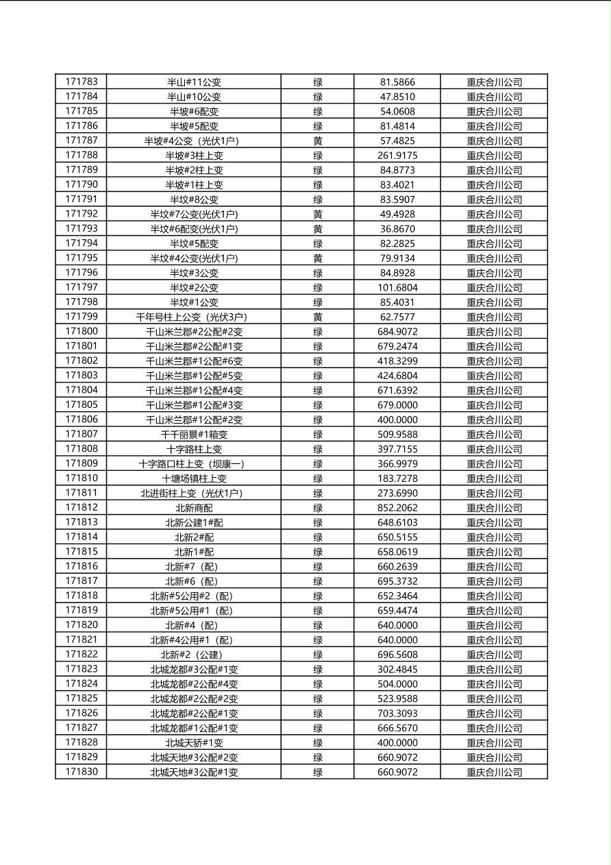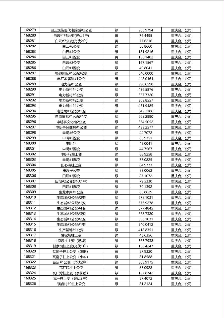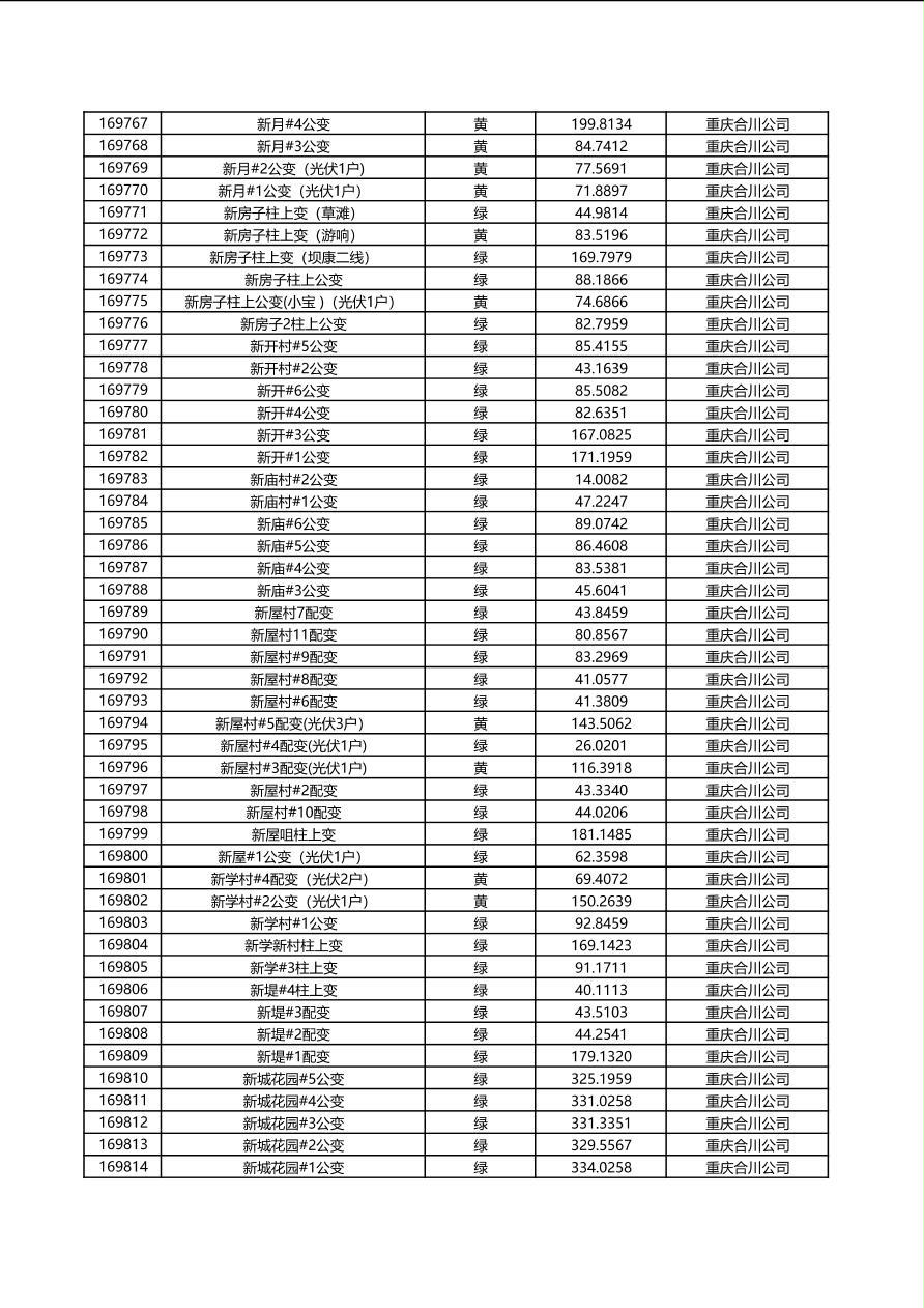 国网重庆市电力公司2026年第2季度分布式光伏可开放容量(10千伏配变)(5-5)