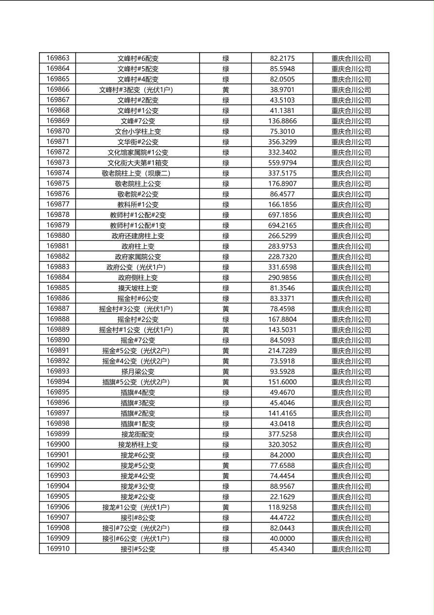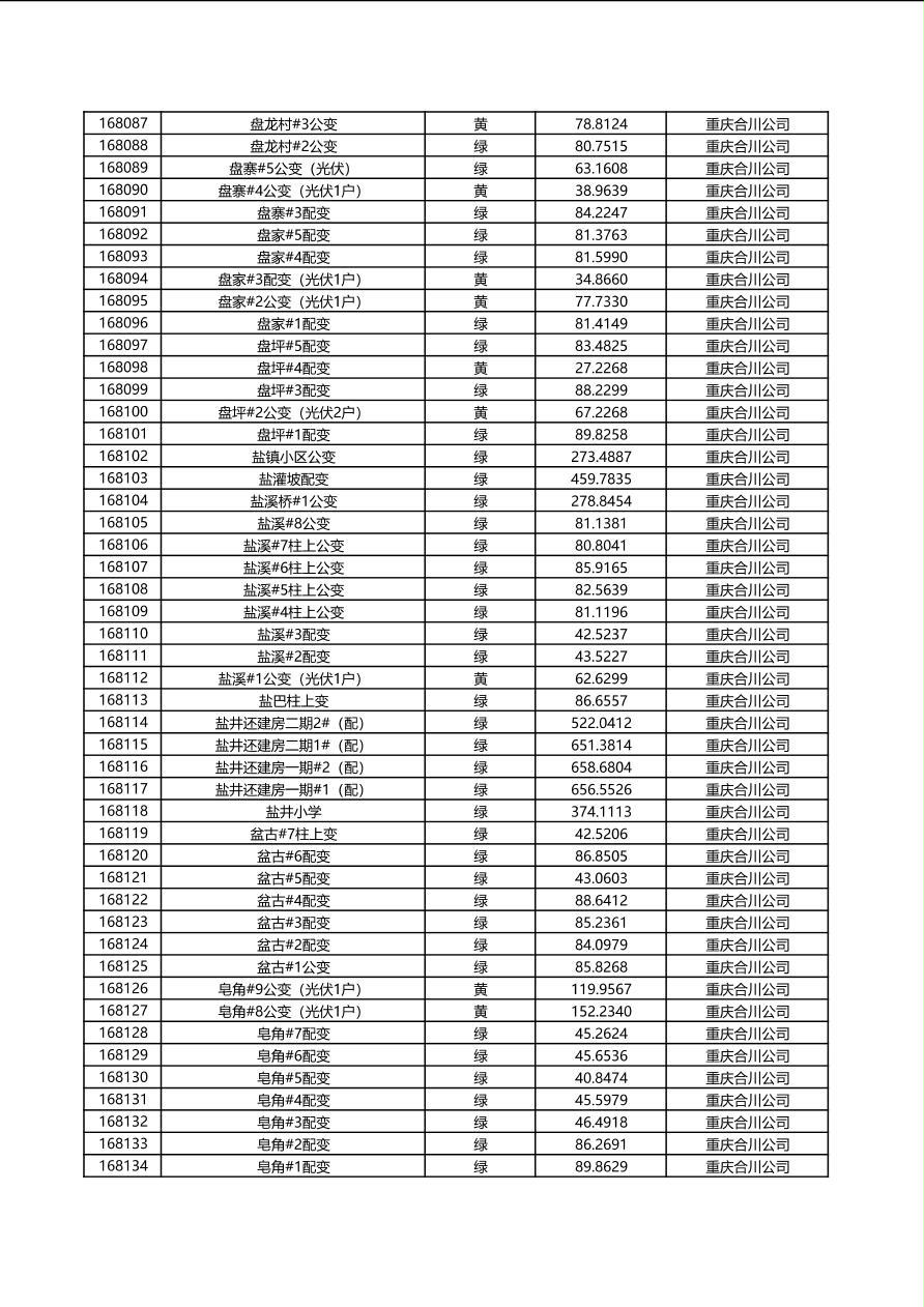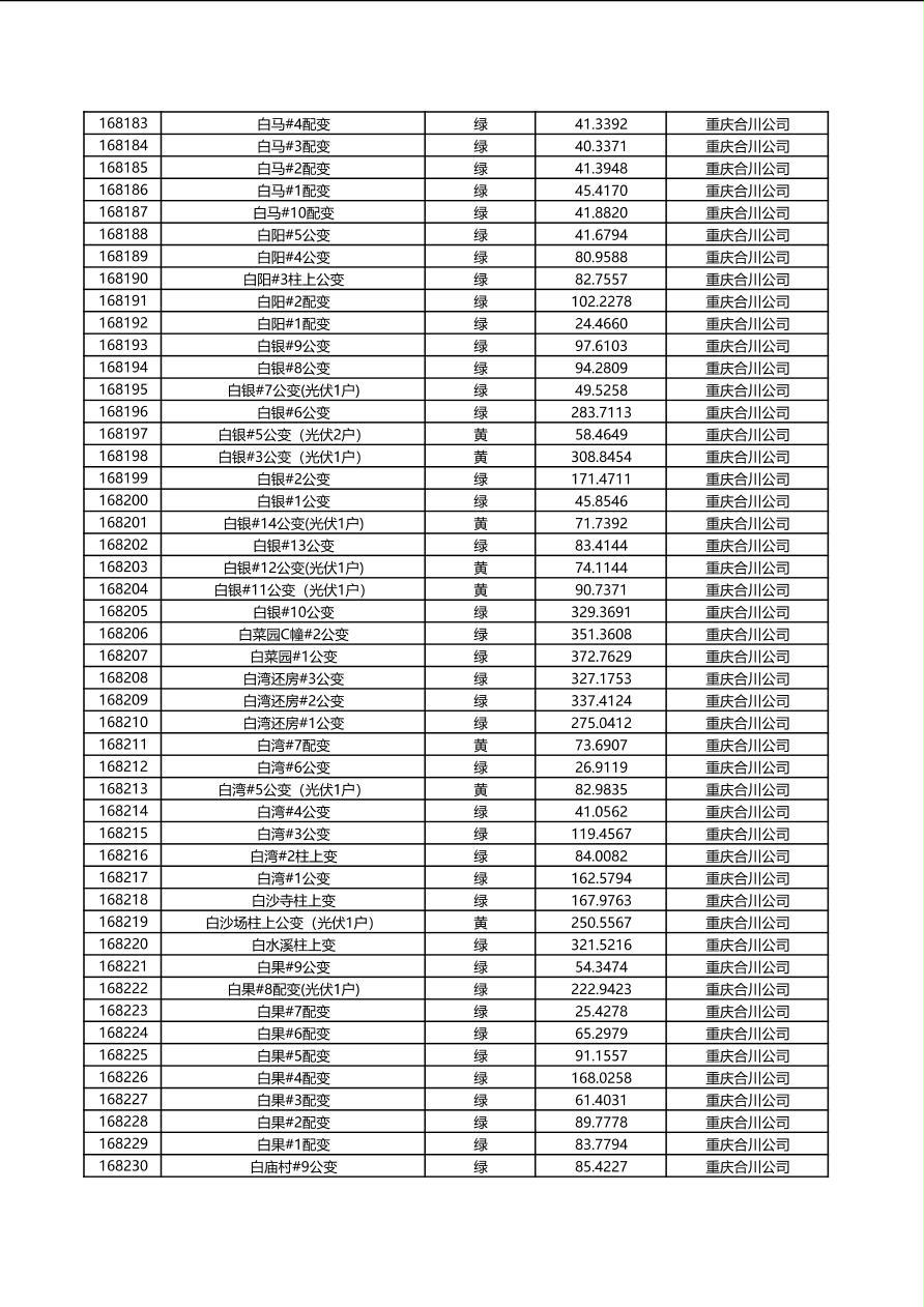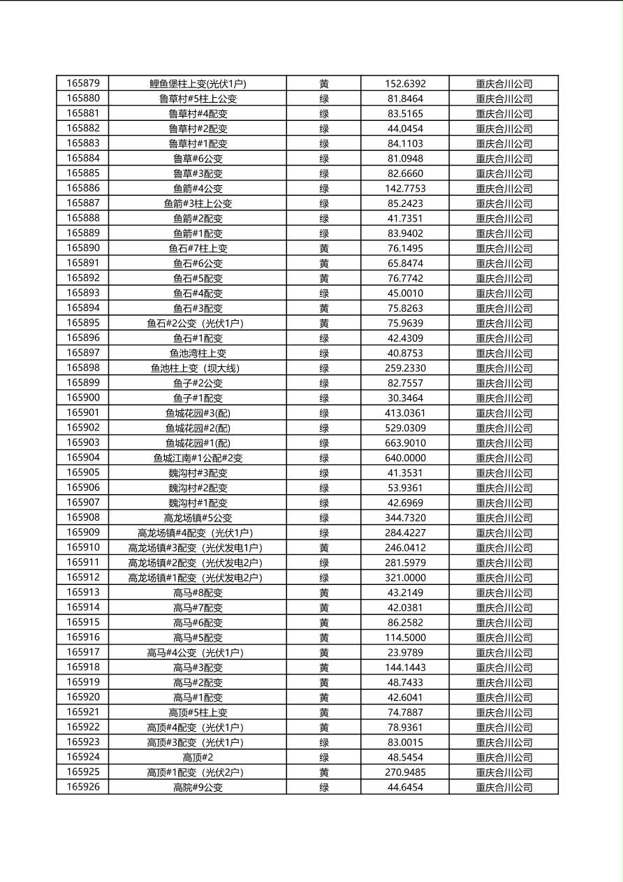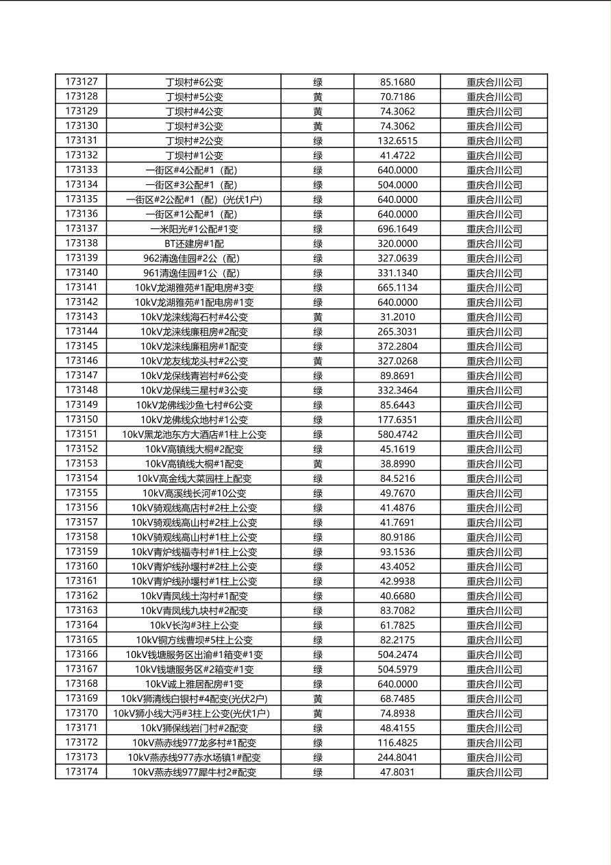 国网重庆市电力公司2026年第2季度分布式光伏可开放容量(10千伏配变)(5-5)