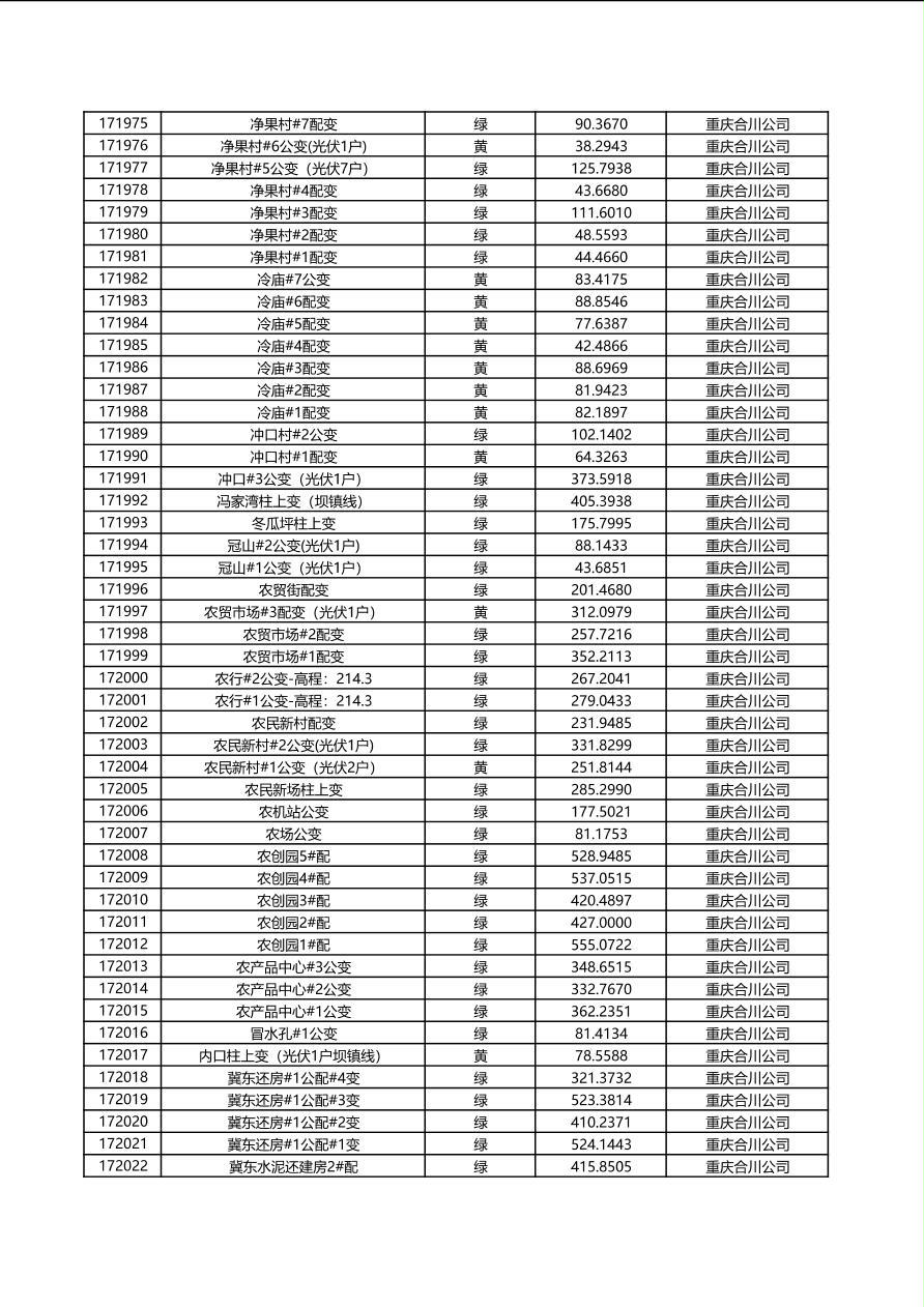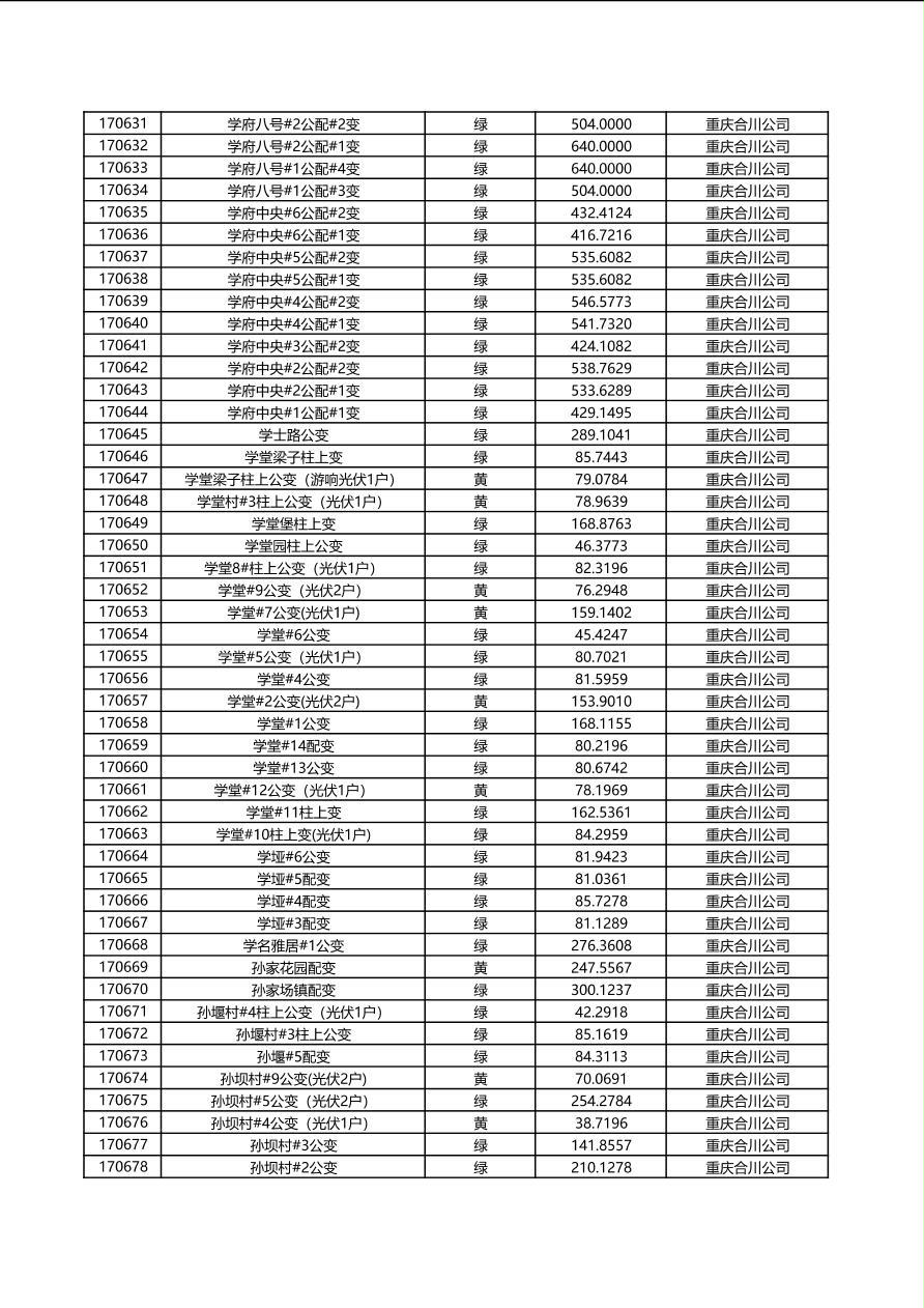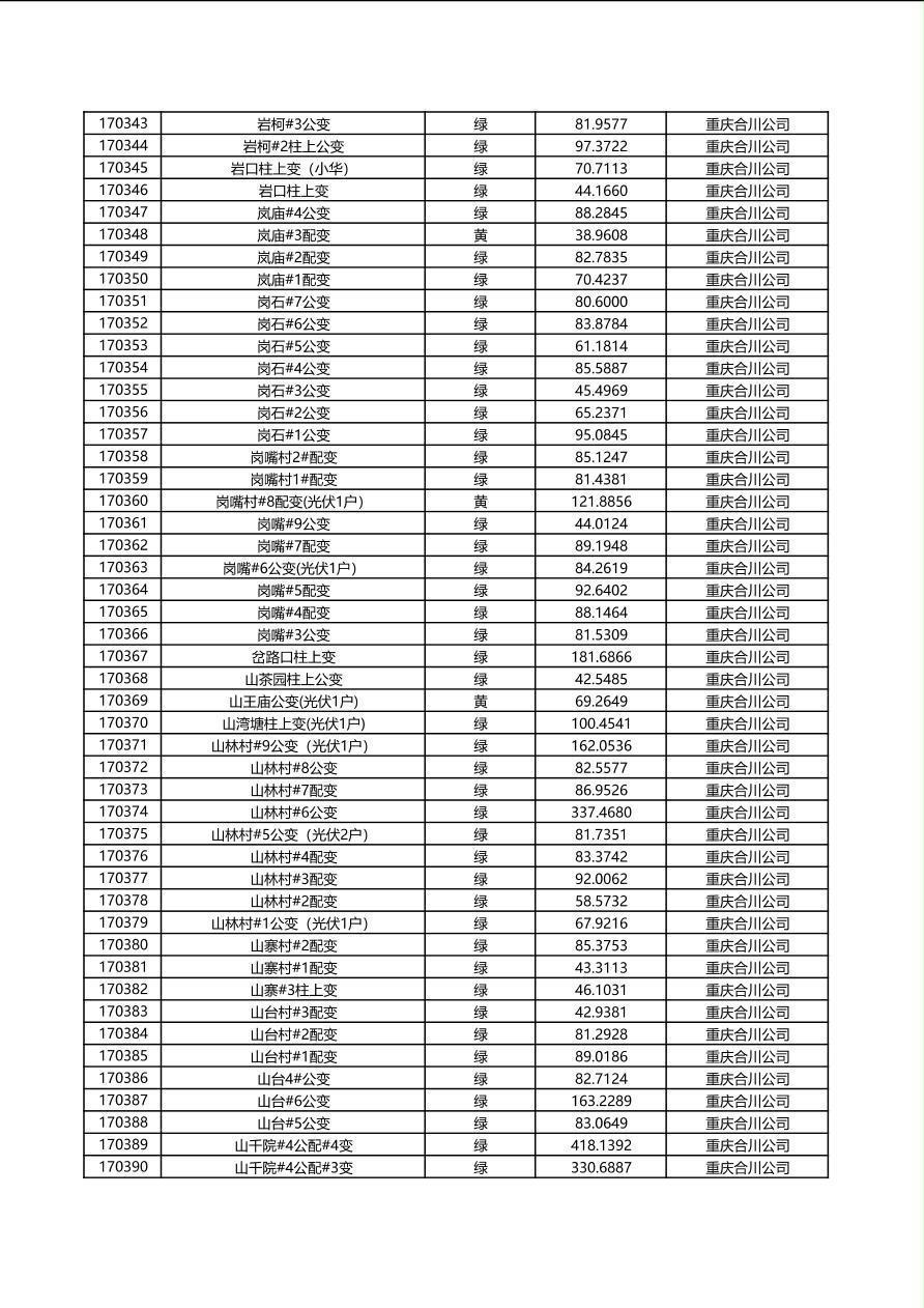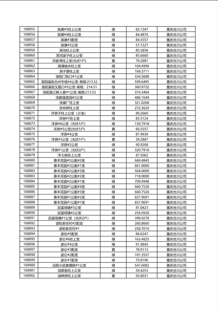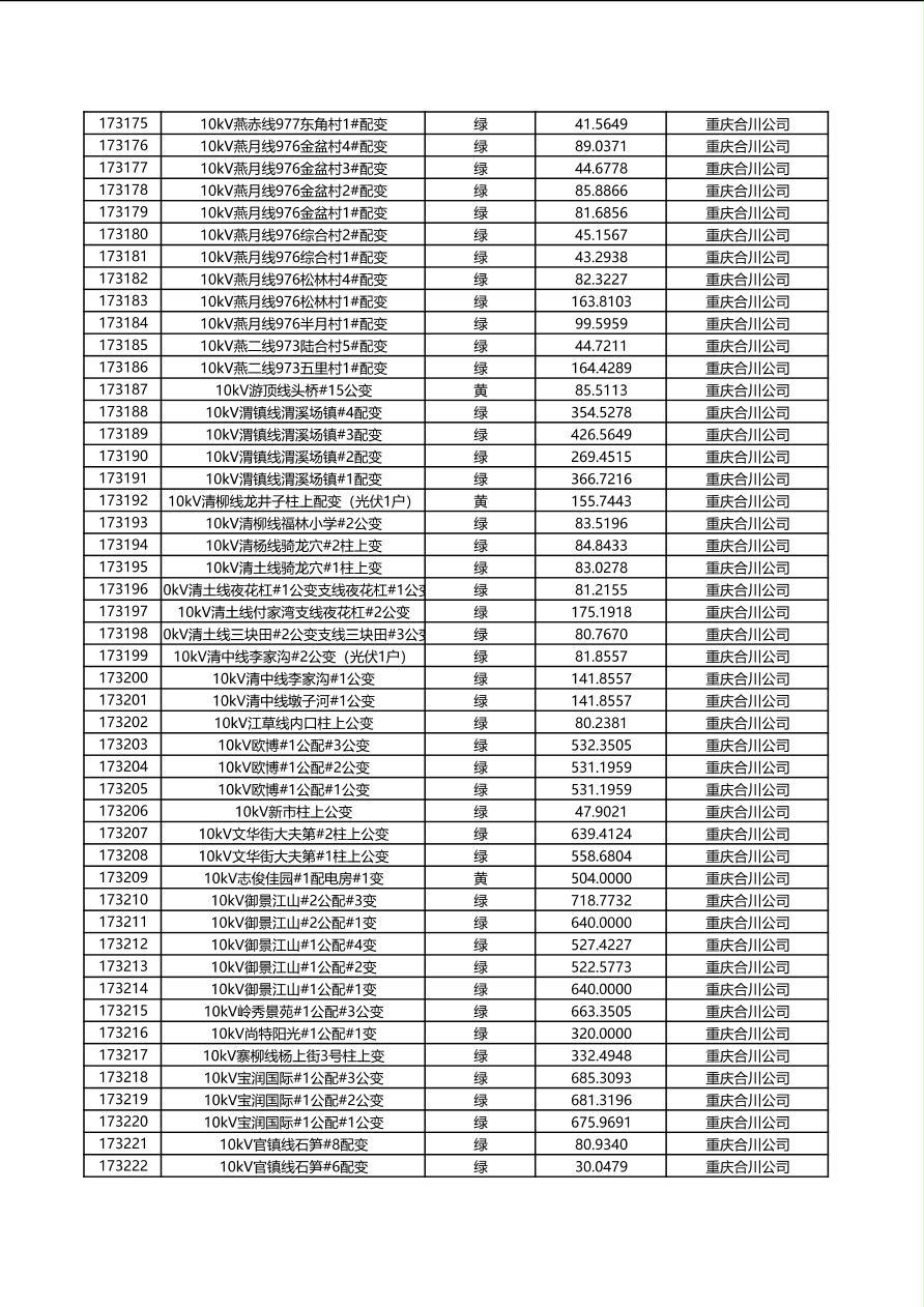 国网重庆市电力公司2026年第2季度分布式光伏可开放容量(10千伏配变)(5-5)