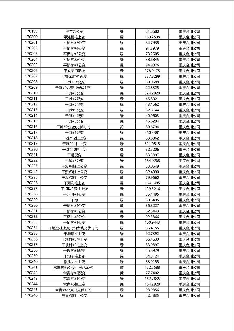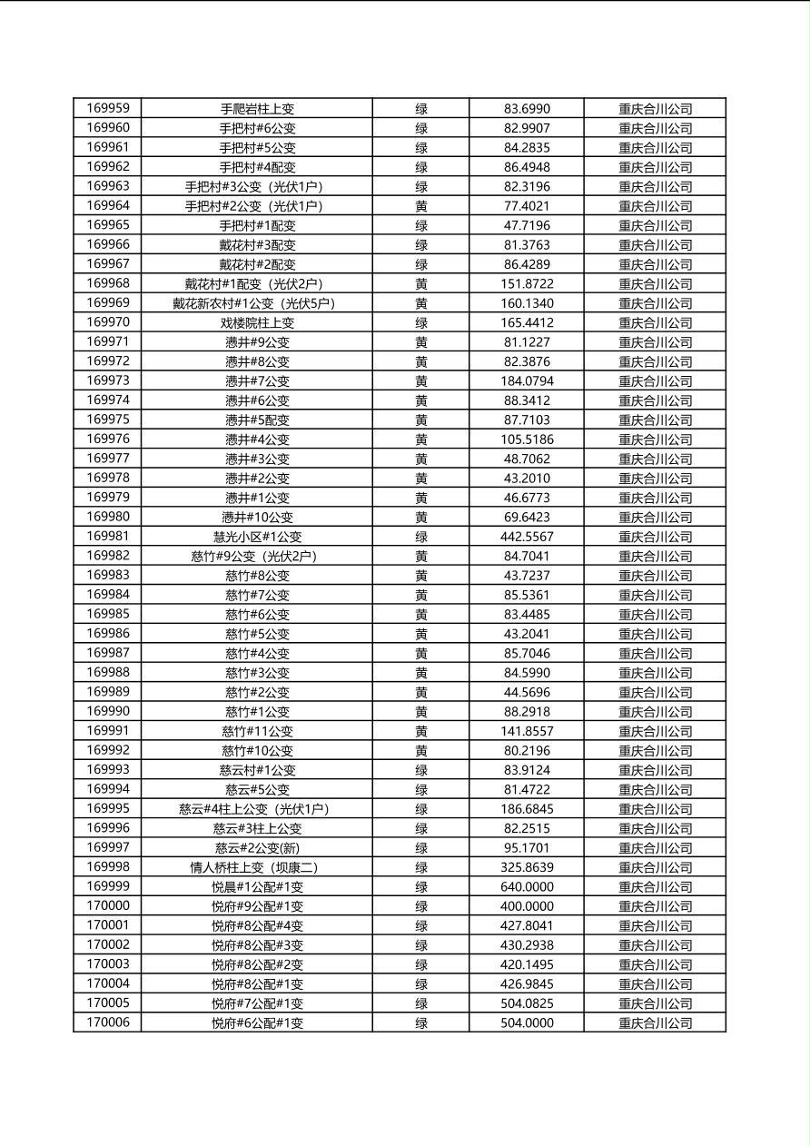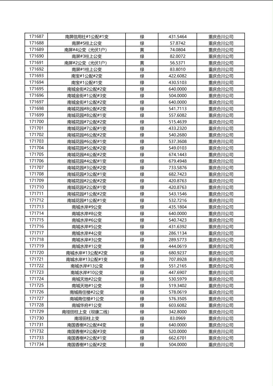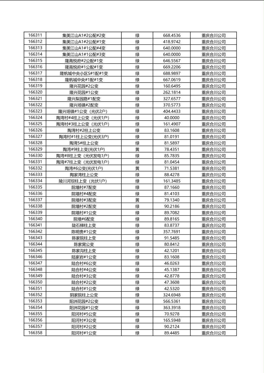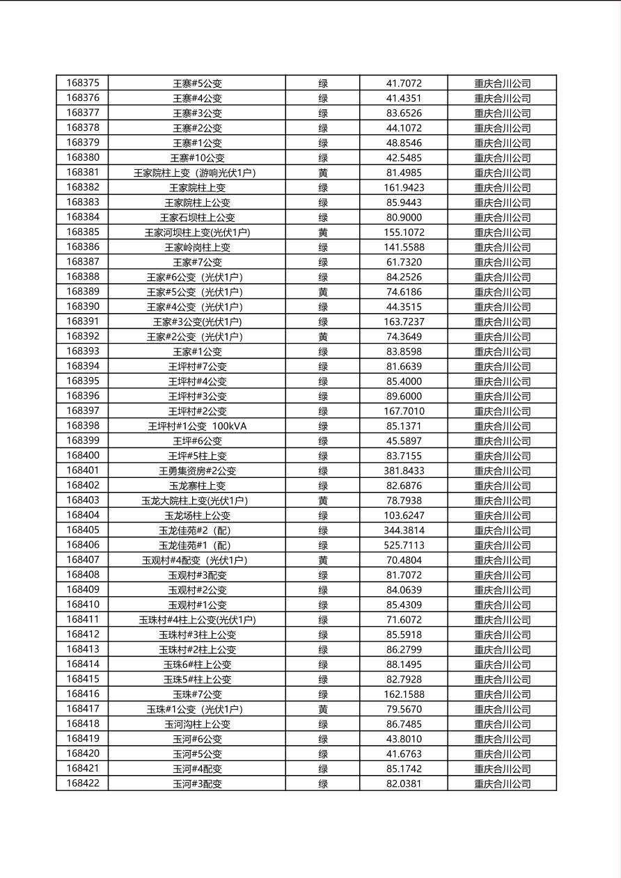 国网重庆市电力公司2026年第2季度分布式光伏可开放容量(10千伏配变)(5-5)