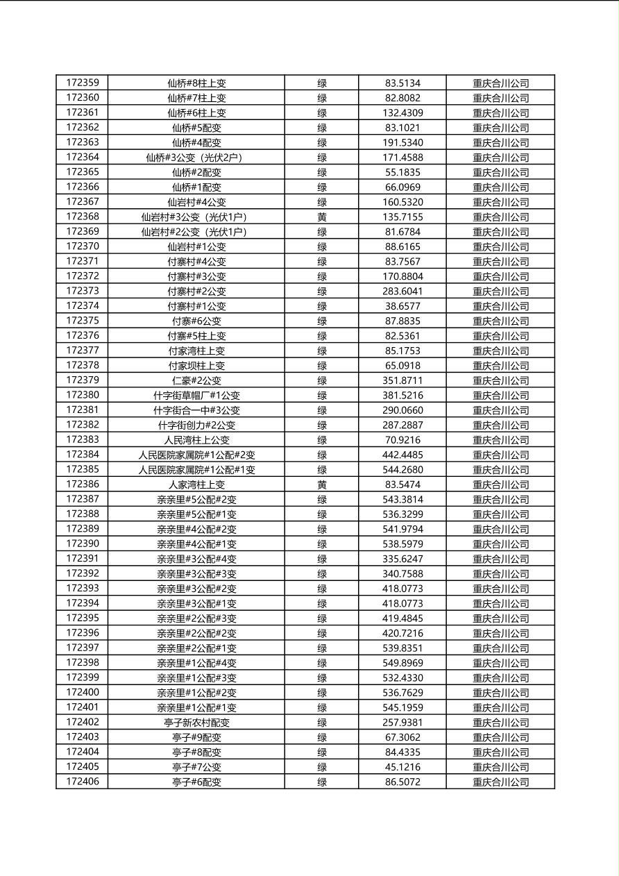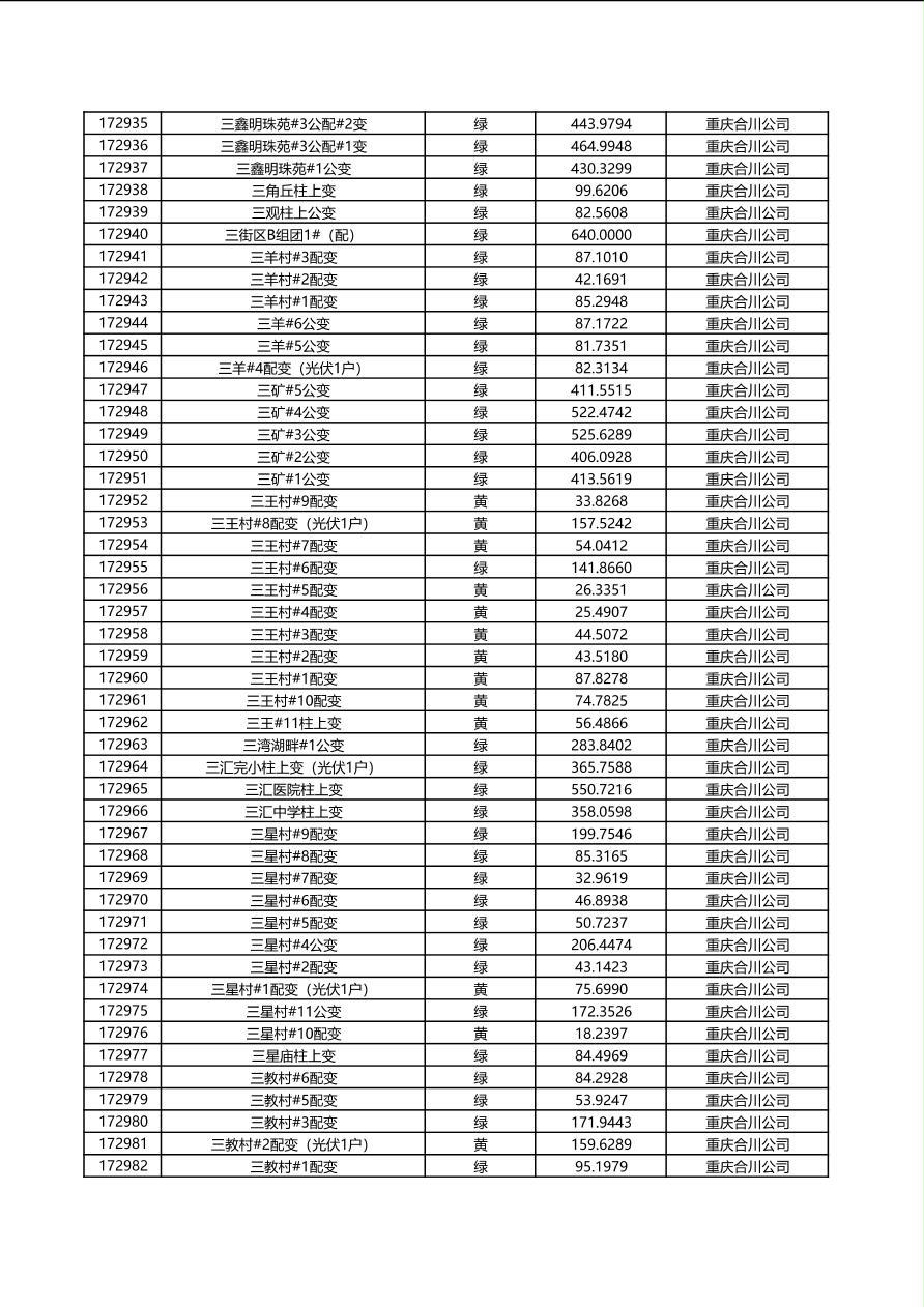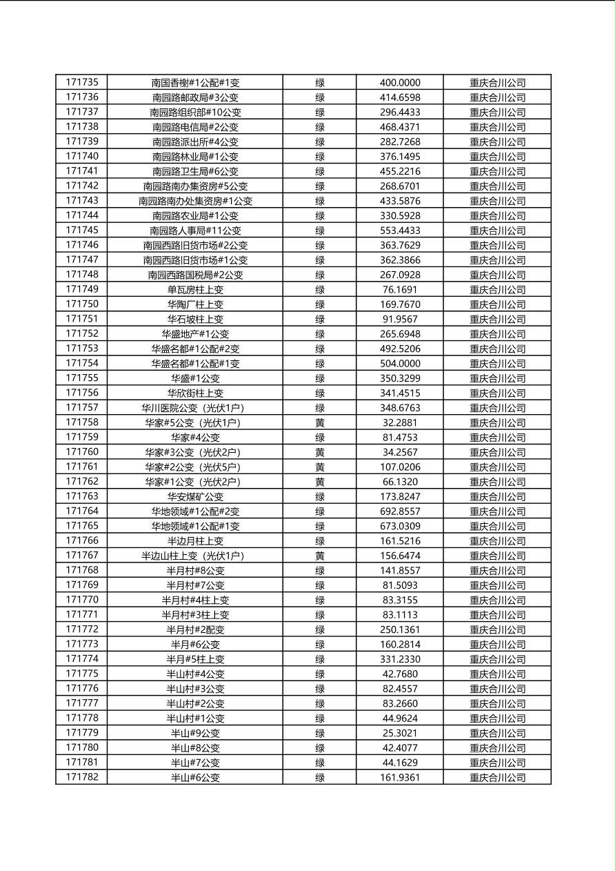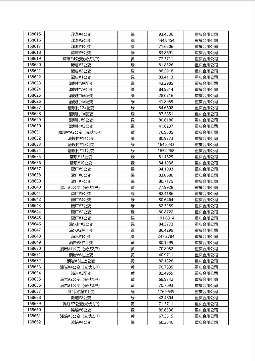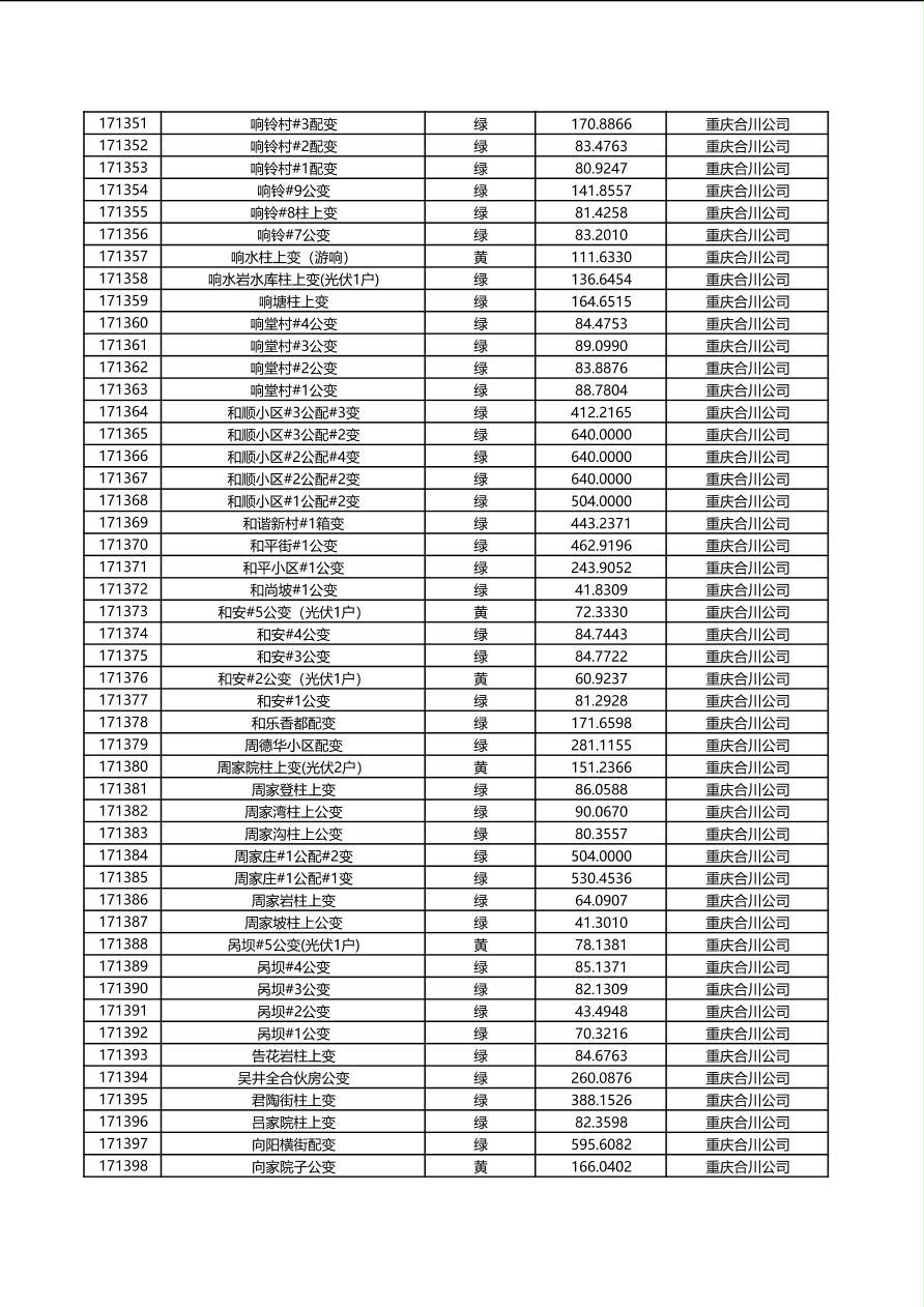 国网重庆市电力公司2026年第2季度分布式光伏可开放容量(10千伏配变)(5-5)
