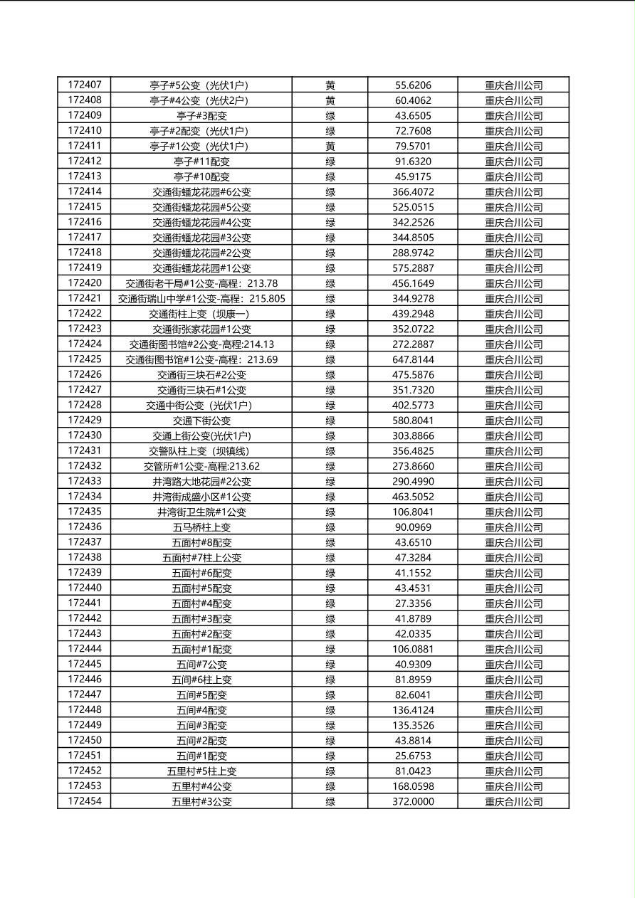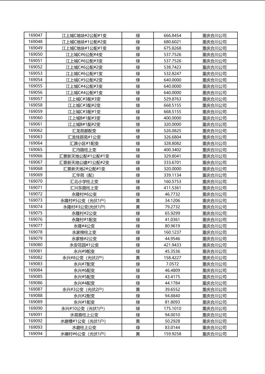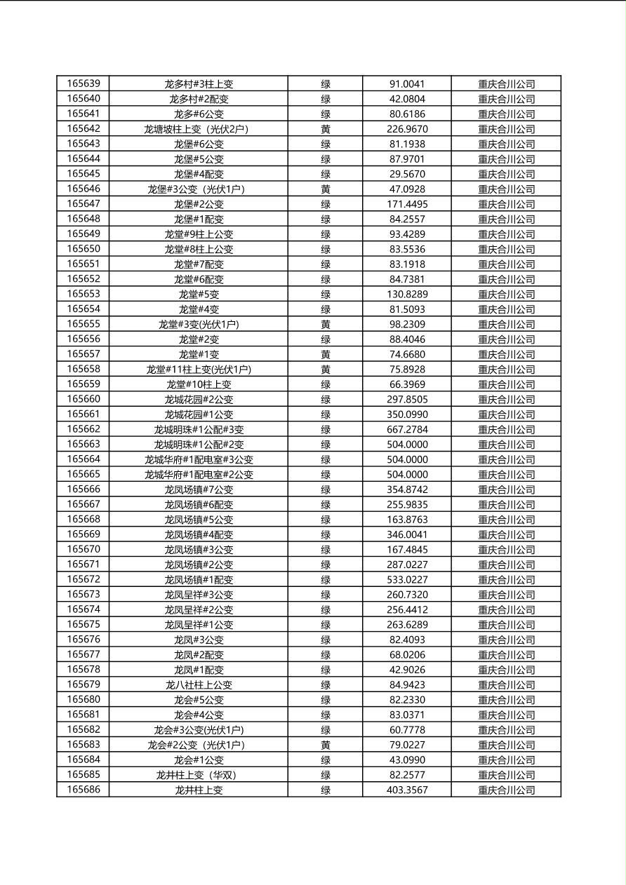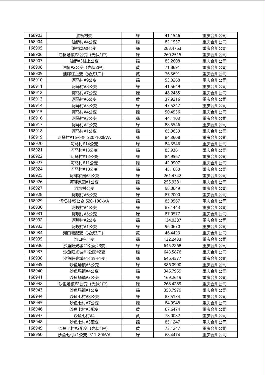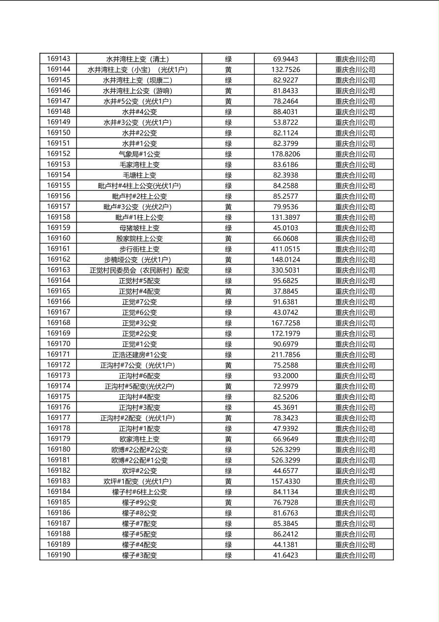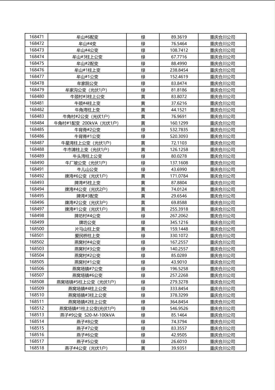 国网重庆市电力公司2026年第2季度分布式光伏可开放容量(10千伏配变)(5-5)