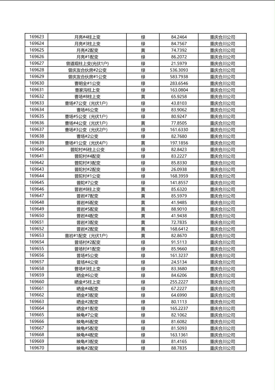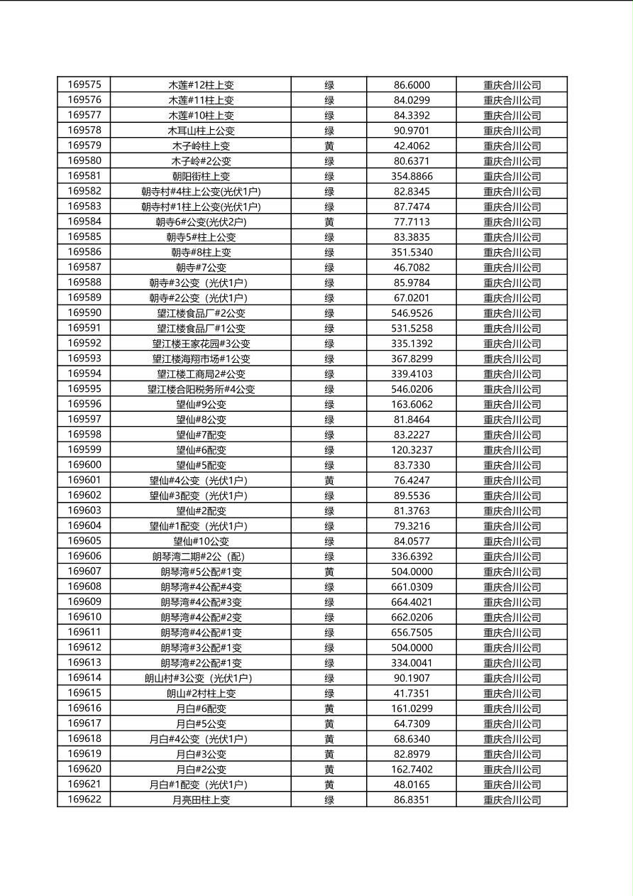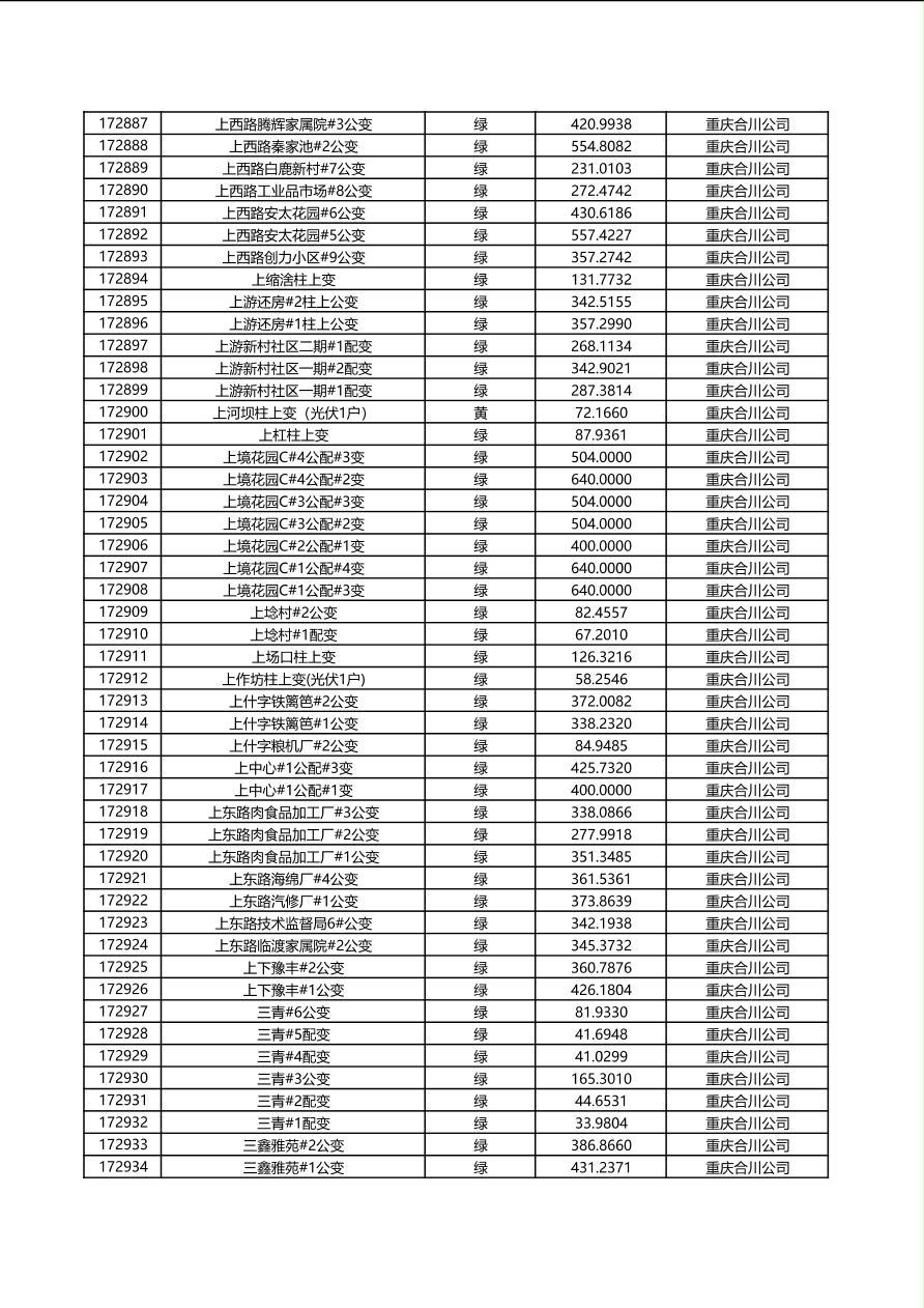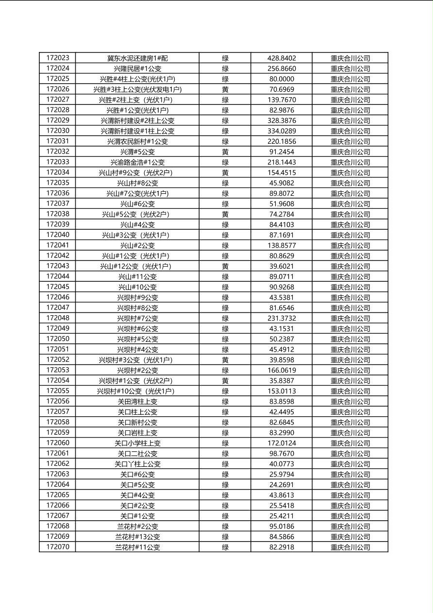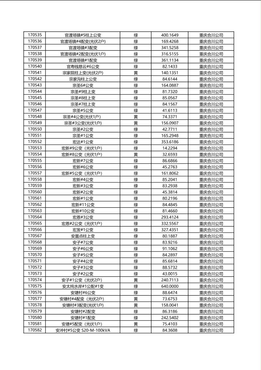 国网重庆市电力公司2026年第2季度分布式光伏可开放容量(10千伏配变)(5-5)