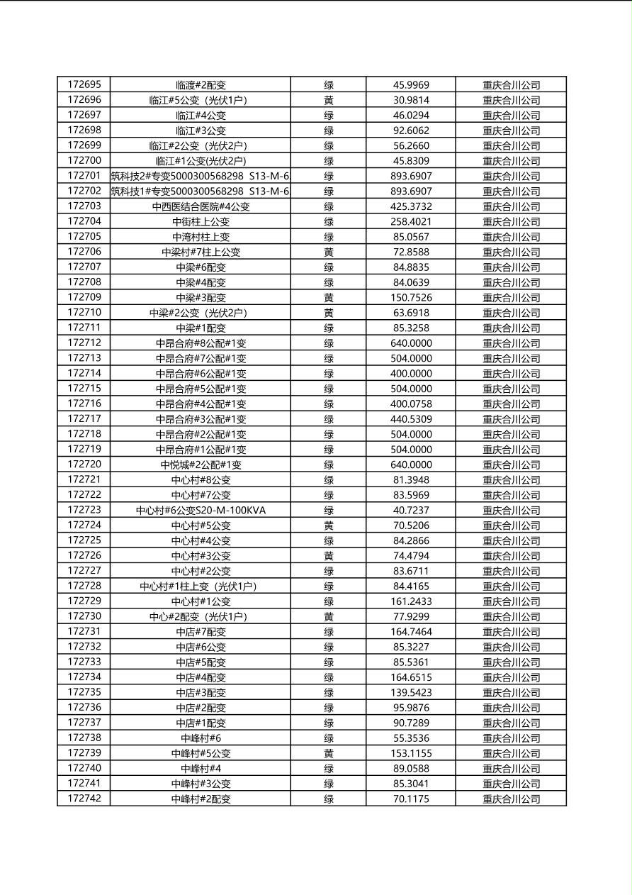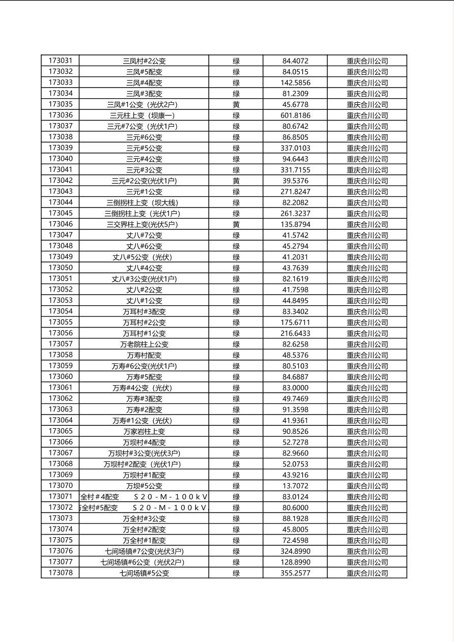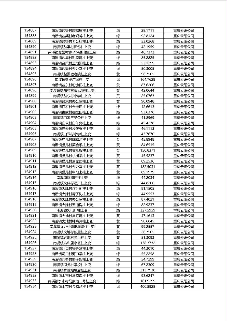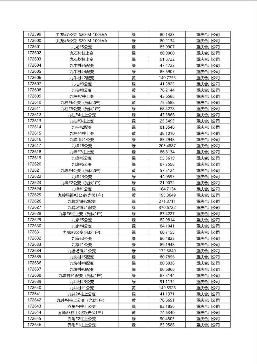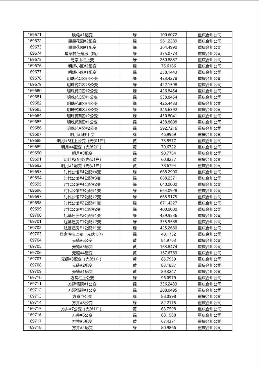 国网重庆市电力公司2026年第2季度分布式光伏可开放容量(10千伏配变)(5-5)