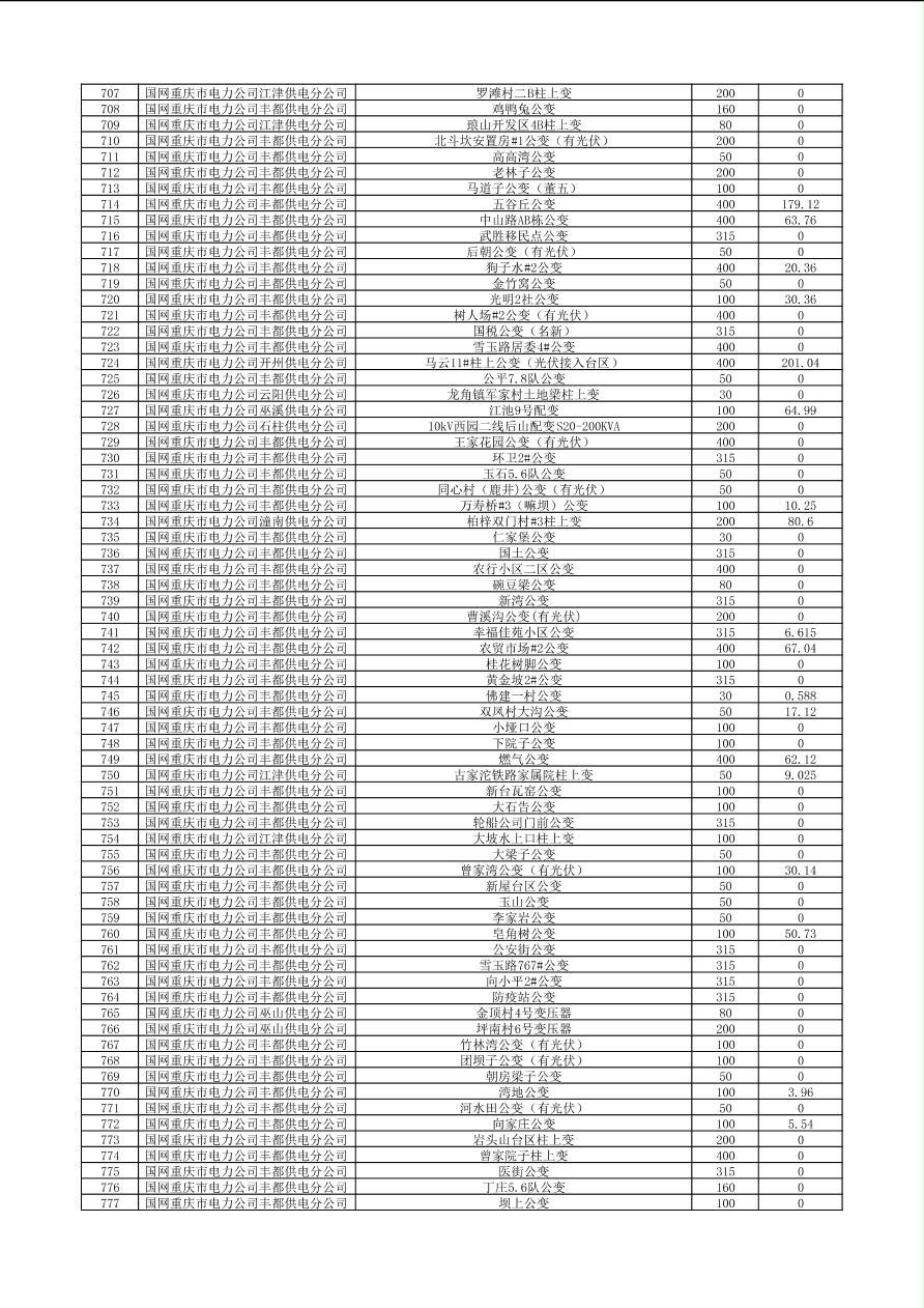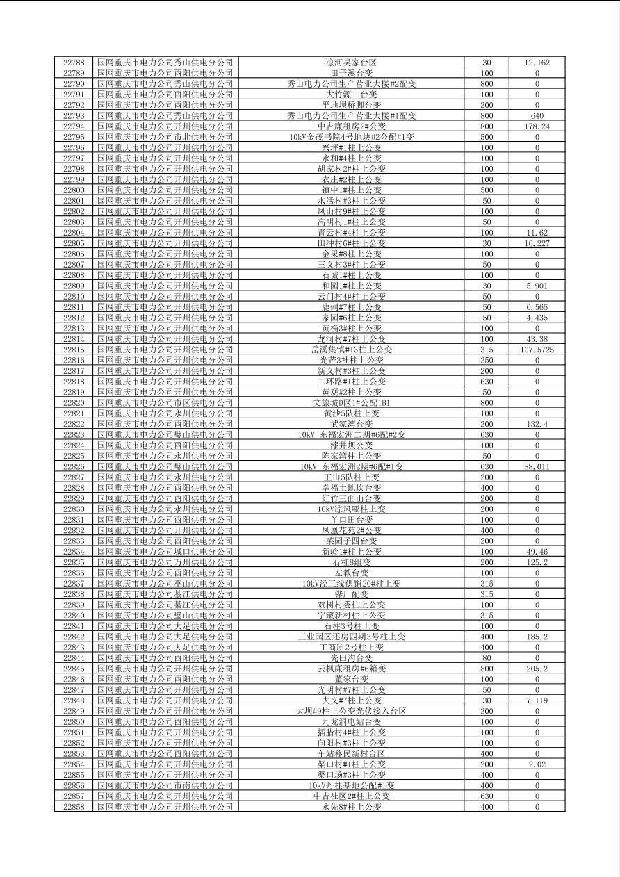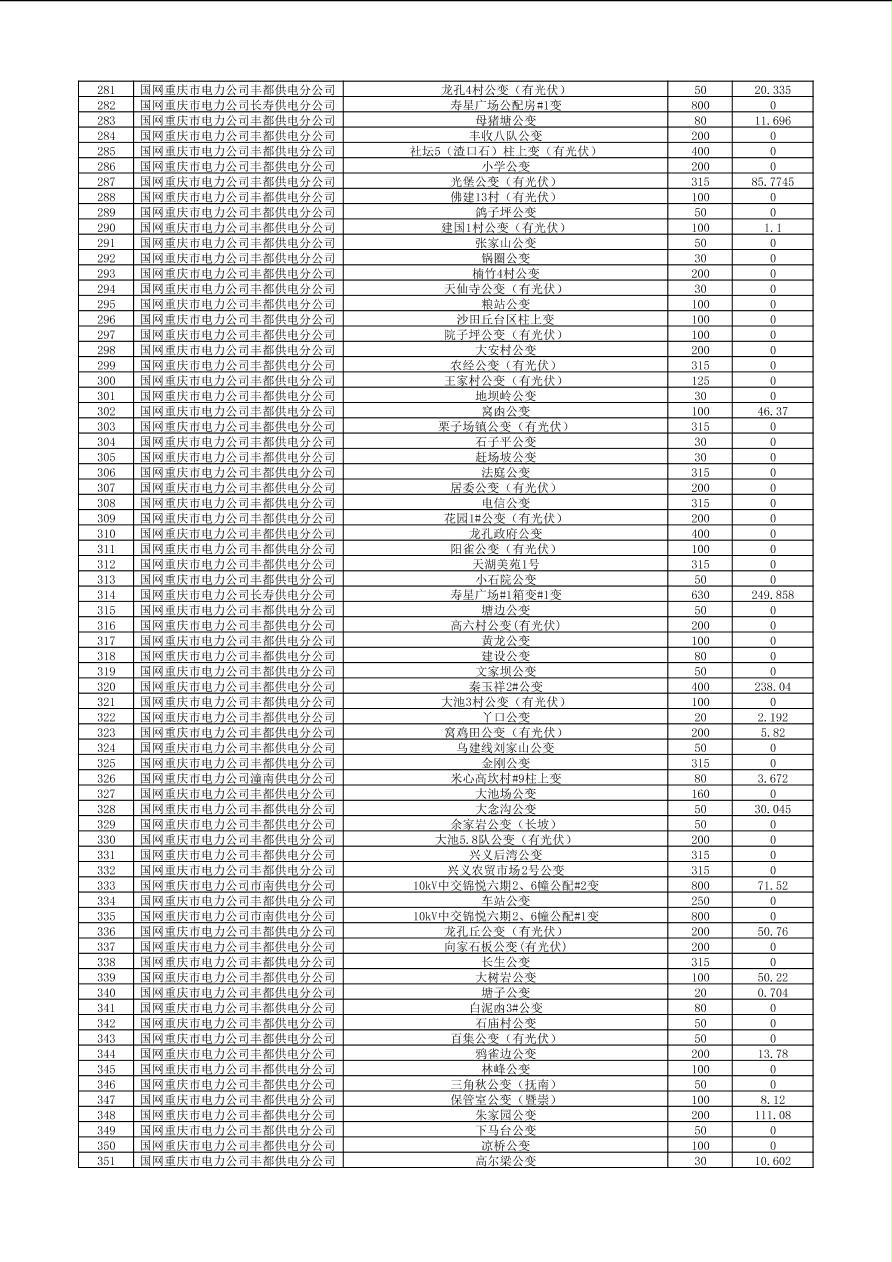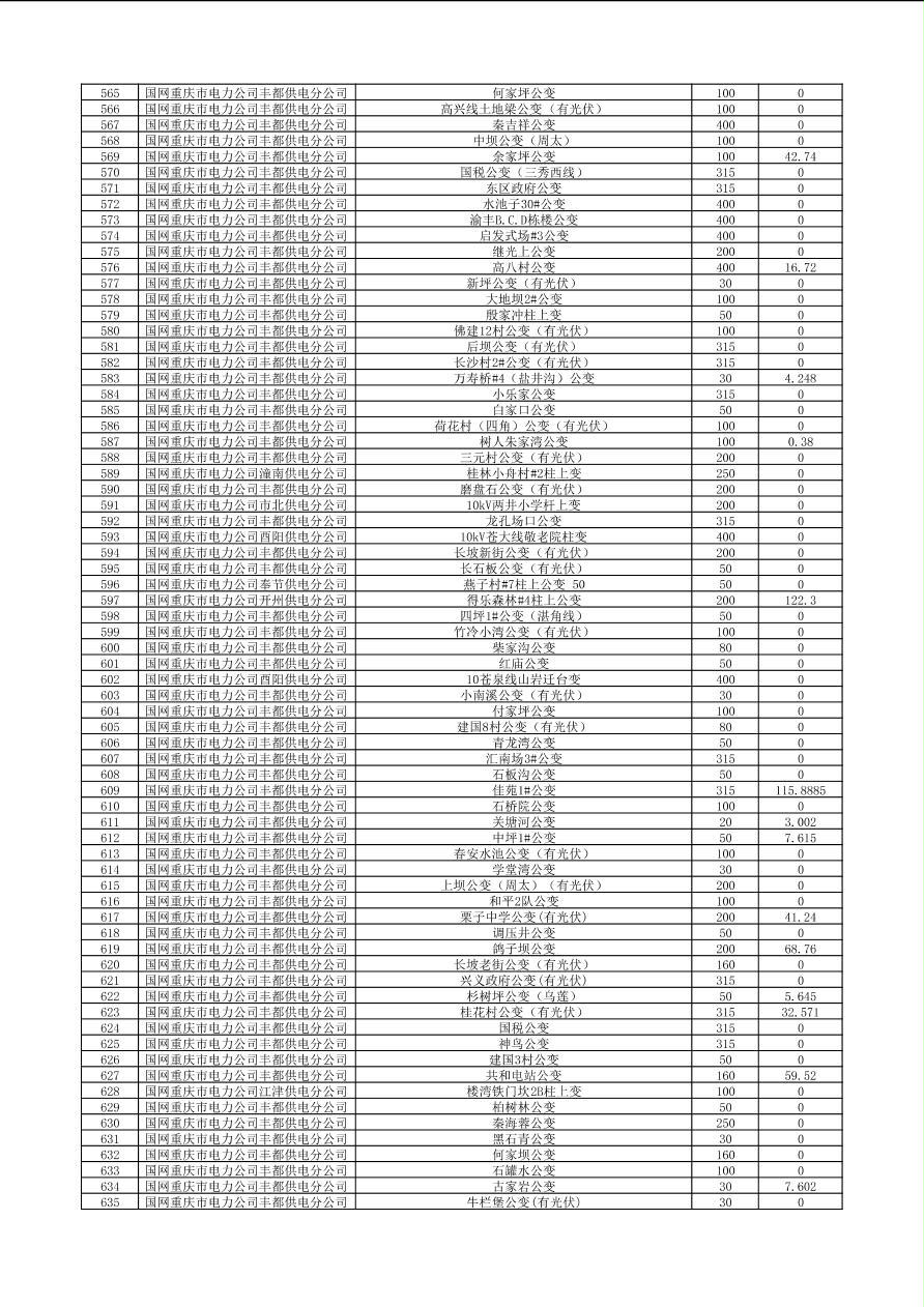 可开放容量及有关信息