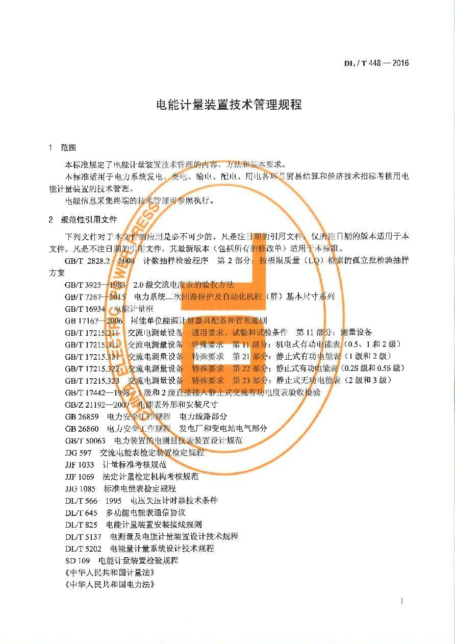 DL_T_448-2016《电能计量装置技术管理规程》