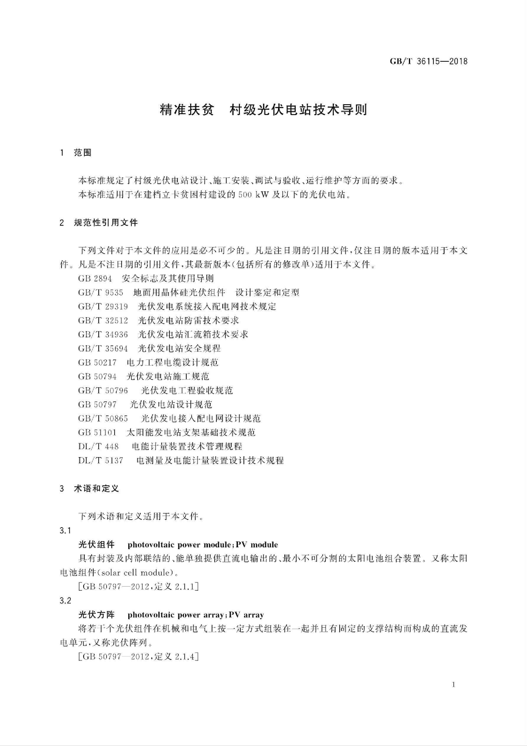 GBT361152018精准扶贫村级光伏电站技术导则