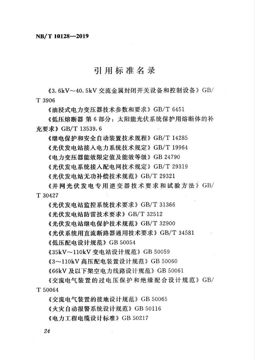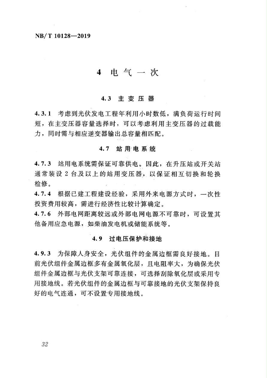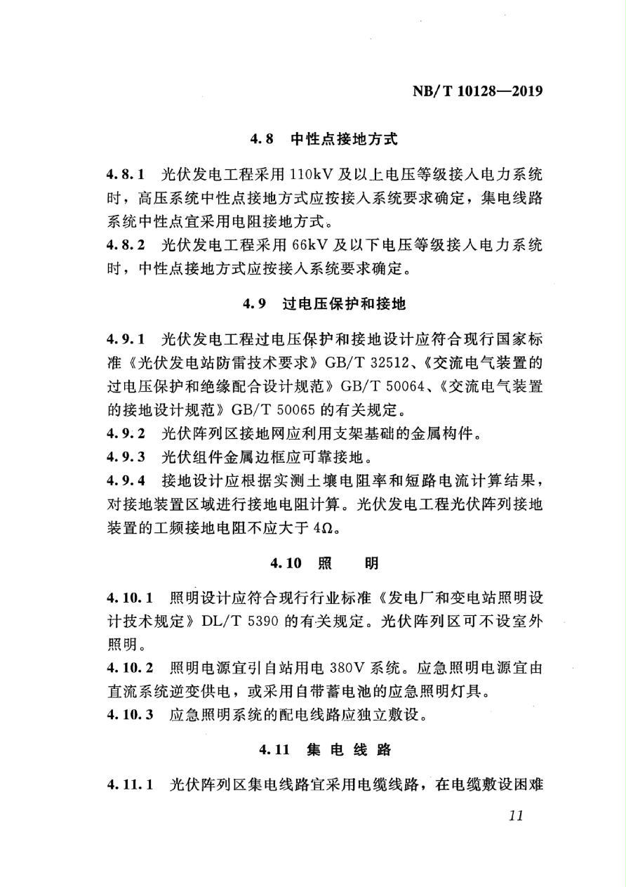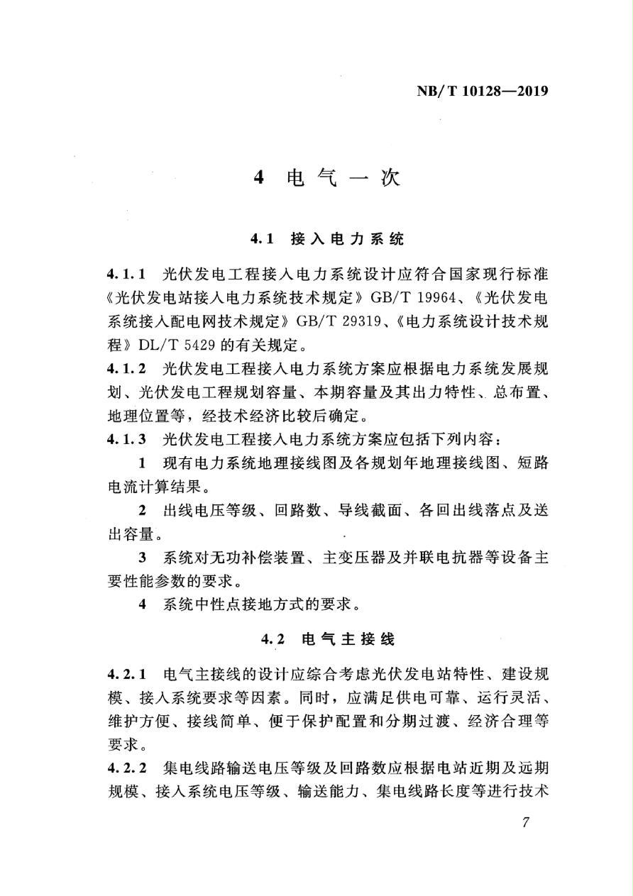 NB/T10128-2019《光伏发电工程电气设计规范》