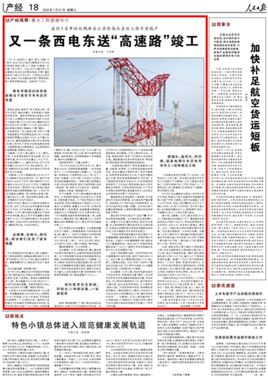 7月1日,途经四川、重庆、湖北、安徽、江苏5省市,全长2080公里的白鹤滩至江苏±800千伏特高压直流工程(以下简称“白鹤滩—江苏工程”)竣工投产。从此,位于川滇交界之处的白鹤滩水电站发出的绿色电能,仅需7毫秒便能到达千里之外的江苏。从西部山区到东部沿海,全线3万余名建设者克服了哪些挑战,工程又能带来哪些效益?记者进行了采访。