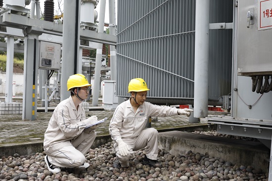 国网綦江供电公司员工在天桥110千伏变电站进行五一保供特巡(鄢江奎 摄)