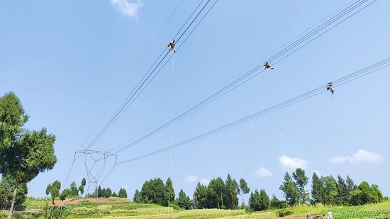 国网忠县供电公司员工在长万线增容改造工程(忠县段)现场施工(罗建 摄)