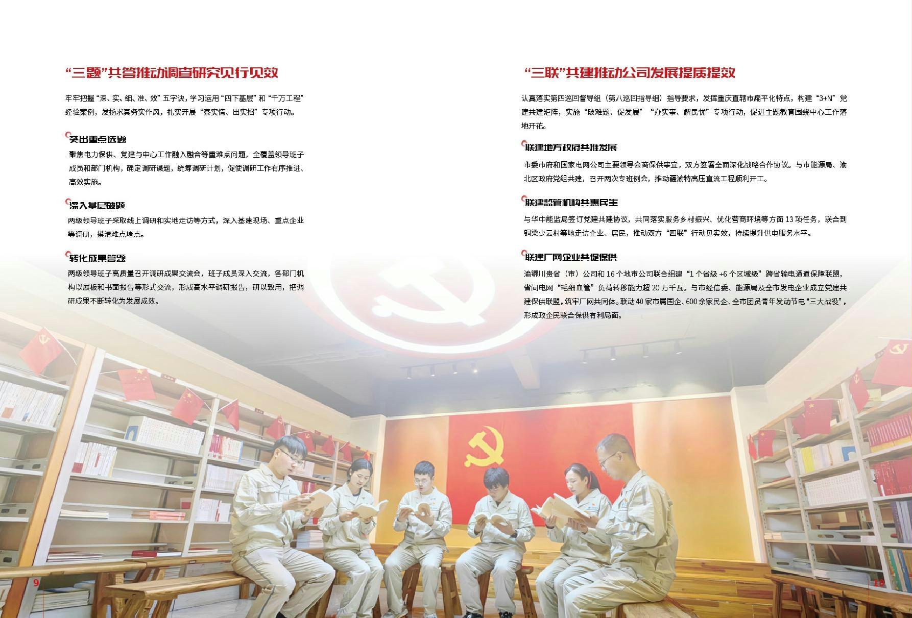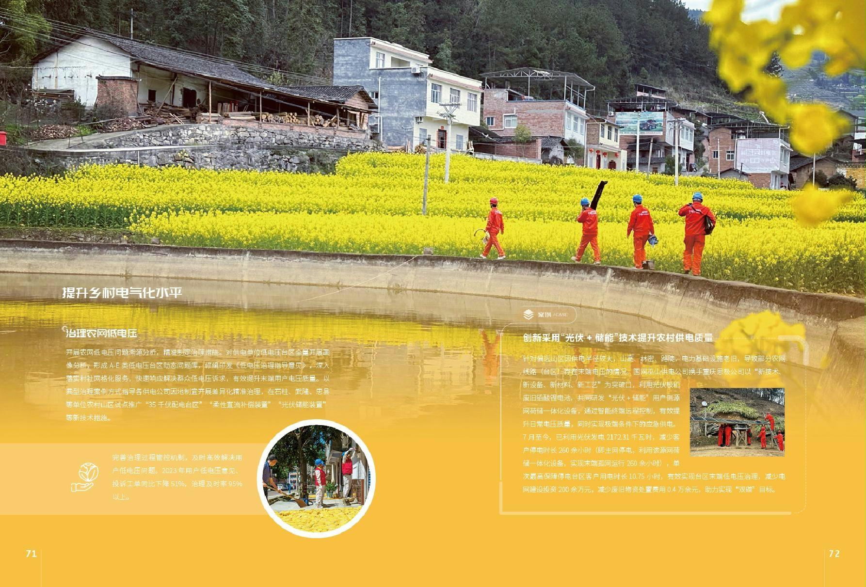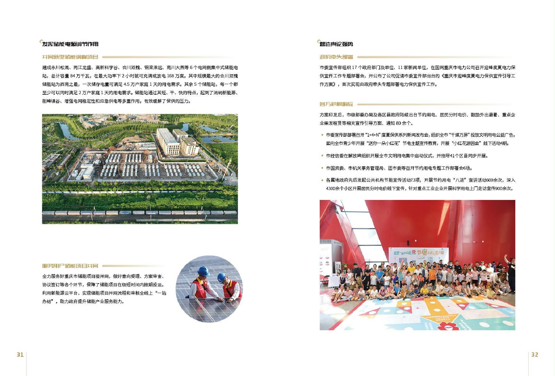 编者按:公司策划编制了《国网重庆市电力公司2023履责实践成果汇编》(以下简称《成果汇编》)。《成果汇编》包含“凝心铸魂 筑牢根本” ——高质量开展主题教育、“十年奋斗 一朝圆梦”——走进特高压时代、“自助者天助”——电力保供成效显著等三个履责专题和构建电网发展新格局,助力重庆高质量发展等5项履责主要议题,梳理提炼公司系统履责案例21个,收集各方评价20余条,发布31家供电单位2024年履责承诺和2023年履责践诺完成情况,设计二维码链接7处,链接央视、重庆卫视等中央及市级主流媒体报道、公司视频号热门短视频等15个,以线上、线下结合的方式,向社会公众展示公司助力社会主义现代化新重庆建设作出的价值贡献,不断提升运营透明度,进一步赢得各界对公司工作的理解、支持和认同,为公司建设“新渝电”营造和谐的舆论氛围。