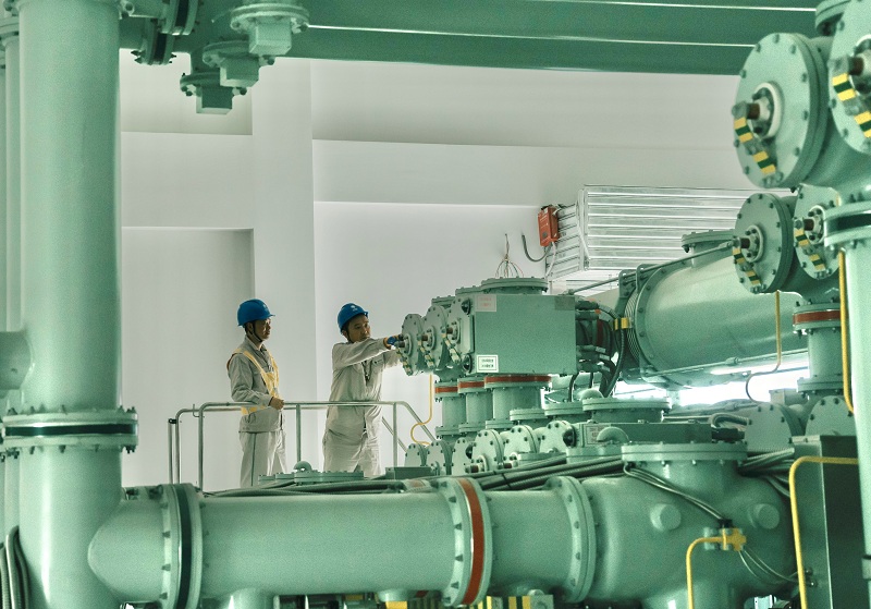 国网重庆市区供电公司员工在220千伏大溪沟变电站巡视检查。(秦雪 摄)