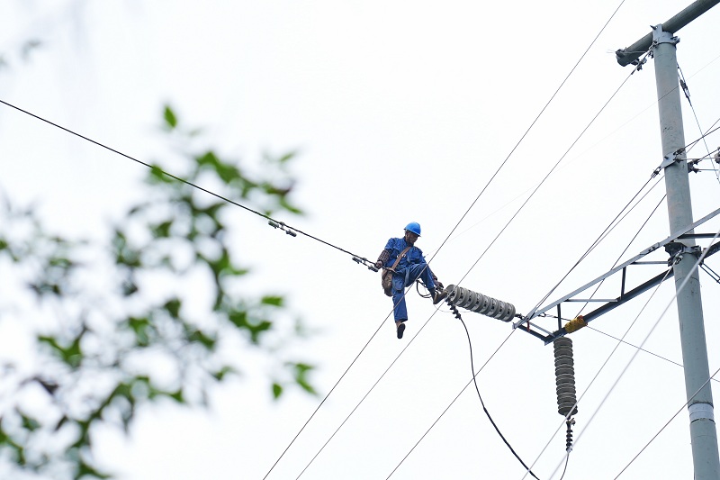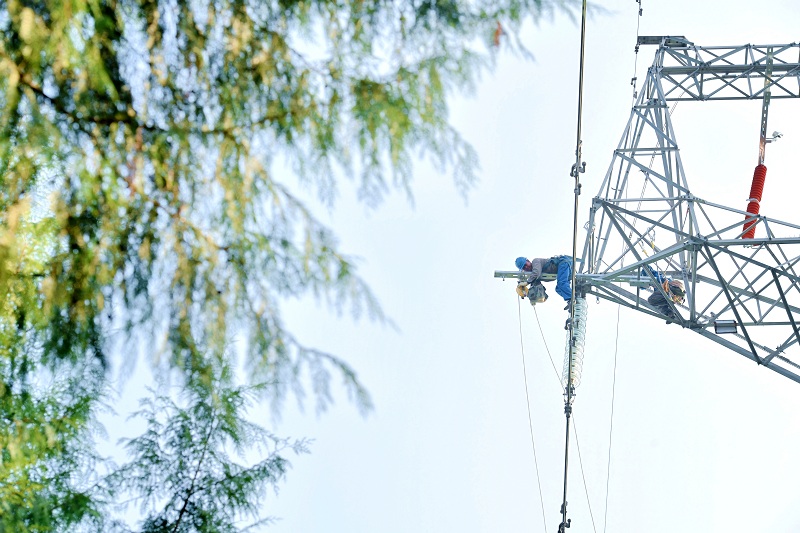 国网长寿供电公司运维人员在220千伏长八西线开展消缺工作,严防输电线路受冬季低温影响。(况敏 摄)
